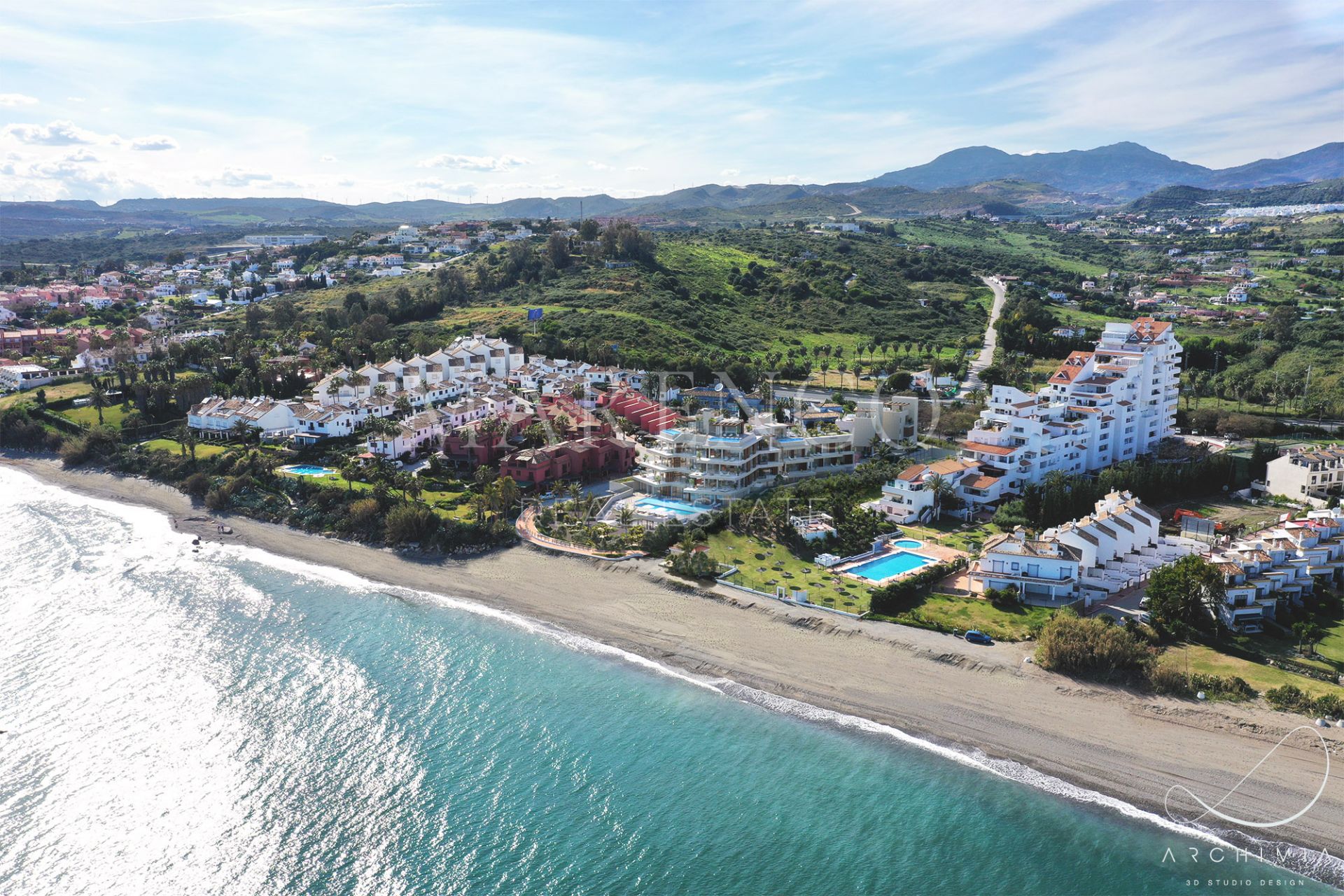 Este proyecto único se encuentra en una de las zonas más deseadas de Estepona, en la primera línea de playa, un lugar exclusivo y especial. El centro de la ciudad y el puerto están a poca distancia a pie. Además, tiene una excelente conexión con Puerto Banús de Marbella y Sotogrande. Diferentes campos de golf se encuentran a pocos minutos en coche, como Finca Cortesin, Valderrama, Los Flamingos, etc.