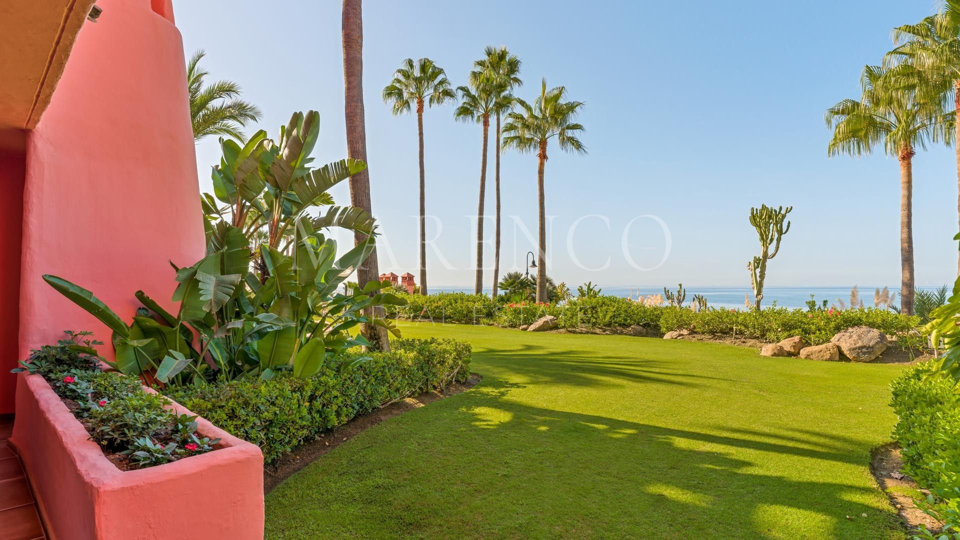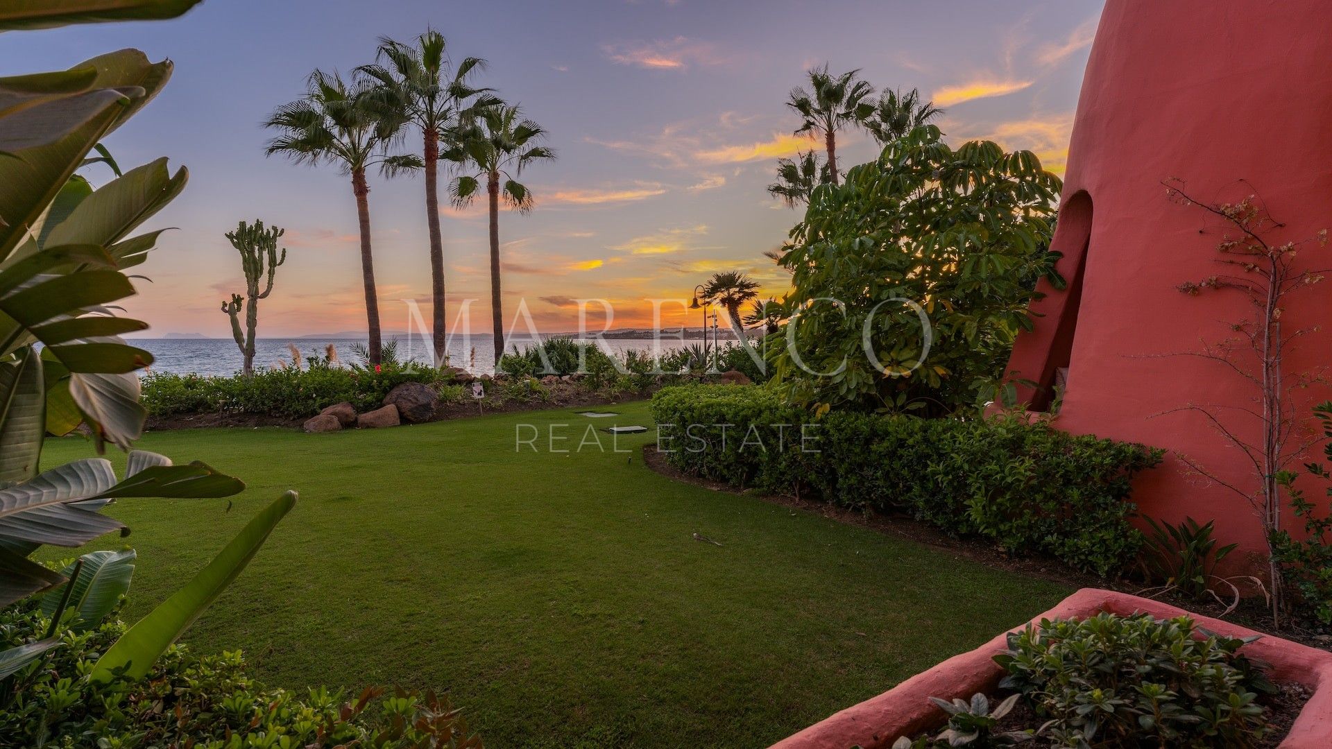 Cabo 402, exquisito apartamento en planta baja, elegantemente renovado, que ofrece tres dormitorios y dos baños. Estratégicamente ubicado en el cautivador Cabo Bermejo, este hogar representa un oasis de prestigio frente al mar en la codiciada área de la Nueva Milla de Oro, entre San Pedro y Estepona. Este lugar es un santuario sereno que le invita a experimentar la verdadera belleza del entorno costero.
