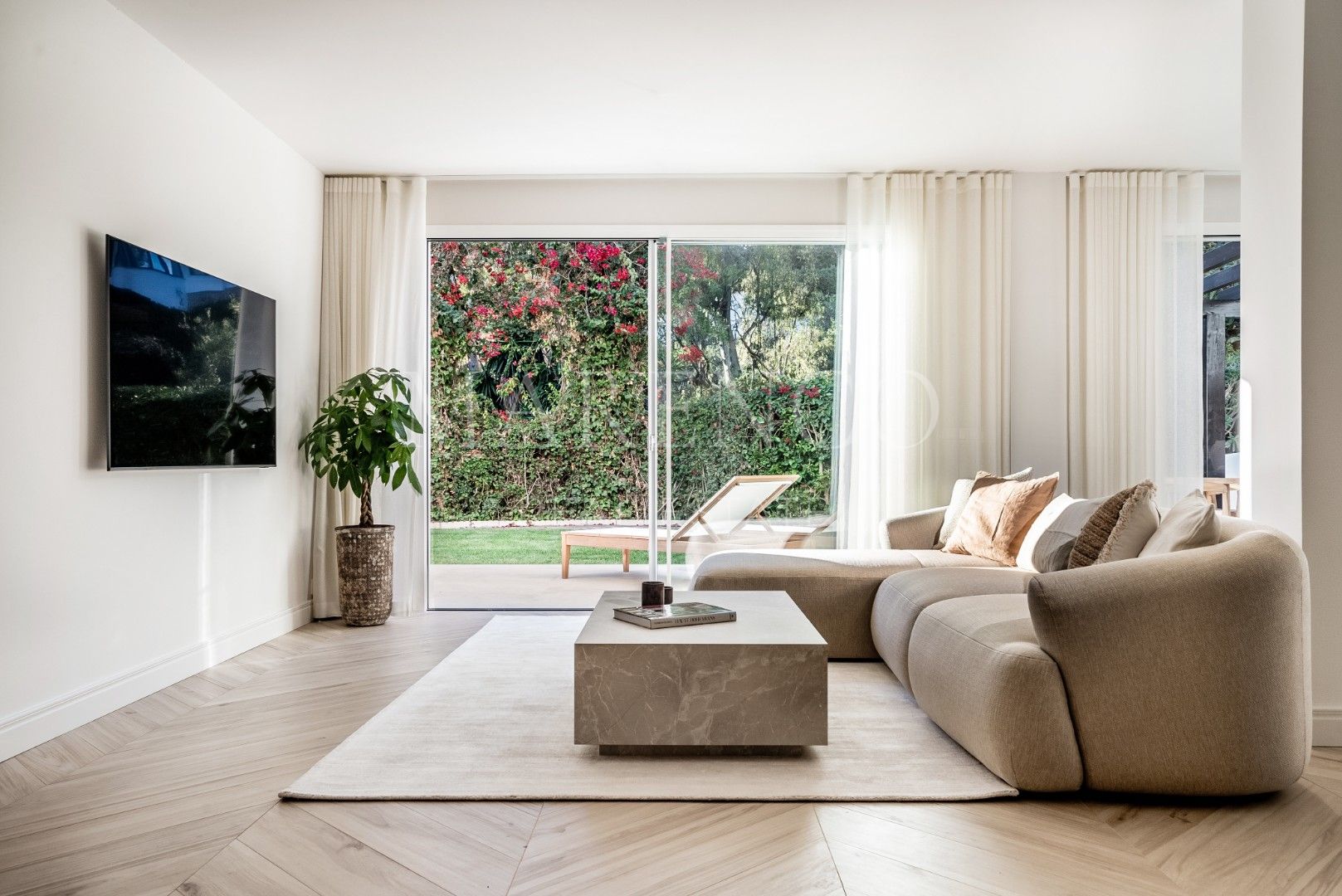 Ubicado en la prestigiosa Milla de Oro de Marbella, este apartamento en planta baja es completamente único, con una superficie total de 470 metros cuadrados, incluyendo un jardín de 241 metros cuadrados, todo en una sola planta. Al entrar, te reciben amplias zonas sociales que incluyen un salón, una cocina y un comedor. Los grandes ventanales conectan perfectamente el interior con tu propio jardín privado, creando una sensación de continuidad entre el interior y el exterior en todo el apartamento.
