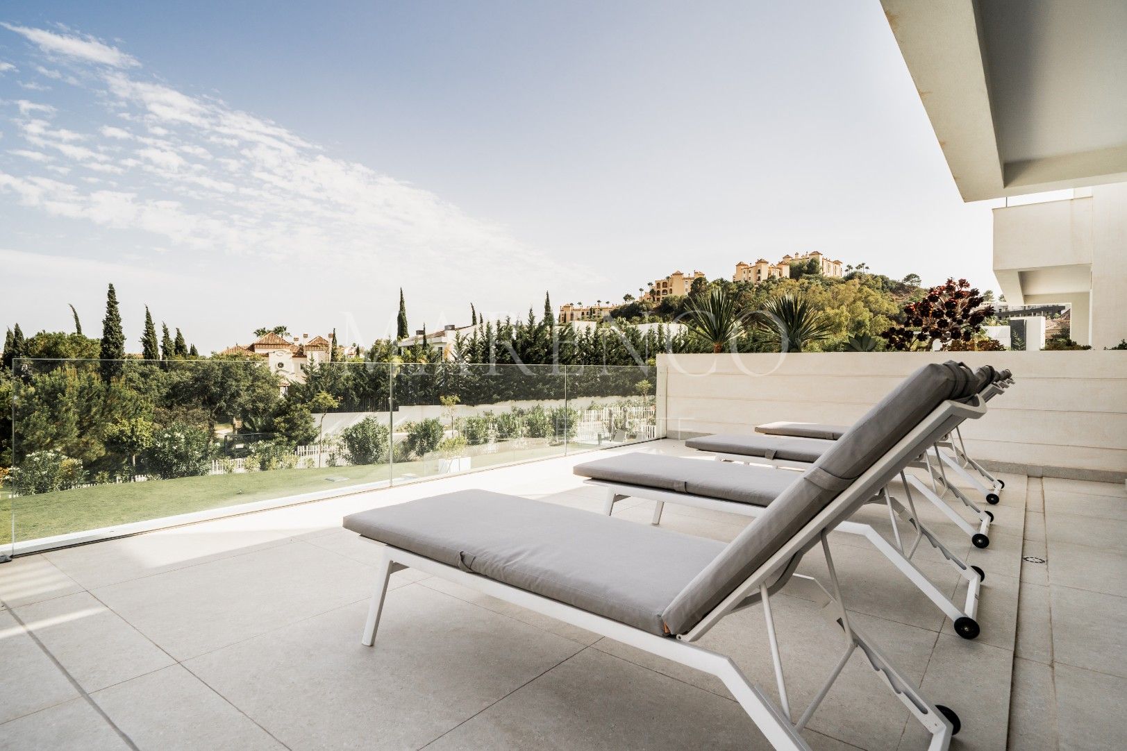Presentamos Aqualina 4, un moderno apartamento que ofrece impresionantes vistas panorámicas al mar y a la montaña, lo que le brinda una experiencia visual inigualable. Cercana a una variedad de comodidades y a un campo de golf, lo que permite a los amantes de este deporte satisfacer su pasión siempre que lo deseen.