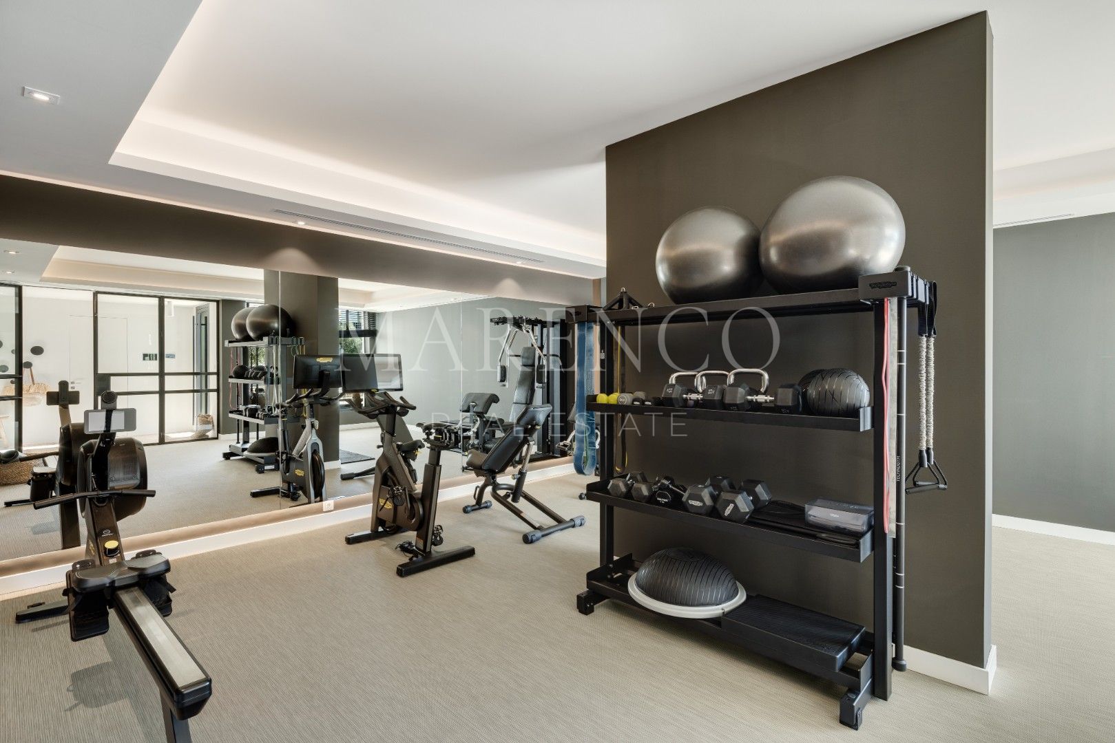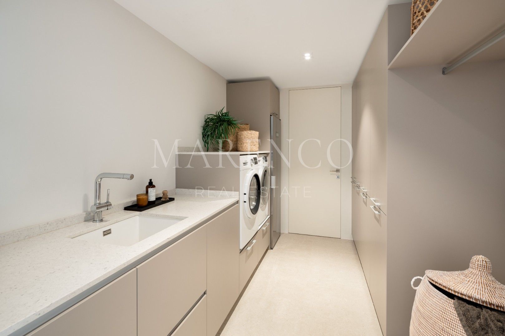 El sótano ha sido cuidadosamente planificado para ofrecer tanto ocio como funcionalidad, con un gimnasio, una acogedora sala de televisión, dormitorios adicionales para invitados y un garaje. La villa también cuenta con un ascensor que conecta todas las plantas, subrayando su accesibilidad y conveniencia.