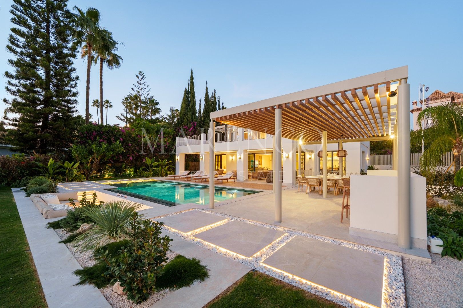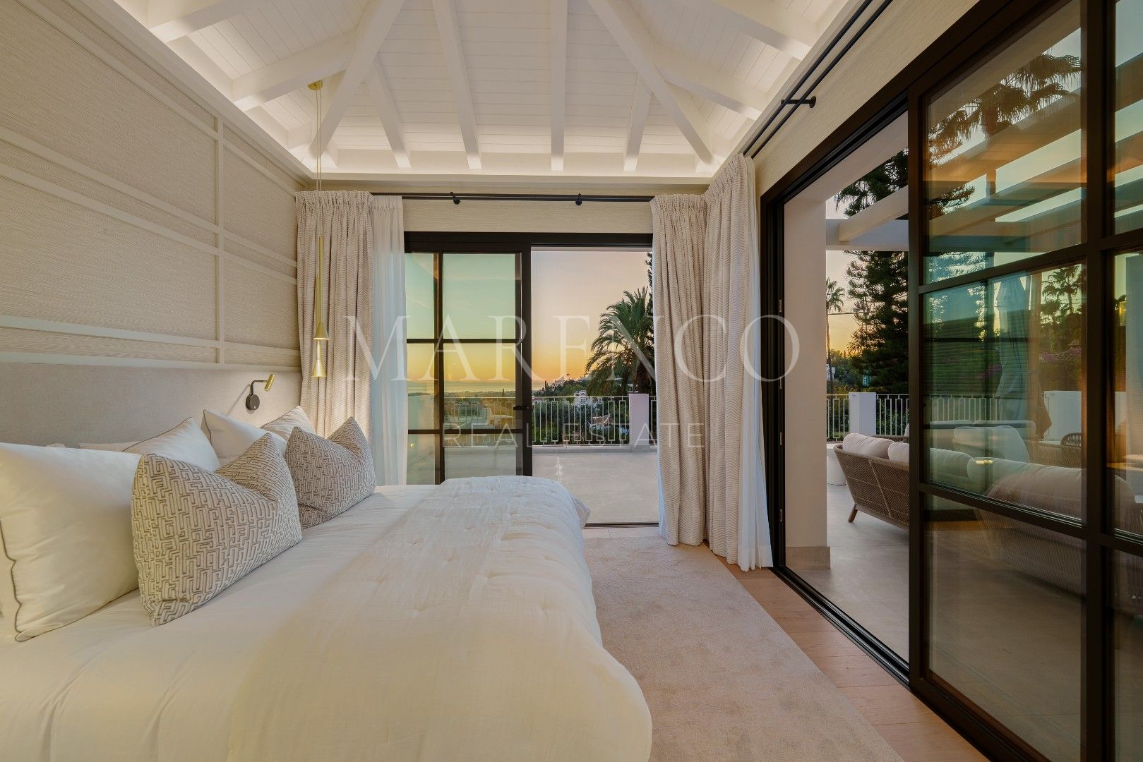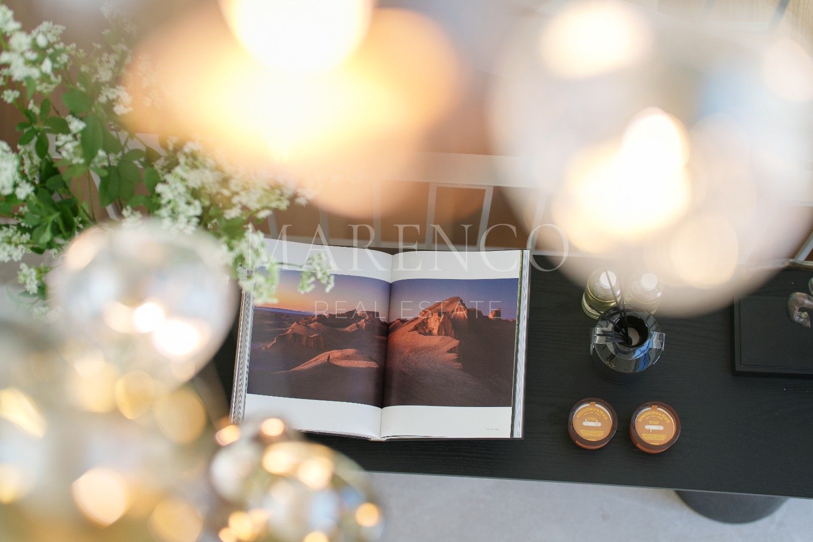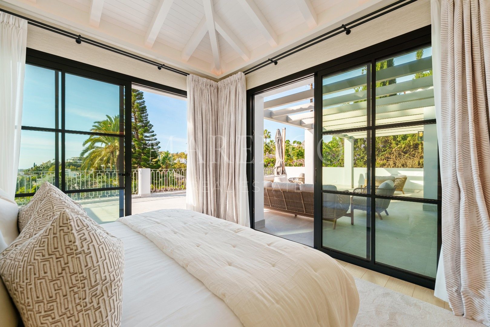 Con 483 m² construidos, distribuidos en estancias amplias y exquisitamente diseñadas, la propiedad ofrece 5 dormitorios y 5 baños, además de dos aseos para invitados. La planta principal se organiza en un gran espacio abierto con salón, comedor y cocina de diseño, donde los ventanales de suelo a techo permiten que la luz natural forme parte de la decoración. La cocina, uno de los puntos más destacados de la villa, presenta una isla central, mobiliario a medida y una conexión fluida con las terrazas exteriores y la zona de piscina, creando un ambiente perfecto tanto para el día a día como para recibir invitados.