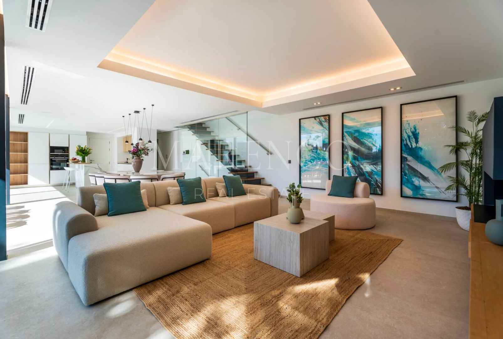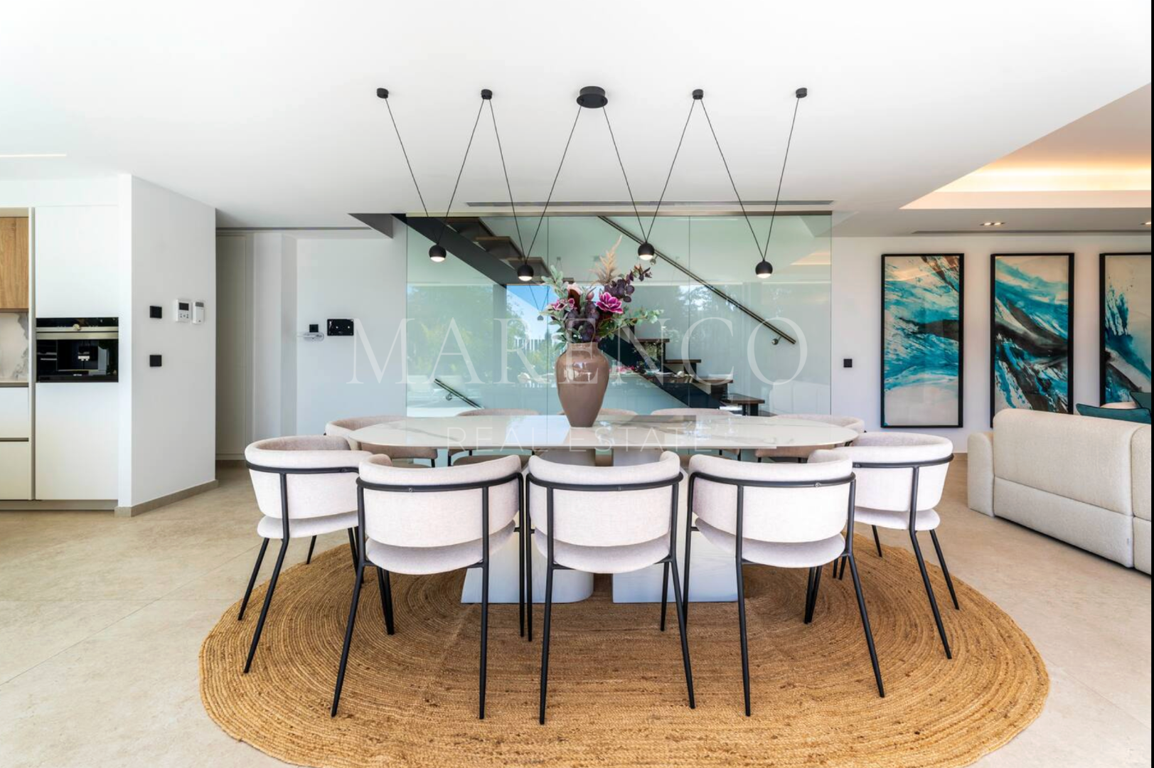 Descubre esta impresionante villa de lujo en Reserva Marbella, una propiedad exclusiva que fusiona a la perfección la elegancia de un diseño contemporáneo con la comodidad de un hogar funcional. Ubicada en una tranquila zona residencial, esta villa de tres niveles te invita a imaginarte viviendo en un espacio donde cada rincón ha sido pensado para ofrecer la máxima comodidad y una experiencia de vida inigualable. Desde la tranquilidad de su jardín privado hasta las amplias vistas a la naturaleza circundante, esta villa te proporciona un estilo de vida sereno y exclusivo.
