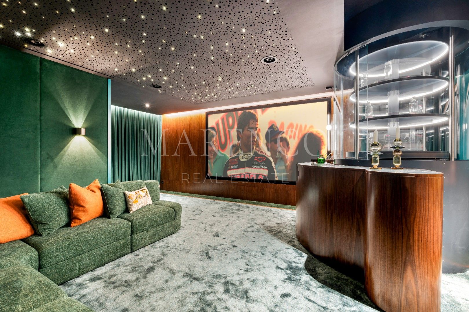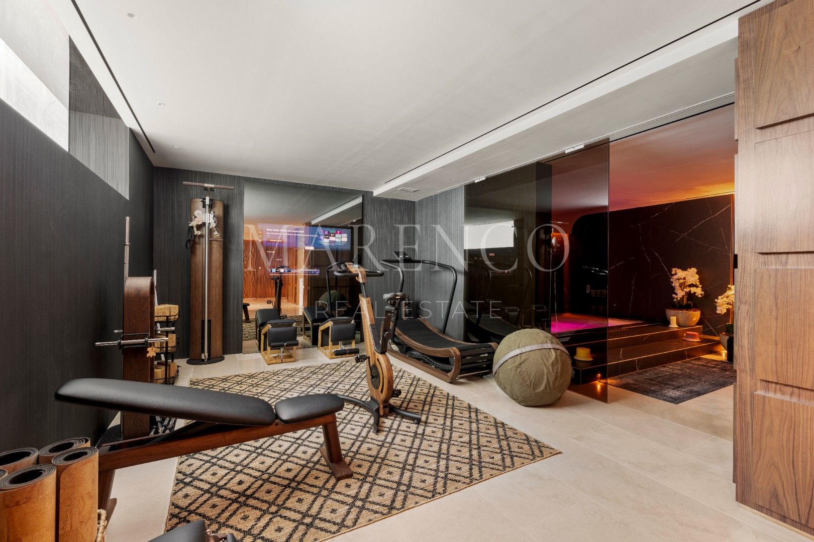 Entre sus características más destacadas se incluyen una piscina de agua salada rodeada de jardines paisajísticos, un spa con sauna y jacuzzi, un gimnasio totalmente equipado, y un cine privado. Además, la villa cuenta con un sistema domótico que controla la iluminación, la temperatura y las cortinas, ofreciendo comodidad y eficiencia. Con tecnología de última generación, también dispone de paneles solares y ventanas de doble acristalamiento para un hogar energéticamente eficiente.