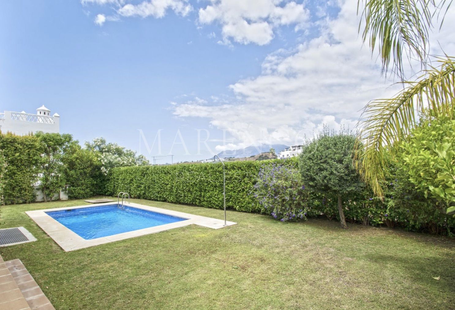 El jardín es un verdadero paraíso, con una piscina privada que te permitirá disfrutar del maravilloso clima de la Costa del Sol. Aquí, podrás relajarte y crear recuerdos inolvidables con amigos y familiares.