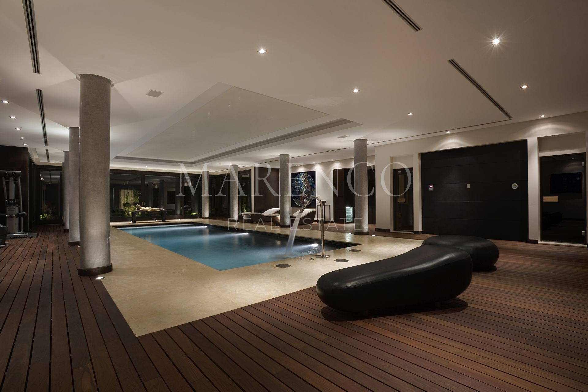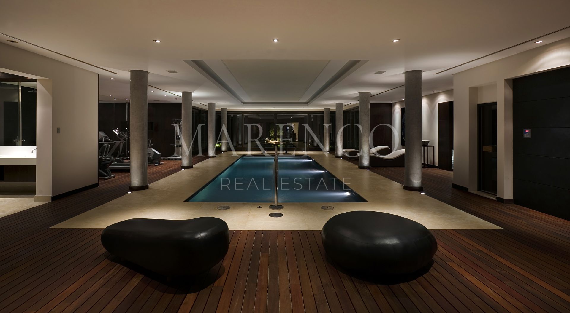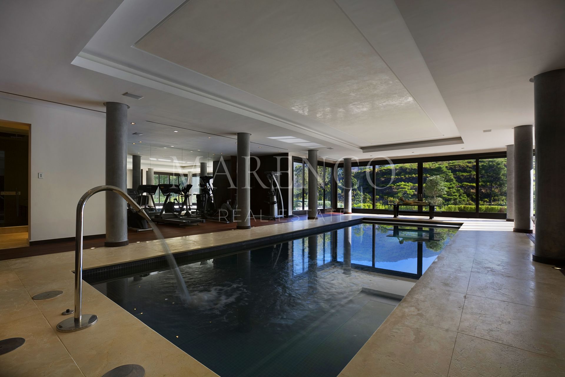 Disfrute en la terraza y los balcones privados, absorbiendo el sol y la tranquilidad de la naturaleza. Las terrazas abiertas y cubiertas son ideales para cenar, reunirse tranquilamente y divertirse durante todo el año. Ejercítate, relájate y descansa en un fabuloso SPA y Fitness Center con un excelente gimnasio, piscina interior climatizada, baño turco, sauna y zonas de relax. El nivel inferior también alberga una bodega, sala de juegos con bar, cine en casa, baño, lavadero, alojamiento para el personal y sala de máquinas de última generación. Un apartamento de invitados separado se suma a su exclusividad.