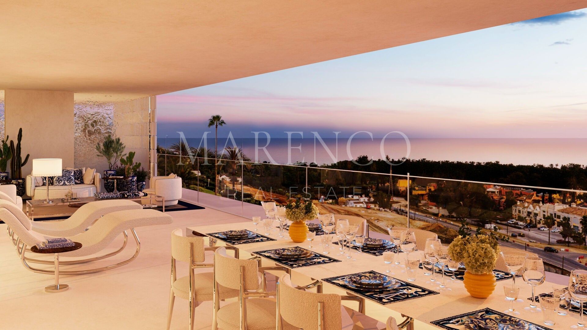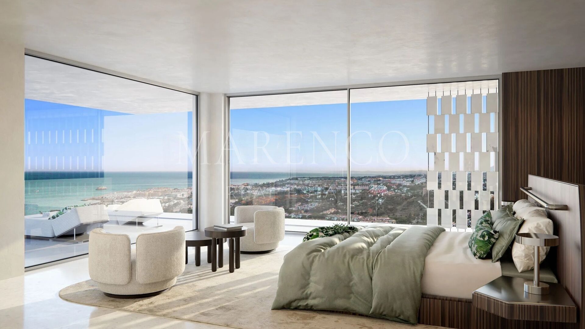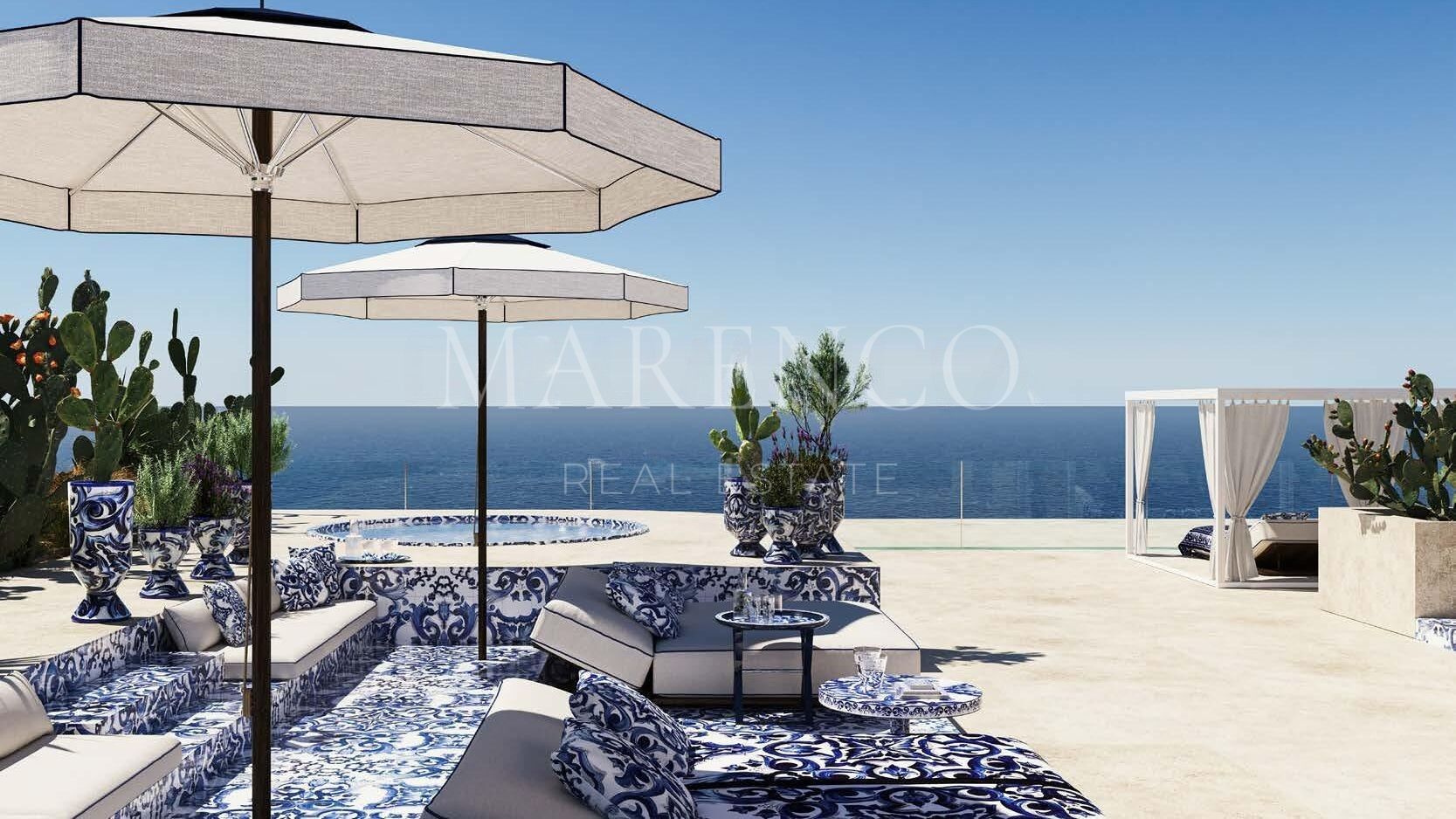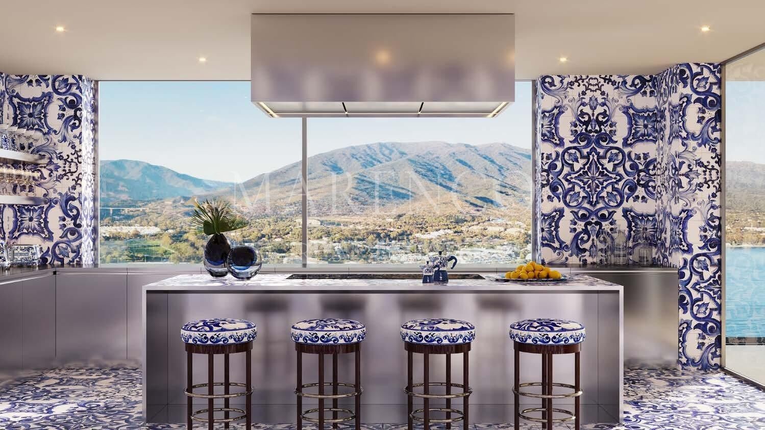 Con una distribución amplia y luminosa, el ático cuenta con impresionantes ventanales de suelo a techo que inundan cada espacio de luz natural y se abren a terrazas privadas con vistas panorámicas al mar Mediterráneo y la costa de Marbella. Los interiores, amueblados con piezas exclusivas de Dolce & Gabbana Casa, destacan por sus acabados de la más alta calidad y detalles artesanales únicos.