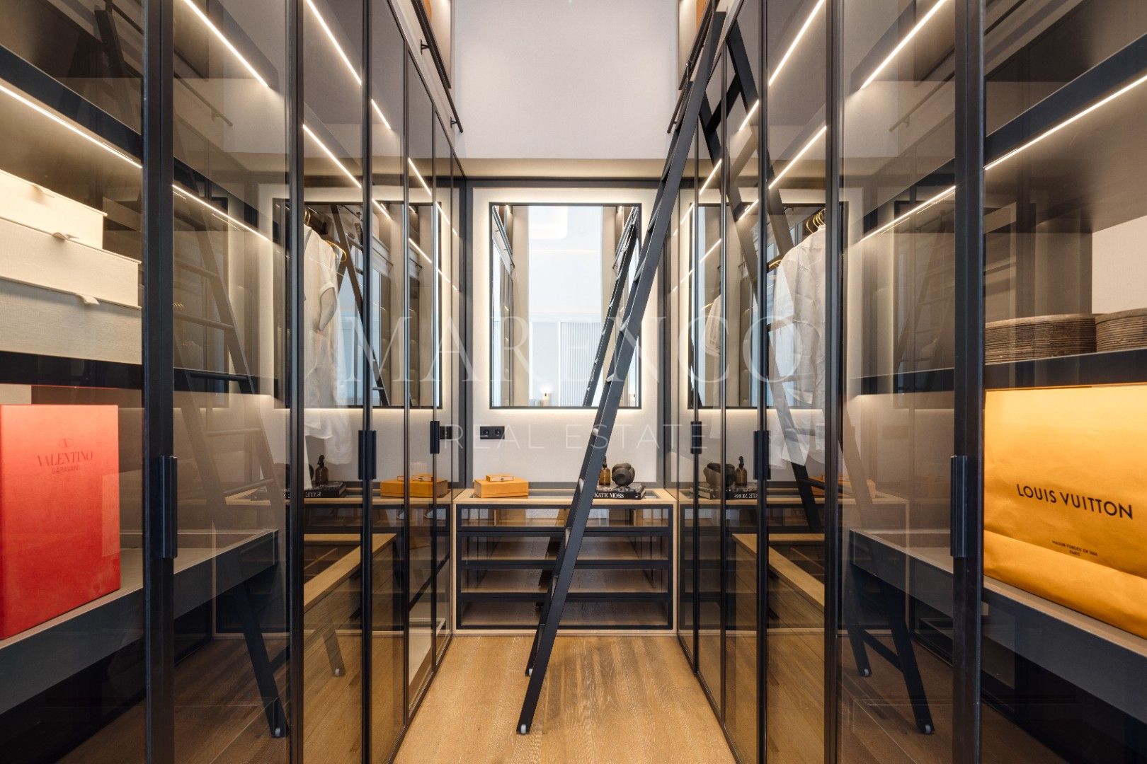 La planta inferior de la villa está concebida para el ocio y el entretenimiento, e incluye un elegante bar con zona de estar, una bodega acristalada a medida para exhibir colecciones de vinos y una sala de cine personalizada que brinda una experiencia inmersiva. Para los amantes del motor, el garaje privado incluye una pared de vidrio única que permite mostrar los vehículos como parte de la estética del hogar.