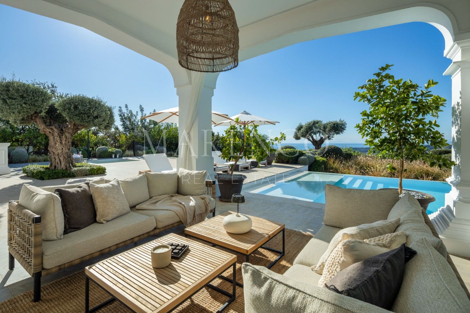 Vivir en esta impresionante villa de lujo en Marbella Club Golf Resort, Benahavís es despertar cada día rodeado de naturaleza, privacidad y vistas panorámicas que se extienden hasta el Mediterráneo, Gibraltar y el norte de África. Situada en una de las comunidades cerradas más exclusivas de la Costa del Sol, esta residencia combina la elegancia de la arquitectura andaluza con un diseño contemporáneo pensado para disfrutar de un estilo de vida sofisticado y sereno.