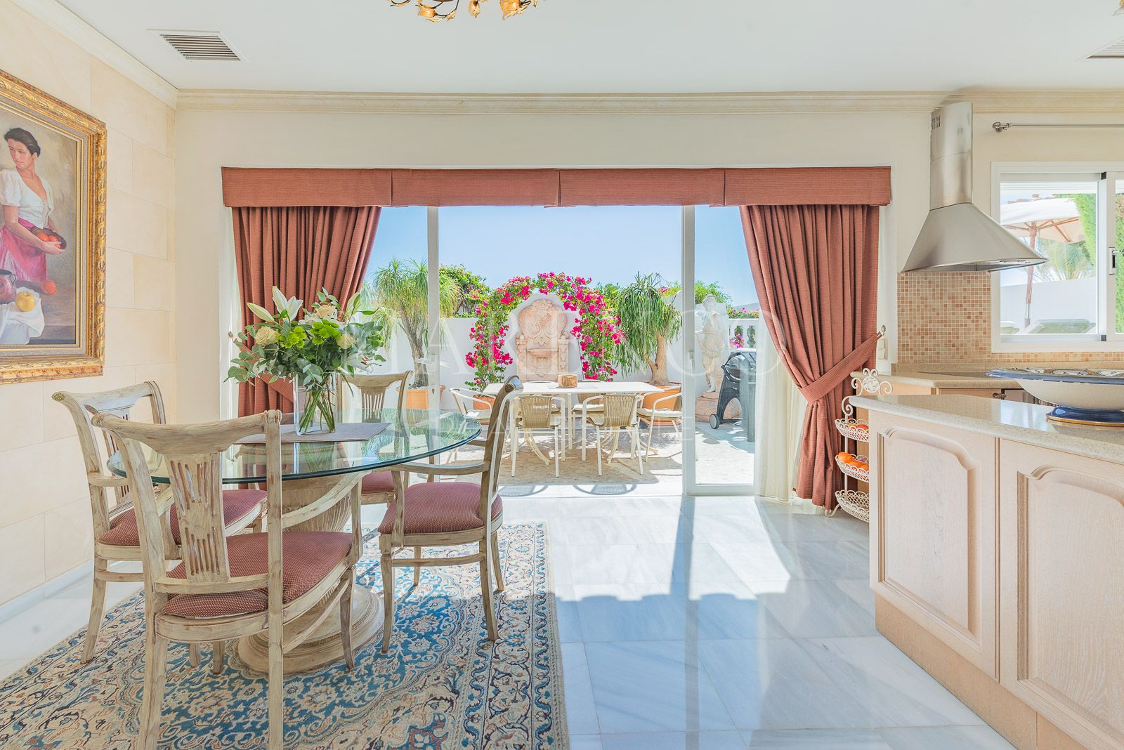 Esta maravillosa casa adosada tiene una perfecta ubicación en la Milla de Oro de Marbella, muy bien comunicada con Puerto Banús, Puente Romano y el casco antiguo. Con un fácil acceso a la playa y con la ventaja de contar de diferentes servicios de ocio.