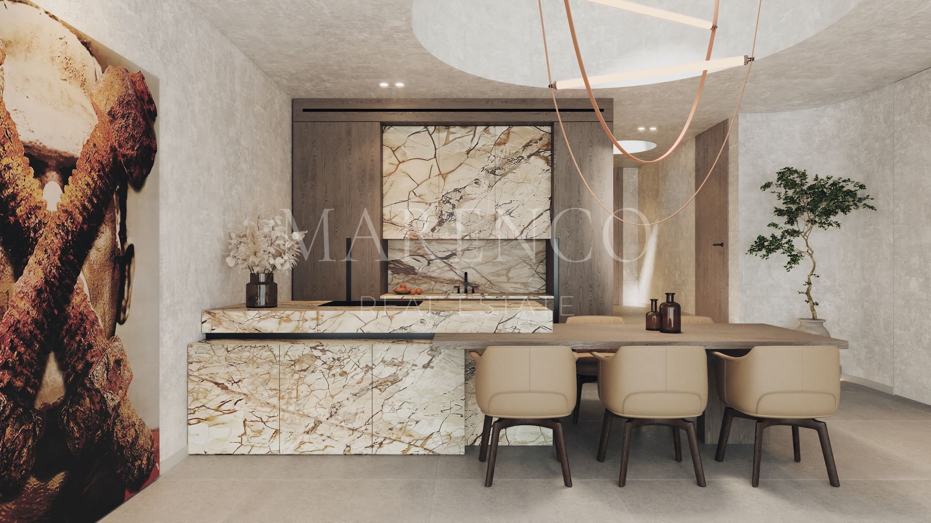 amplia y semi abierta cocina que nos da acceso directo a la espectacular terraza donde hay dos ambientes y desde los cuales tenemos unas fantásticas vistas al mediterráneo, a África y Gibraltar.