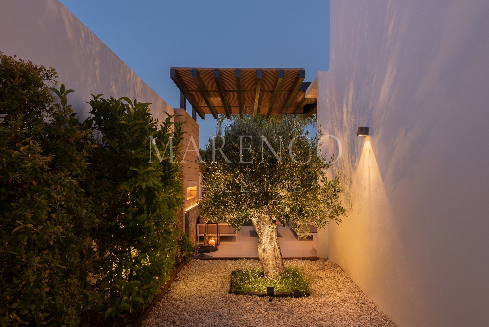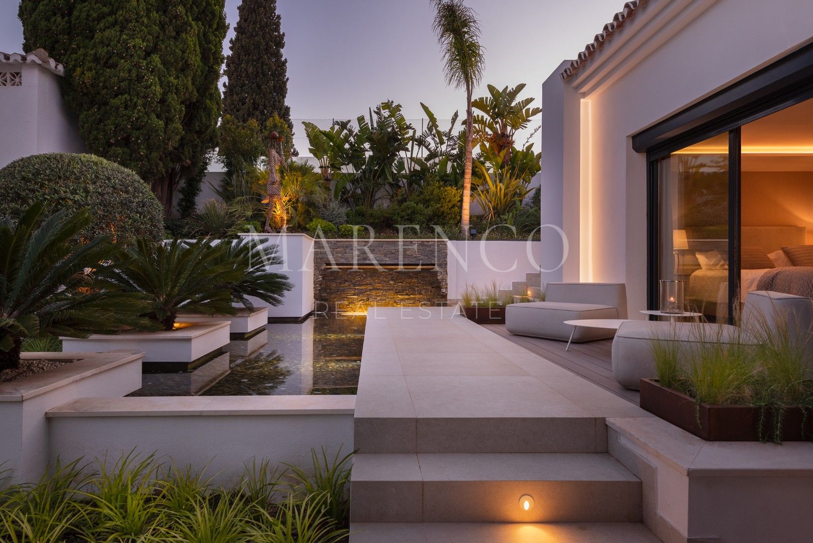 En el jardín recientemente renovado, hay una piscina climatizada revestida con mosaico de perla blanca y una zona de terraza para disfrutar de comidas al aire libre en el envidiable clima mediterráneo. La nueva zona Chill Out está rodeado de plantas andaluzas, olivos y palmeras.