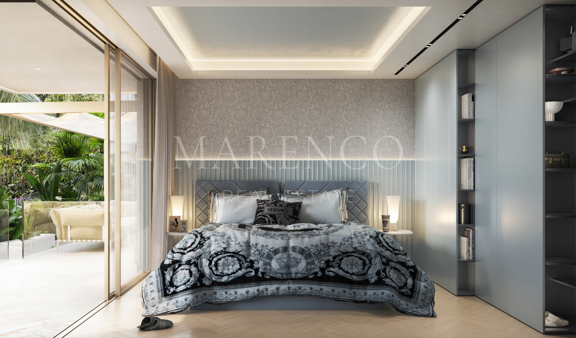 Descubra esta exclusiva villa de lujo en Nueva Andalucía, Marbella, una residencia única donde el diseño icónico de Versace Home se fusiona con la elegancia mediterránea. Ubicada en una de las zonas más prestigiosas de la Costa del Sol, a pocos minutos de Puerto Banús y del reconocido Golf Valley, esta propiedad redefine el concepto de lujo contemporáneo. Imagine despertar con vistas abiertas al Mediterráneo y a la montaña, disfrutar del sol durante todo el año desde su solárium privado y vivir en un entorno donde cada detalle ha sido cuidadosamente concebido.