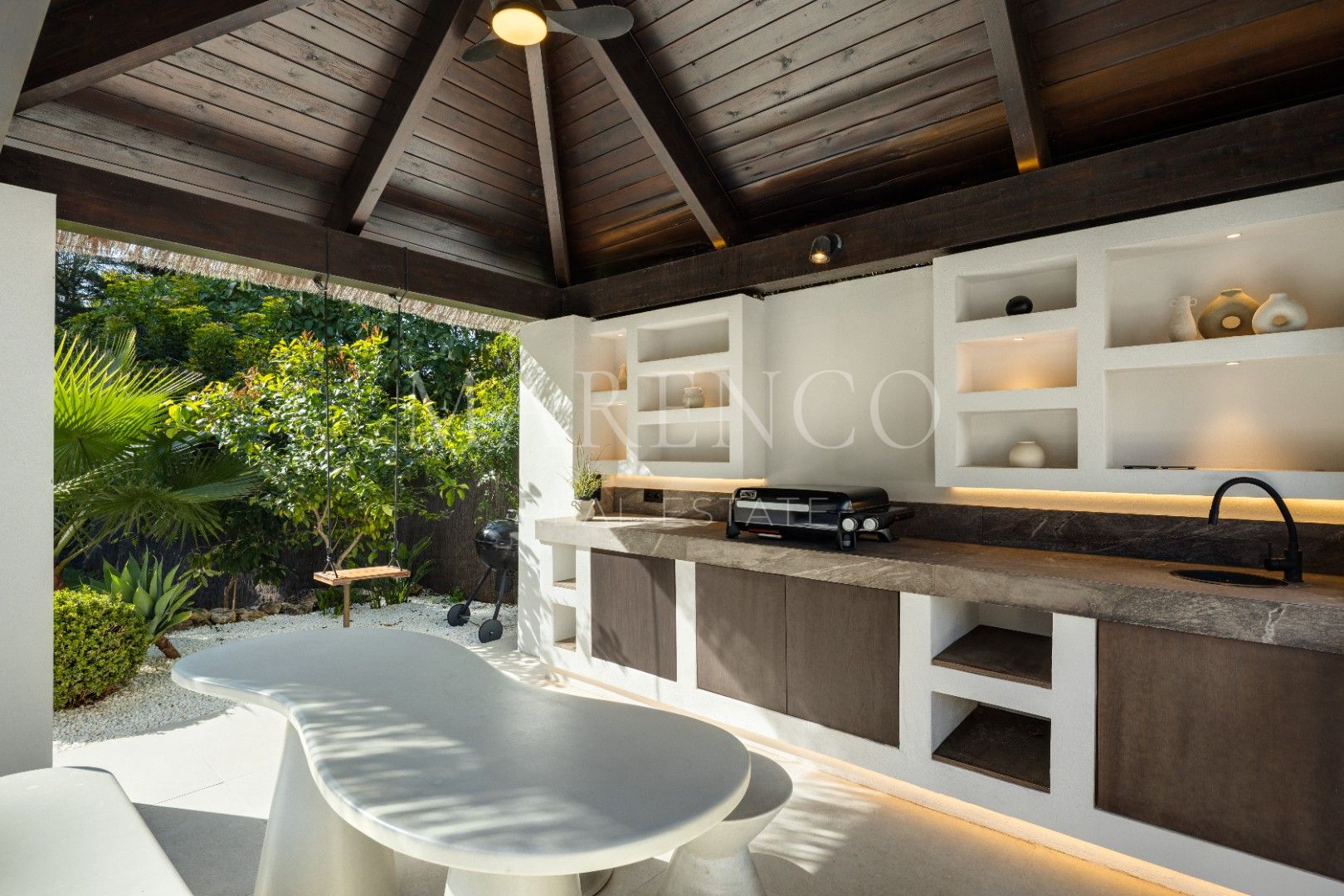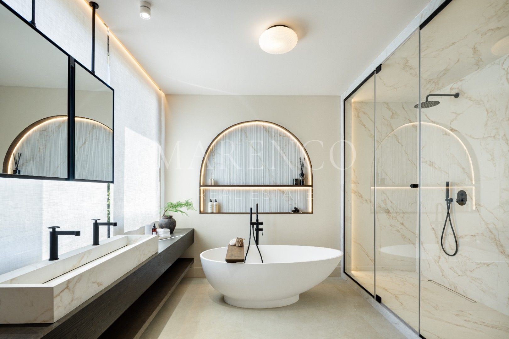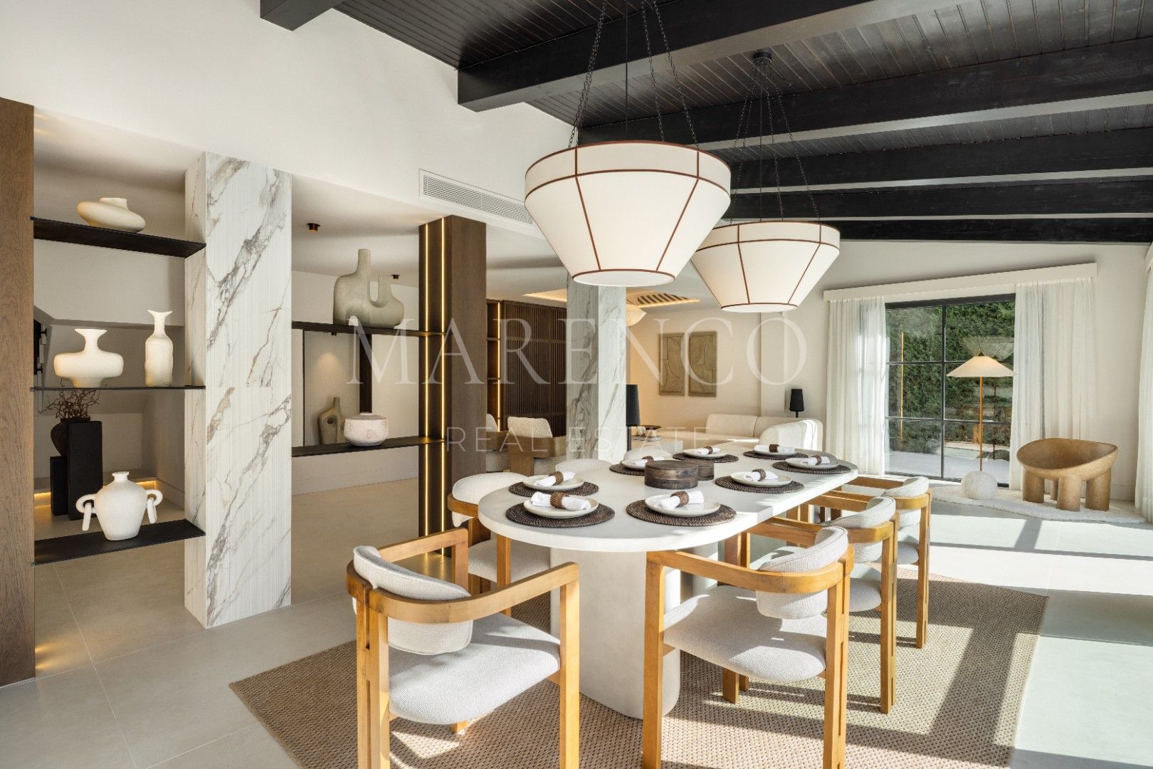 Descubre esta impresionante villa de lujo en Nueva Andalucía, Marbella, una propiedad exclusiva donde el diseño contemporáneo se fusiona con la serenidad del estilo Japandi y la elegancia escandinava. Rodeada de vegetación y con un alto nivel de privacidad, esta residencia invita a imaginar un estilo de vida relajado, donde la luz natural fluye libremente a través de amplios ventanales y conecta cada espacio interior con el exterior. Un verdadero refugio de calma en una de las zonas más codiciadas de la Costa del Sol.