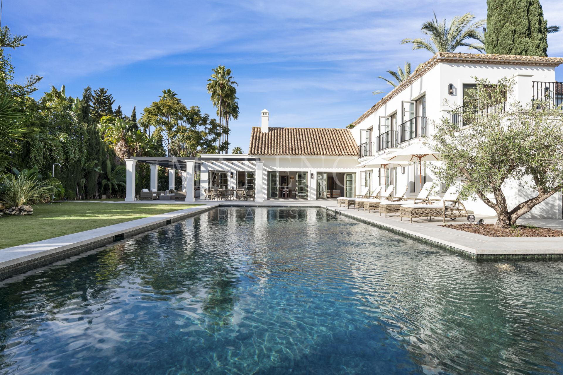Ubicada en una de las zonas más exclusivas de la Costa del Sol, esta impresionante villa de lujo en Nueva Andalucía, Marbella redefine el concepto de elegancia mediterránea con un enfoque contemporáneo y sofisticado. Rodeada de jardines cuidados y con una arquitectura inspirada en el estilo provenzal francés, esta propiedad invita a imaginar un estilo de vida donde la privacidad, la calma y el diseño se integran de forma natural. Sus espacios exteriores, cuidadosamente diseñados, crean un ambiente único donde cada momento, desde una mañana tranquila hasta una velada junto a la piscina, se convierte en una experiencia especial.