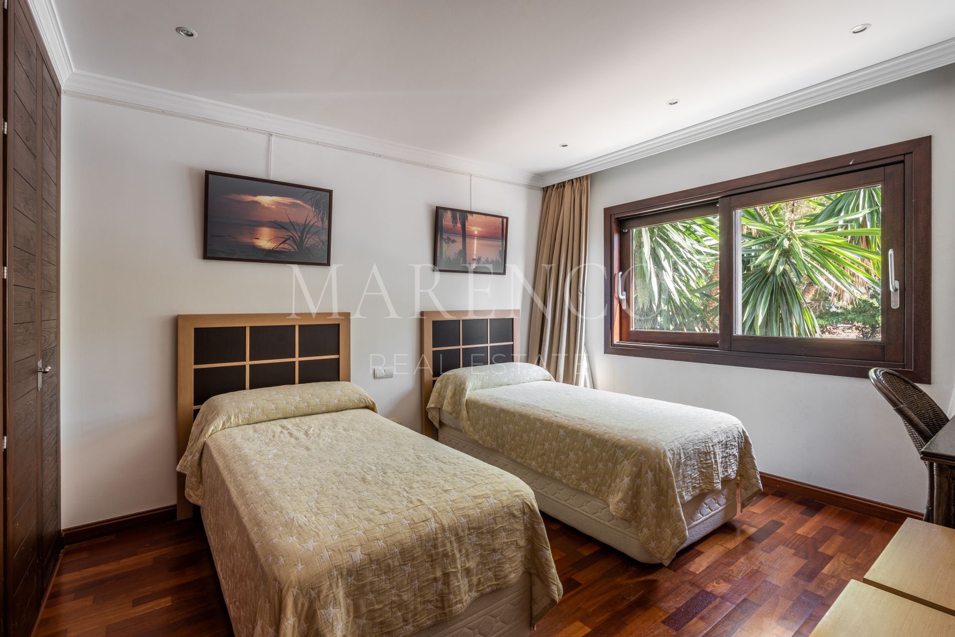 Situada en una impresionante parcela de 7,415 m², esta residencia palaciega, considerada una de las 20 mejores casas de Marbella, cuenta con 8 dormitorios, 8 baños y una Casa para los cuidadores con 2 dormitorios y un baño. Además, existe la posibilidad de construir una casa adicional de 500 m².