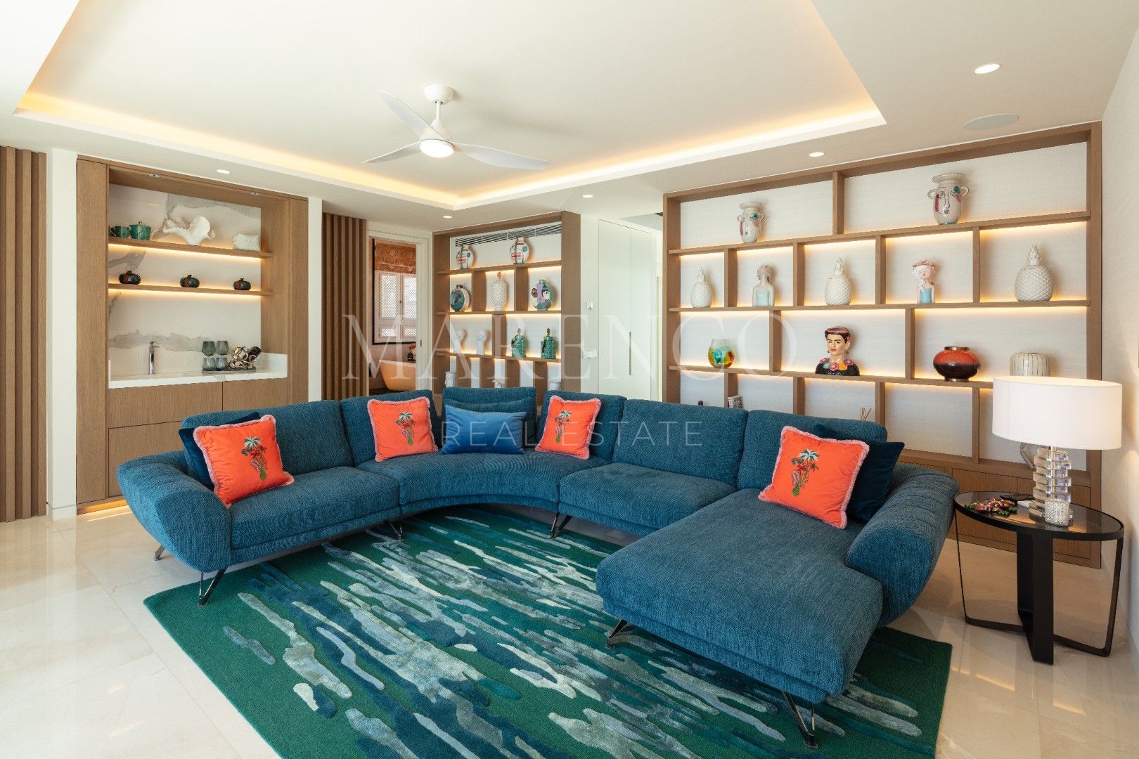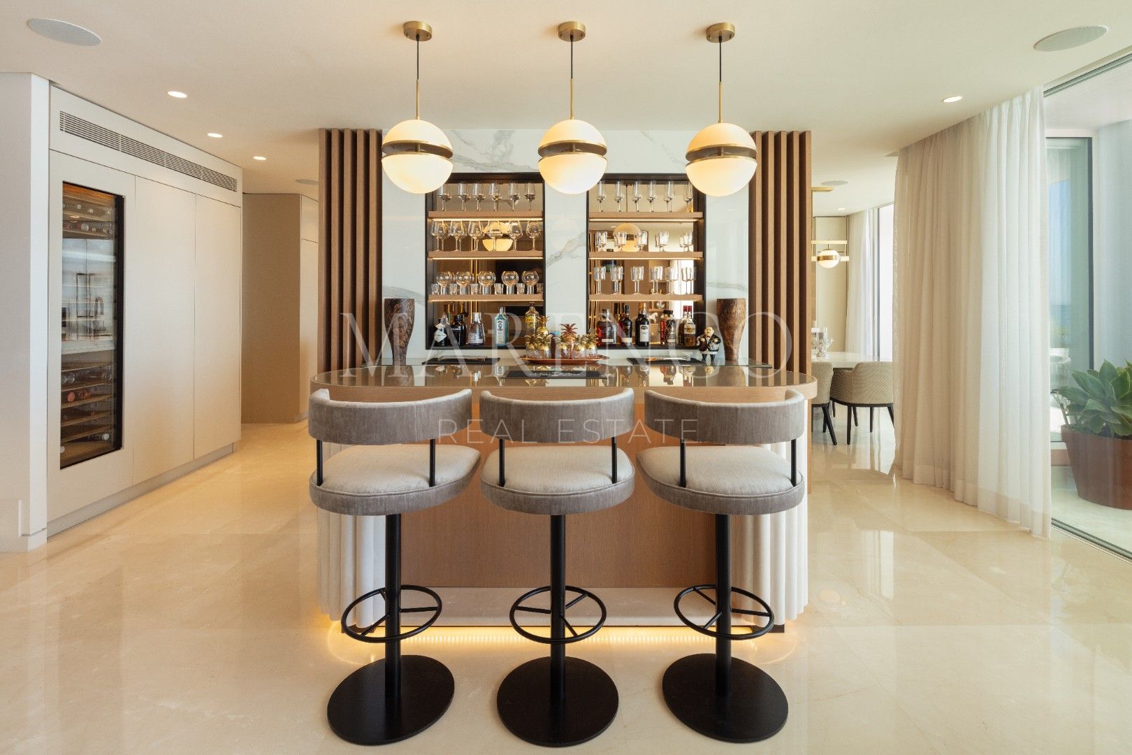 Con meticulosa atención al detalle en el diseño y el mobiliario, Penthouse One cuenta con una amplia superficie construida de 454 m2, seis dormitorios en suite, cada uno de ellos exudando elegancia y estilo. La cocina de última generación, equipada con electrodomésticos Gaggenau de alta calidad, se convierte en un paraíso culinario, mientras que la zona de comedor ofrece vistas inolvidables al mar, creando una experiencia gastronómica memorable.