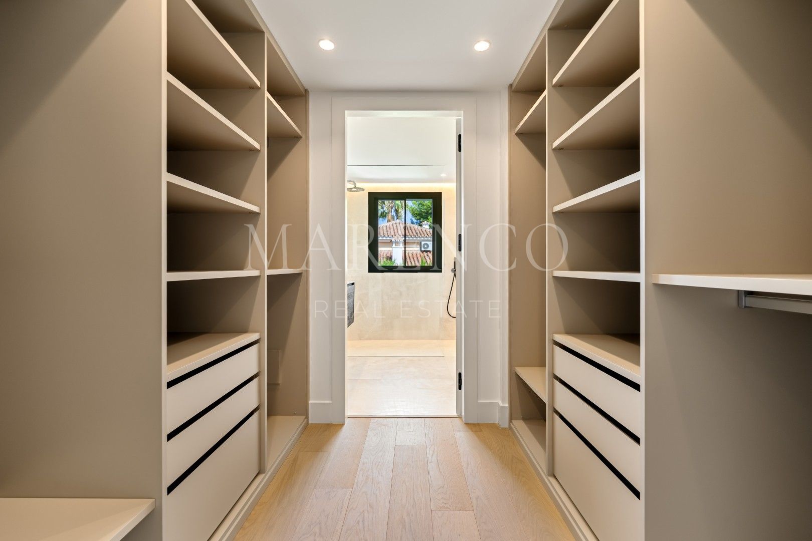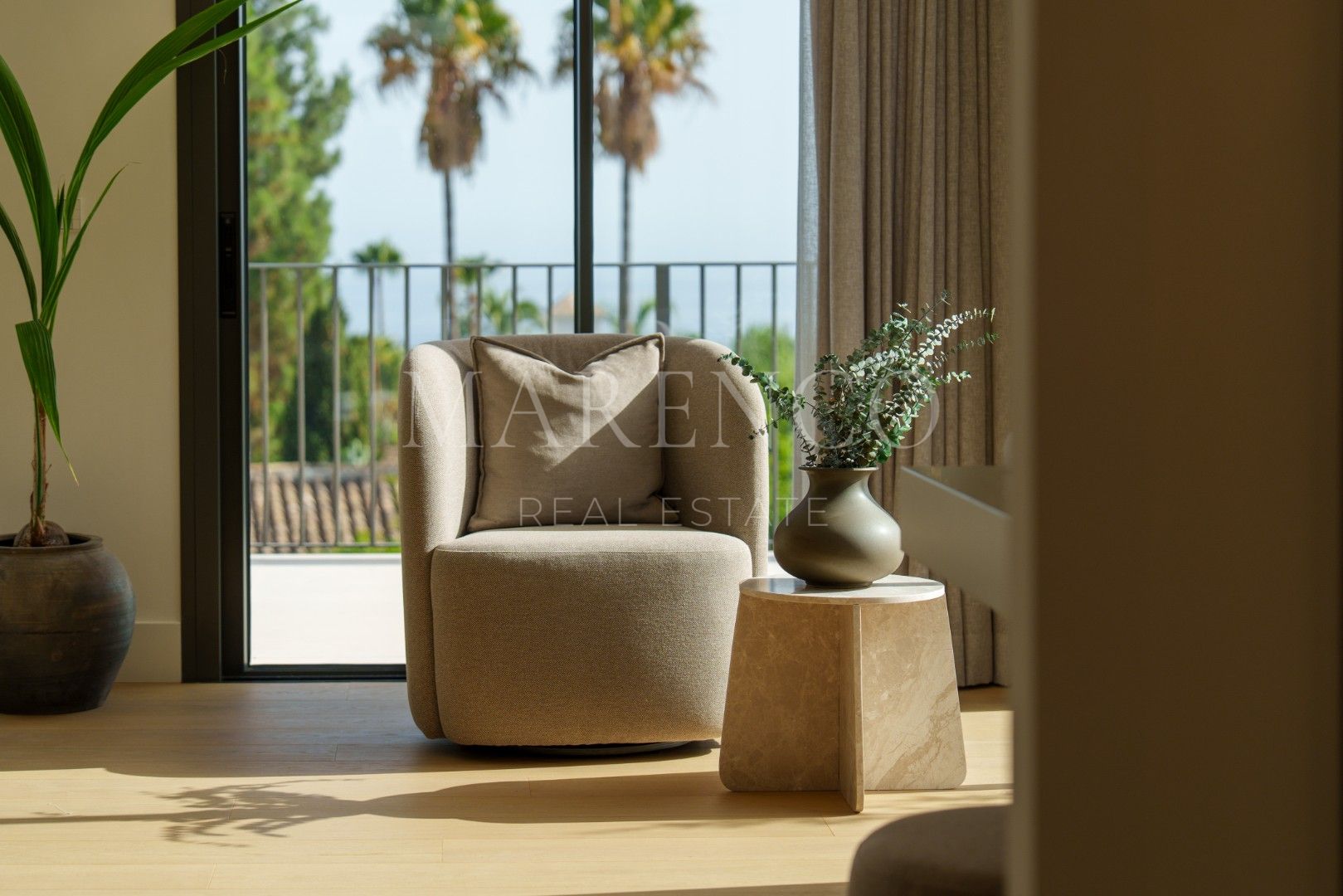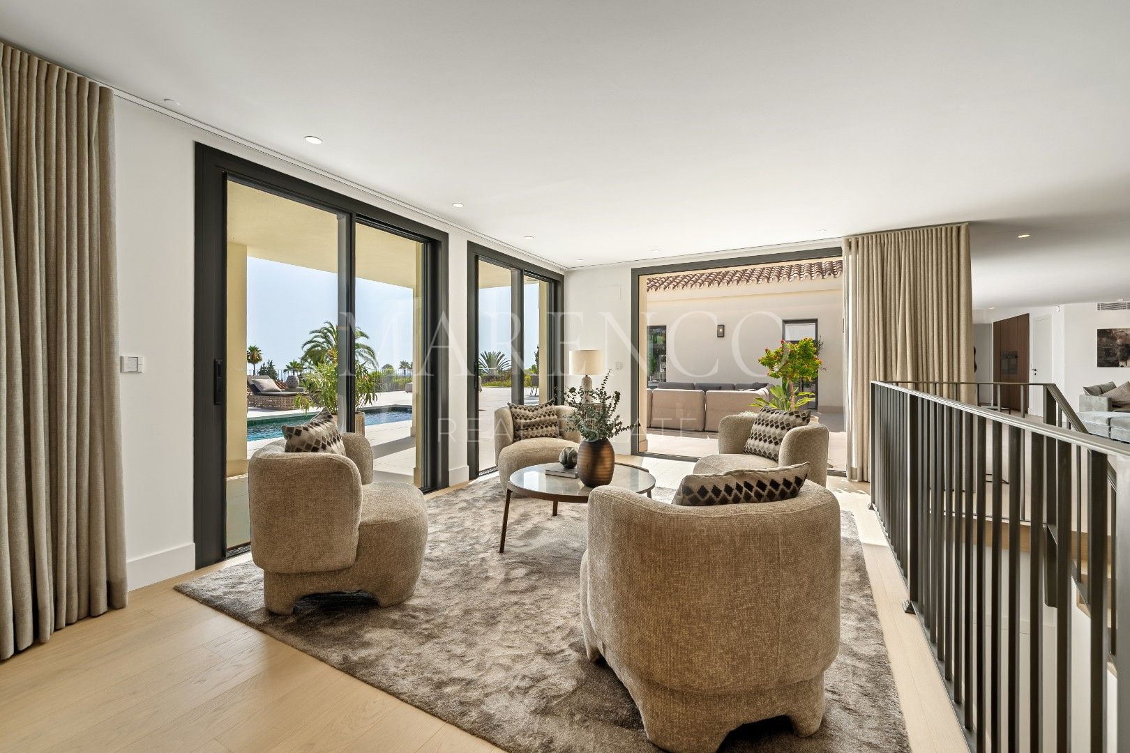 Situada en una amplia parcela orientada al sur de 1.965 m², Villa Rocío ofrece 734 m² de interiores luminosos donde los techos altos y los ventanales de suelo a techo crean una perfecta conexión entre interior y exterior. La distribución gira en torno a un sofisticado salón comedor de planta abierta con cocina de diseño e isla central, mientras que cinco amplias suites —incluida una suite principal panorámica con terraza privada y vestidor de paso— garantizan comodidad y privacidad.