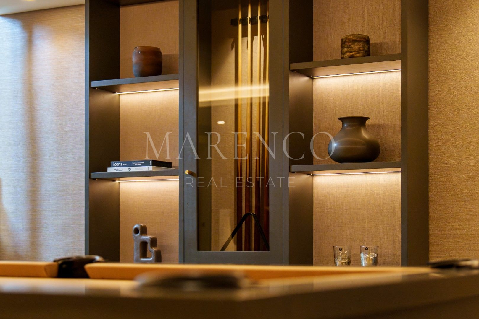 La planta inferior sorprende con un elegante salón de entretenimiento equipado con bar, bodega acristalada y mesa de billar, complementado con dos aseos de cortesía y abundante espacio de almacenaje. En el exterior, más de 450 m² de terrazas rodean una gran piscina de agua salada, zona de solárium y jardines paisajísticos —el escenario perfecto para disfrutar del sol de Marbella durante todo el año.