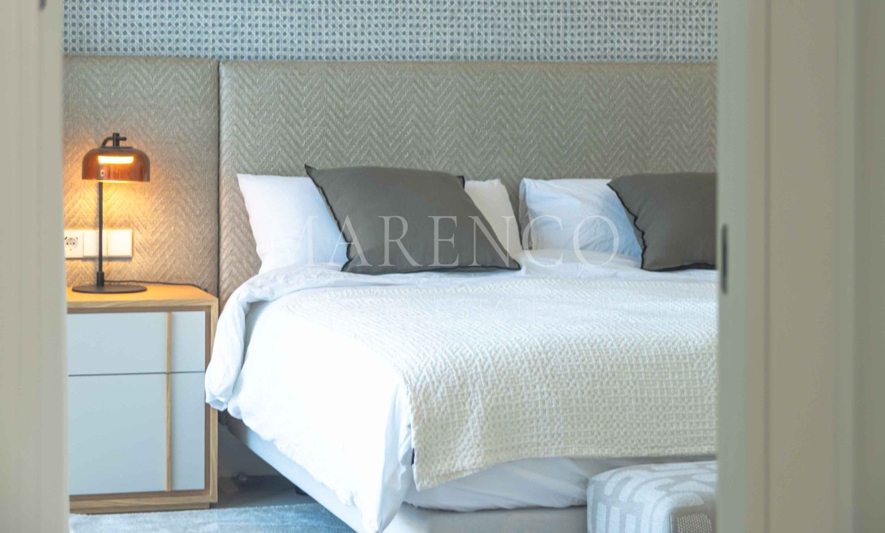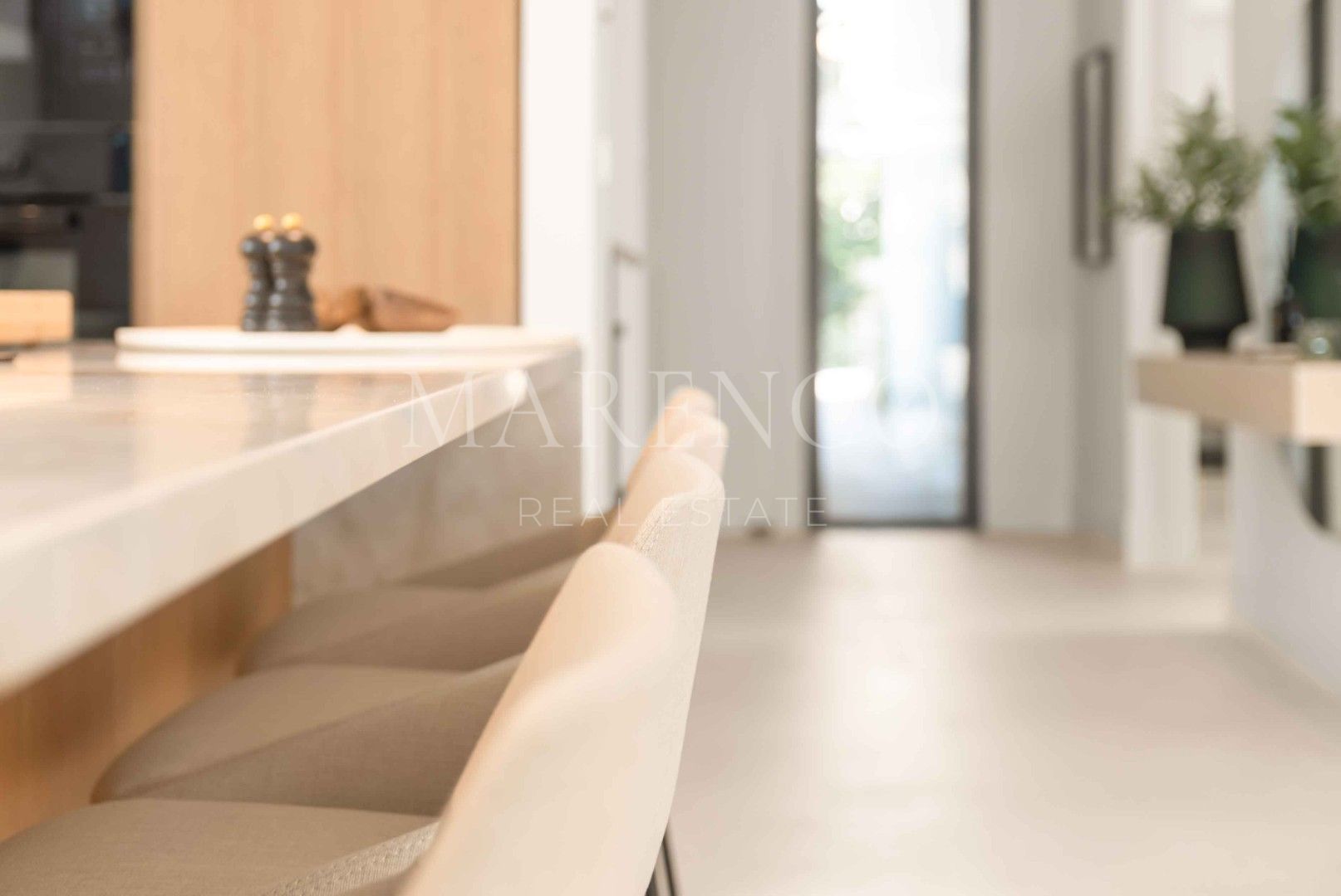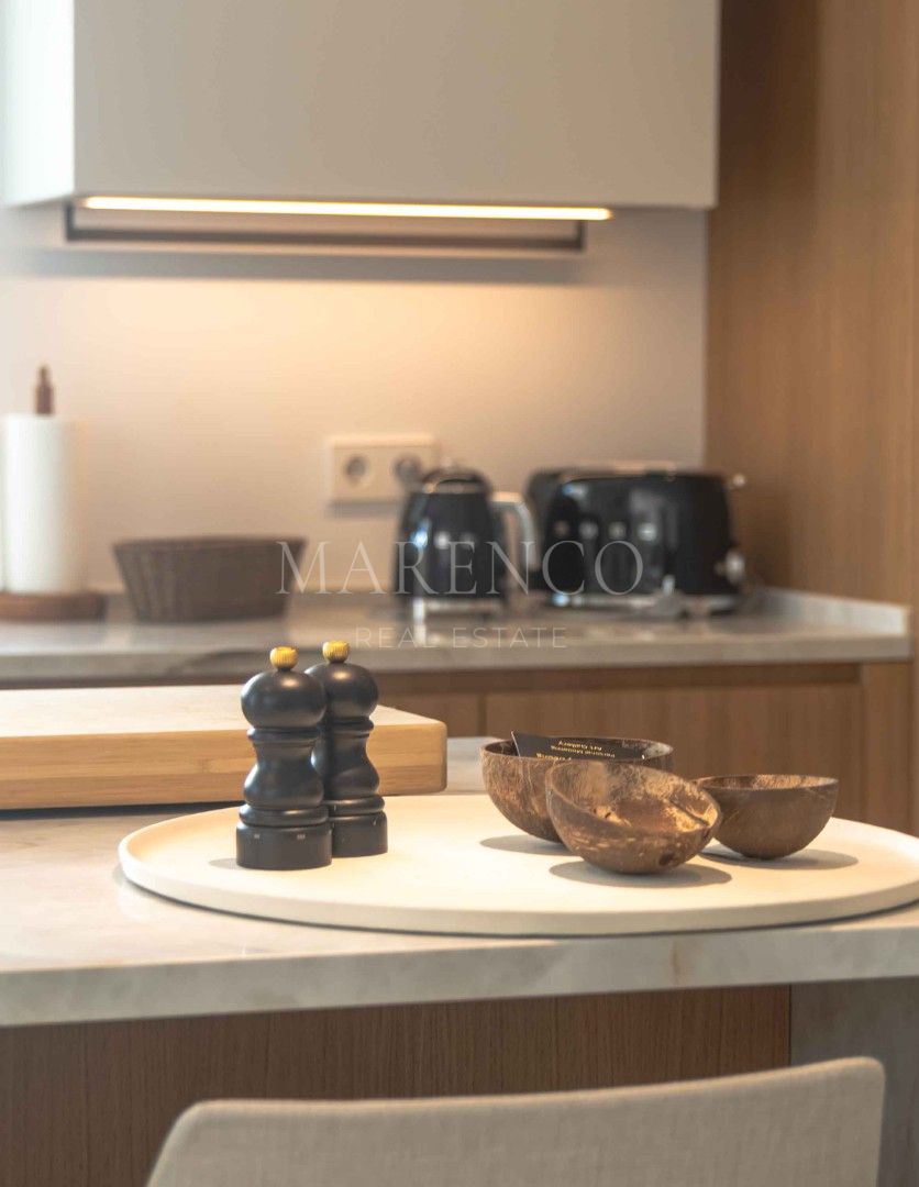 Al ingresar, serás recibido por un espacio de vida abierto donde la sala de estar, el comedor y la cocina se conectan visual y funcionalmente, ofreciendo el ambiente perfecto tanto para la relajación como para el entretenimiento. La cocina completamente equipada, con electrodomésticos de alta gama y una isla central, es ideal tanto para el uso diario como para recibir invitados. Grandes puertas corredizas abren a la impresionante terraza, ampliando el espacio interior y trayendo el exterior hacia adentro. El área principal de la sala cuenta con detalles de lujo, como una chimenea, mientras que los materiales cuidadosamente elegidos crean una atmósfera tranquila y coherente a lo largo de toda la villa.