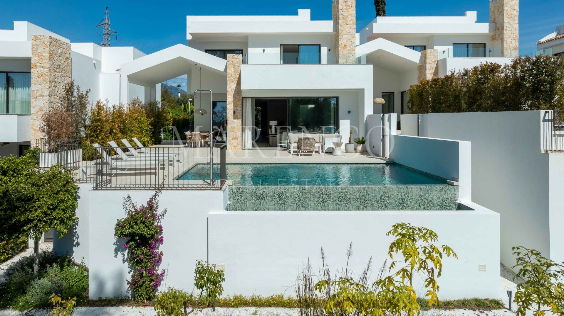 Imagina despertar cada mañana en la serena belleza de tu propio refugio privado, ubicado en el exclusivo barrio residencial de San Pedro Alcántara. Esta espectacular villa de lujo, con un precio de 3.700.000 €, cuenta con un diseño arquitectónico contemporáneo que se integra perfectamente con su entorno natural. Con 5 amplios dormitorios, 4.5 baños y amplias áreas de estar, esta villa ofrece 488 m² de interiores bellamente diseñados, más 238 m² de terrazas, todo en un terreno de 526 m². Aquí, la privacidad, la tranquilidad y la elegancia refinada se encuentran en cada rincón.