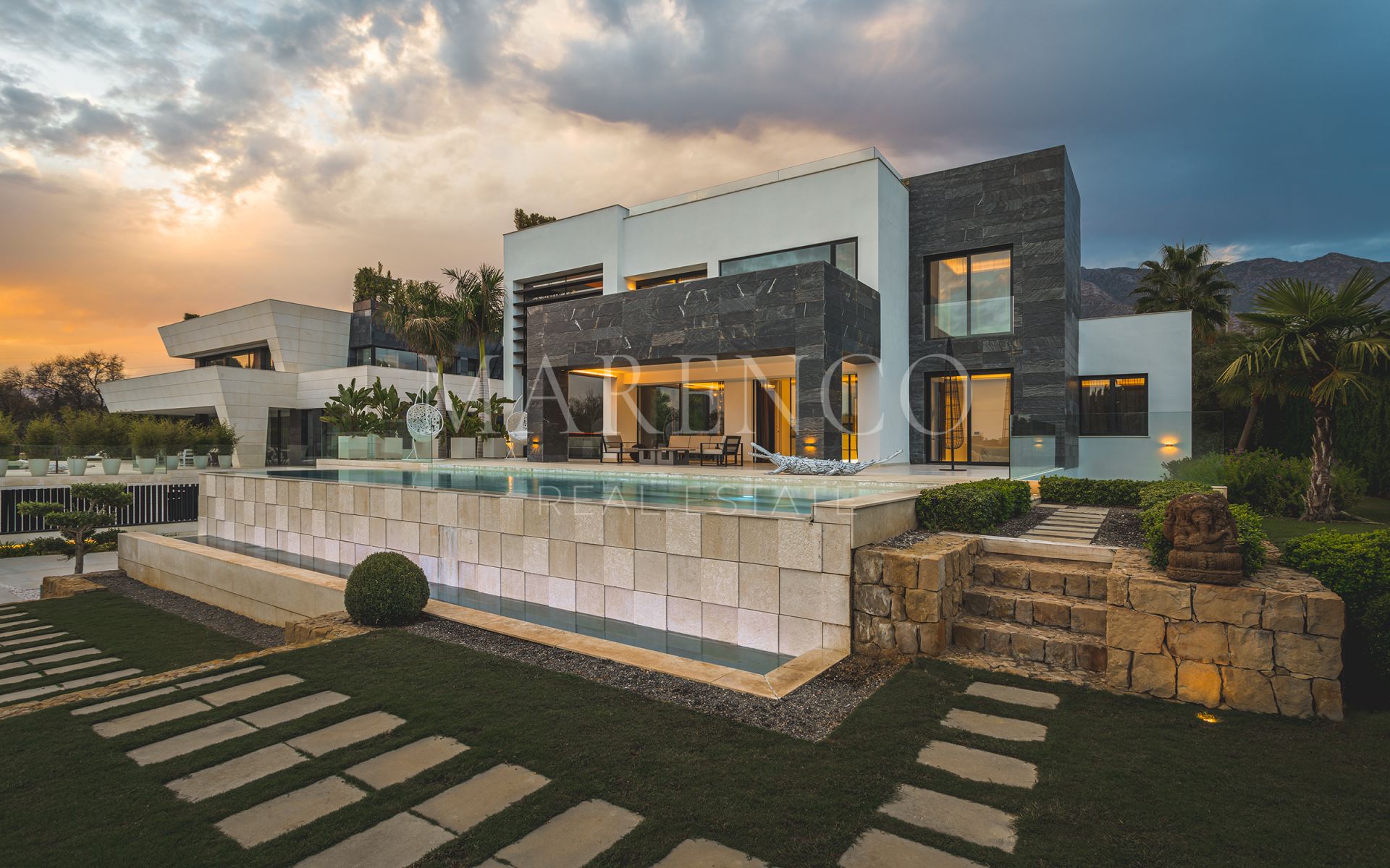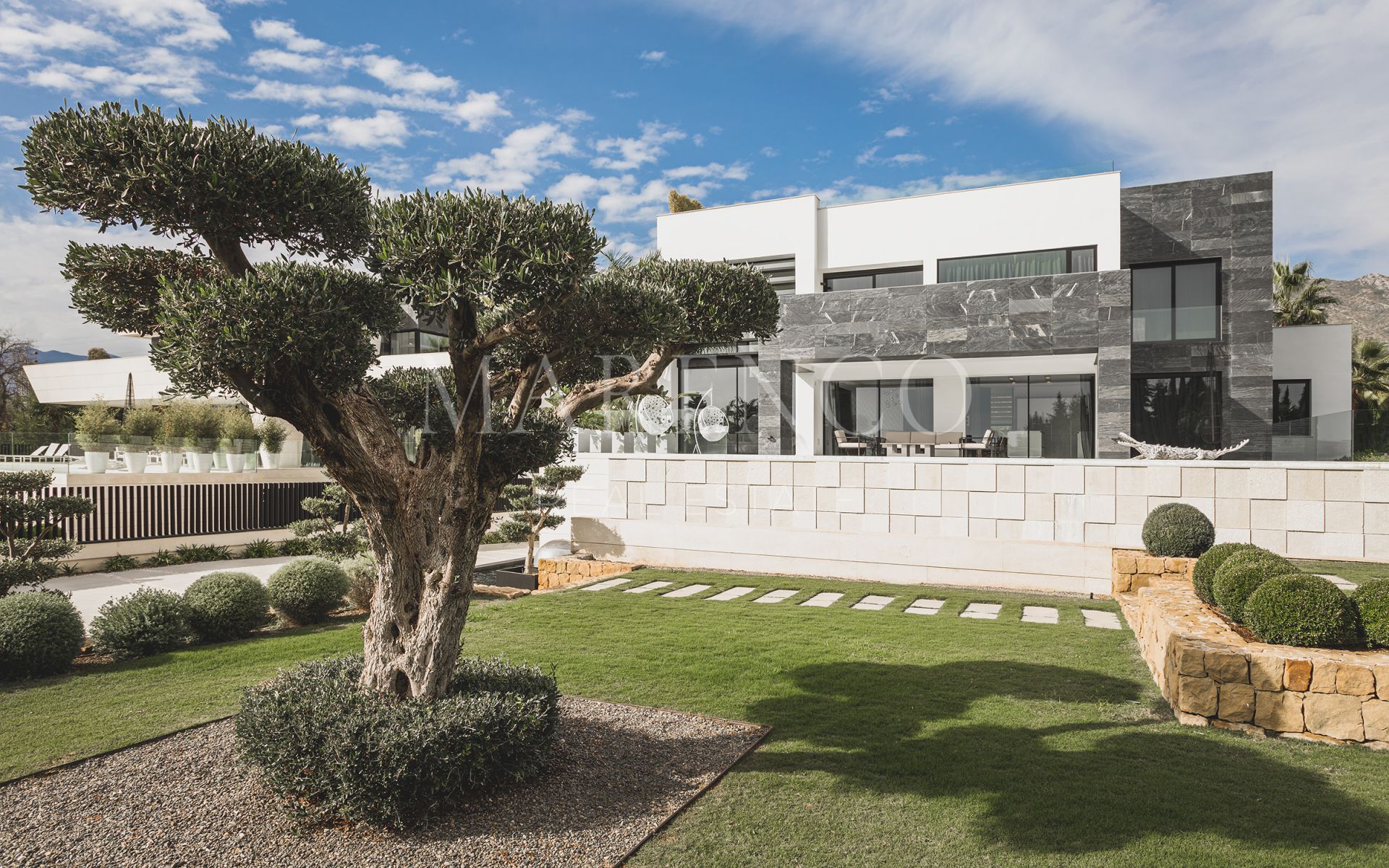 Cette superbe villa se compose de 5 chambres sur trois niveaux: rez-de-chaussée, premier étage et sous-sol. Il a été construit en utilisant les plus hautes qualités et les dernières finitions. Tous les détails ont été pris en considération pour créer cette belle villa. La cuisine est totalement équipée, il y a système domotique, jacuzzi, sécurité 24h / 24. La villa dispose de grandes terrasses où vous pourrez profiter d’une vue panoramique sur la mer et la montagne. Le jardin privé vous offre de profiter au maximum du soleil et du style de vie de Marbella.