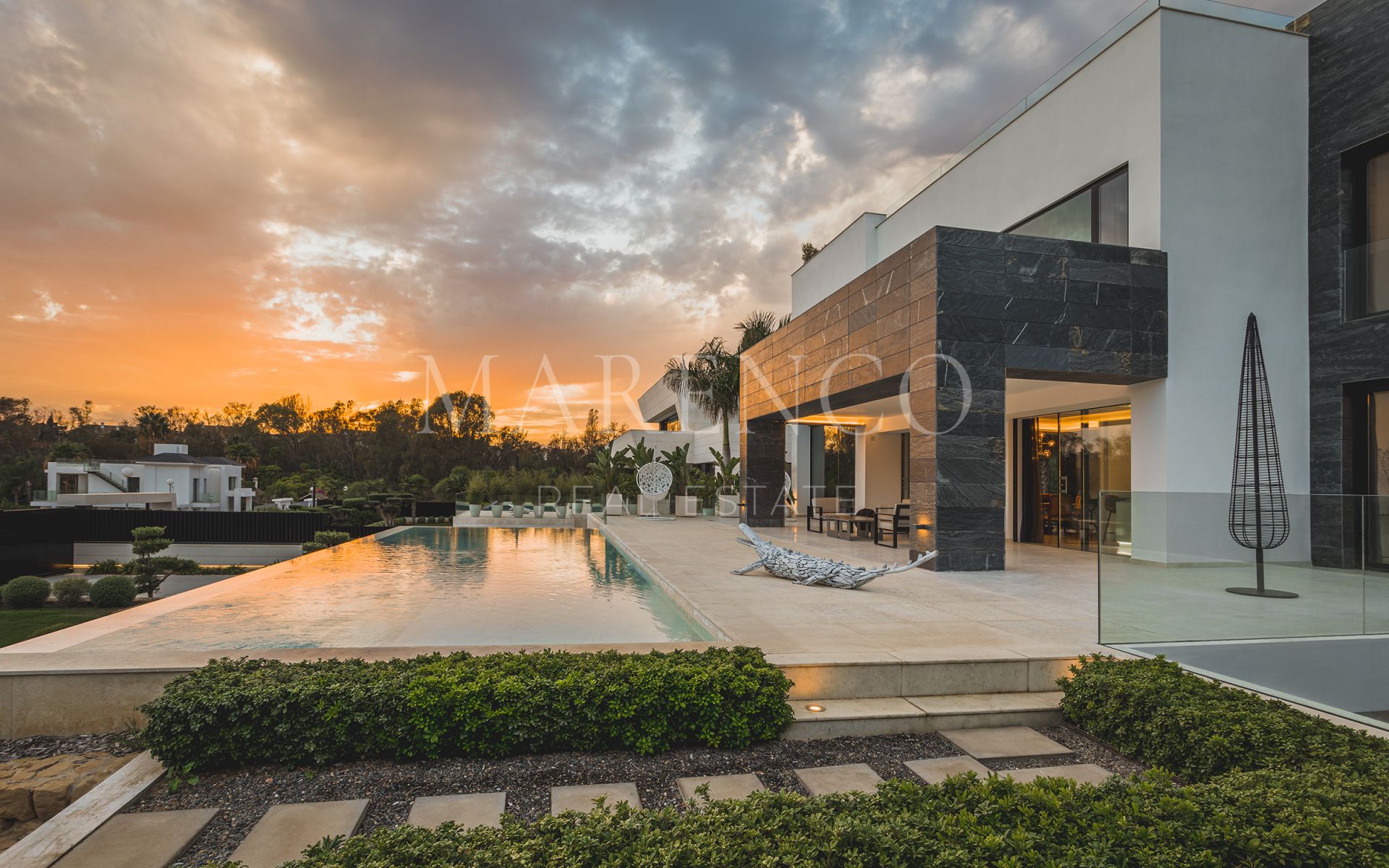 Cette toute nouvelle villa moderne est située dans l’un des quartiers les plus prestigieux d’une communauté fermée avec seulement 10 villas dans un Golden Mile de Marbella. Proche de tous les services, boutiques et restaurants de luxe, belles plages et terrains de golf réputés. Tout est à une courte distance en voiture.