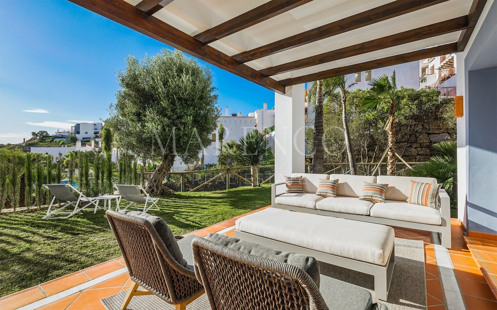 Les appartements du rez-de-chaussée de trois chambres offrent de grandes terrasses, ainsi qu’un superbe jardin privé où vous pourrez profiter du style de vie de la Costa del Sol.Les propriétés sont équipées d’une cuisine entièrement équipée avec plaque vitrocéramique, lave-vaisselle, réfrigérateur et machine à laver.