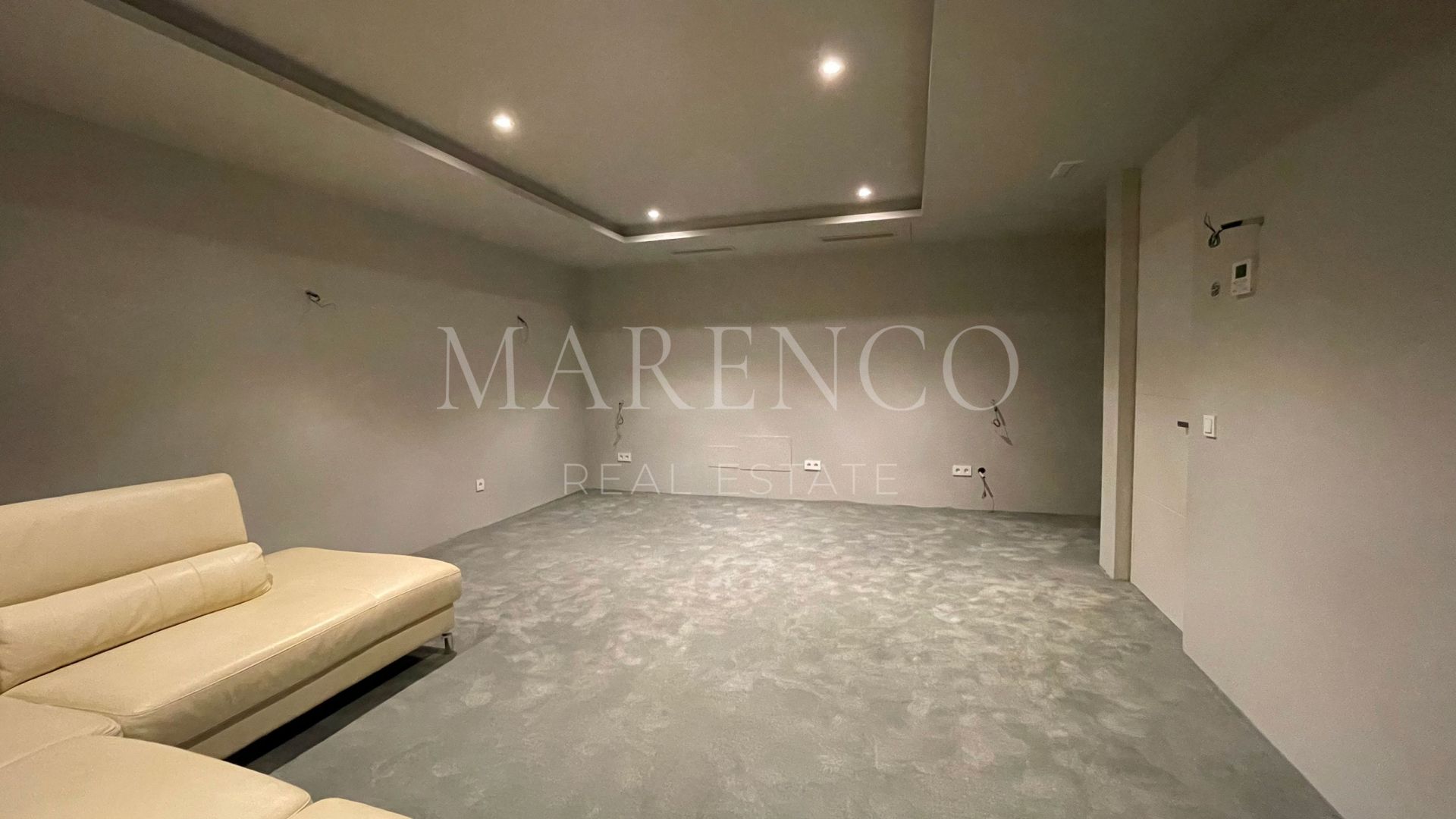 Elle comprend 5 chambres et 5,5 salles de bains, réparties sur 3 niveaux desservis par un élégant ascenseur. Le sous-sol abrite un grand garage, un espace de sport et une salle de cinéma maison.