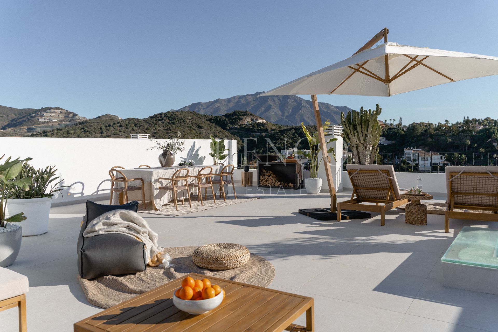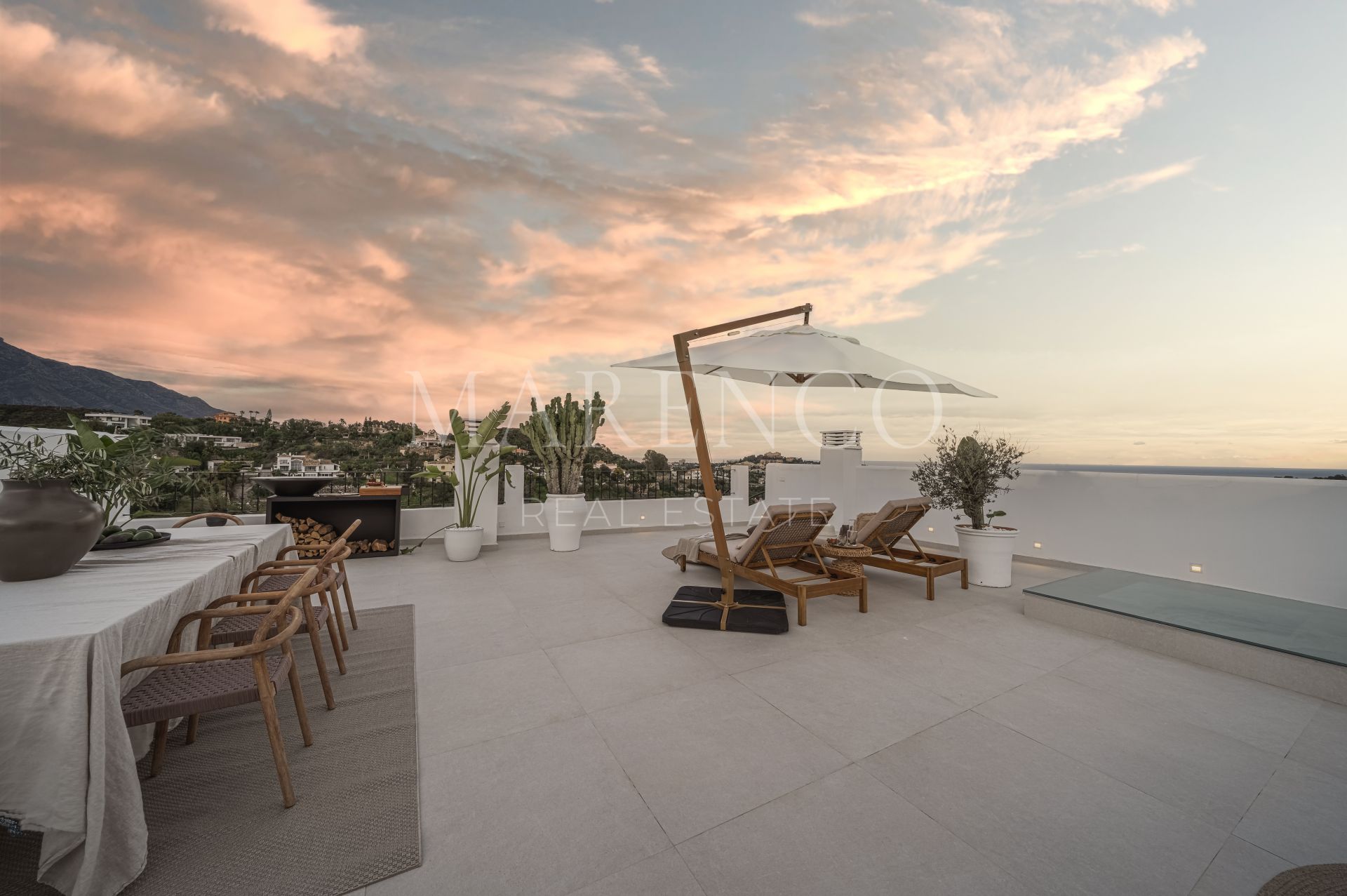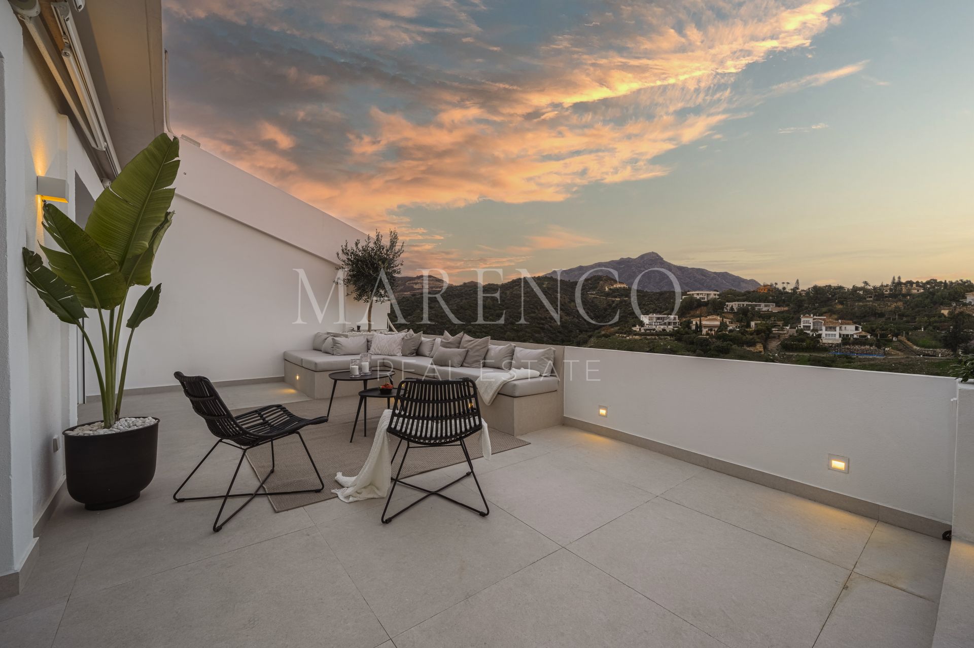 Cette propriété a les installations suivantes: terrasse privée, salle de séjour, services de proximité, À proximité des commerces, près de la ville, chauffage par le sol (partiel), proche des écoles, vue mer, cuisine entièrement adaptée, vue montagne, golf à proximité, terrasse découverte, portes en verre, cuisine ouverte, balcon, solarium, terrasse couverte, meubles en option, excellent état, barbecue, récemment rénové et vue panoramique.
