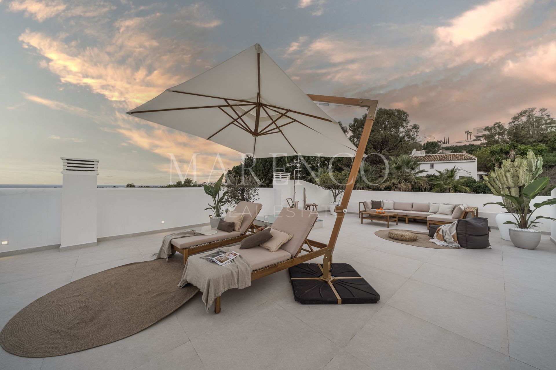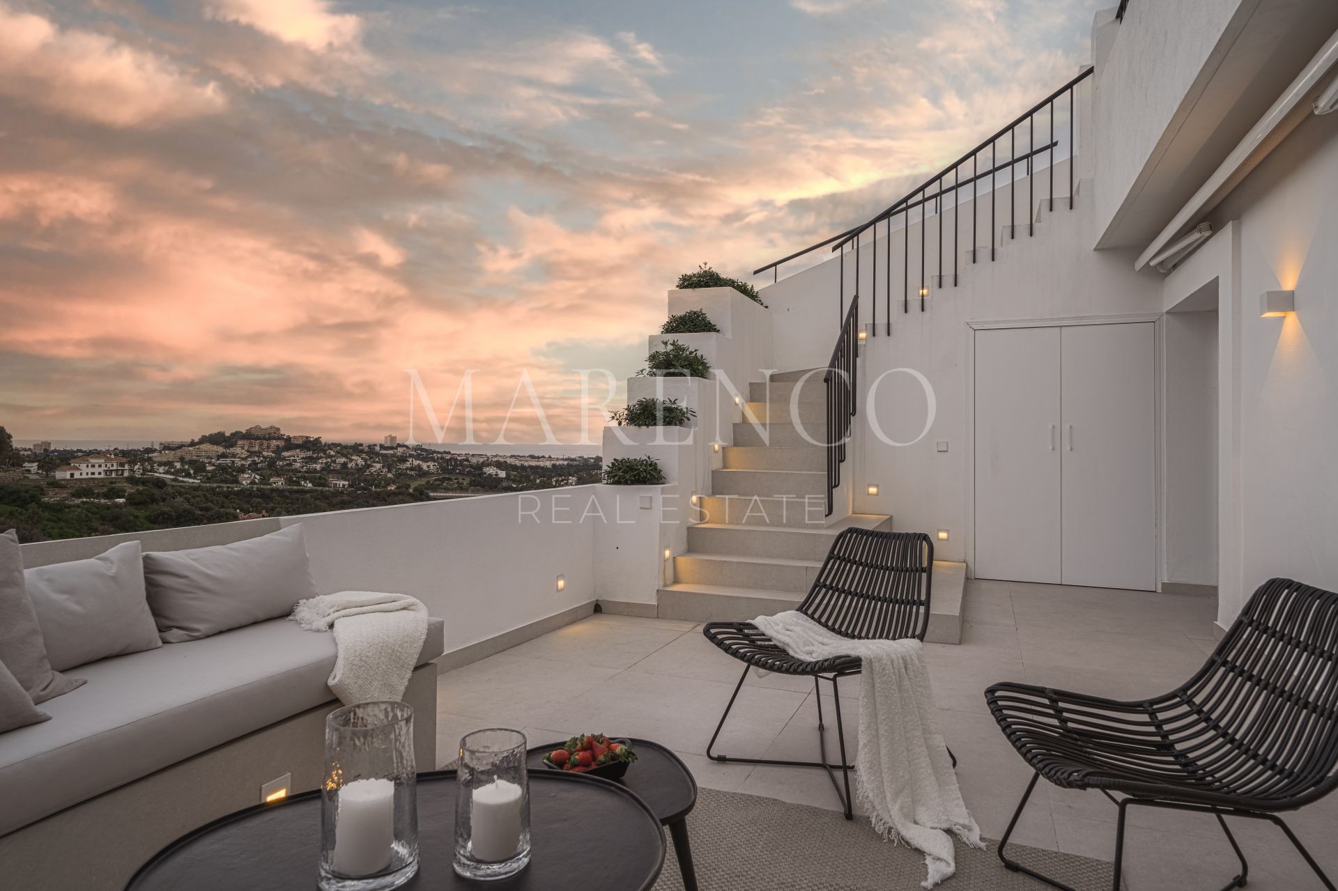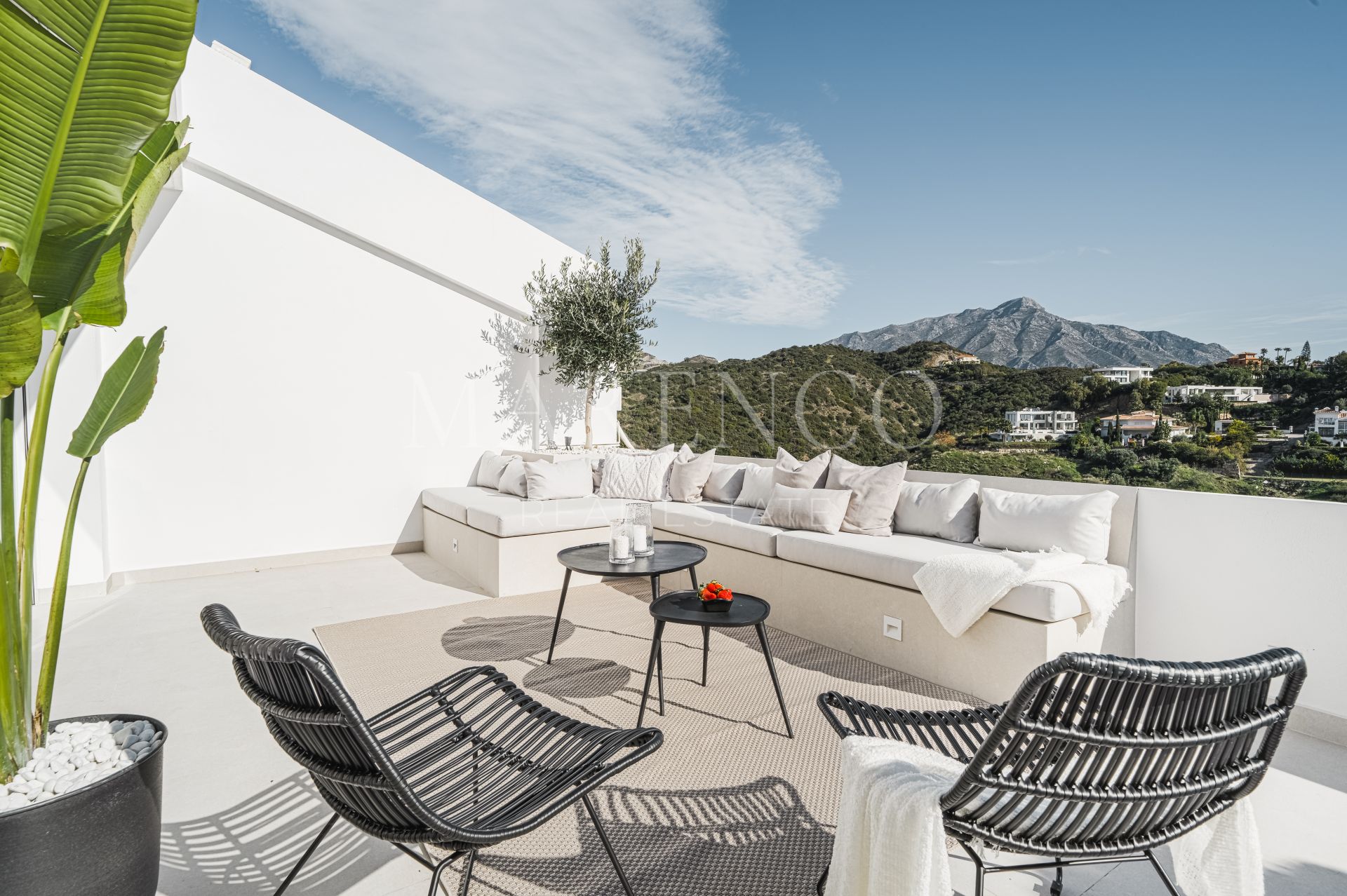 Cette propriété a les installations suivantes: terrasse privée, salle de séjour, services de proximité, À proximité des commerces, près de la ville, chauffage par le sol (partiel), proche des écoles, vue mer, cuisine entièrement adaptée, vue montagne, golf à proximité, terrasse découverte, portes en verre, cuisine ouverte, balcon, solarium, terrasse couverte, meubles en option, excellent état, barbecue, récemment rénové et vue panoramique.