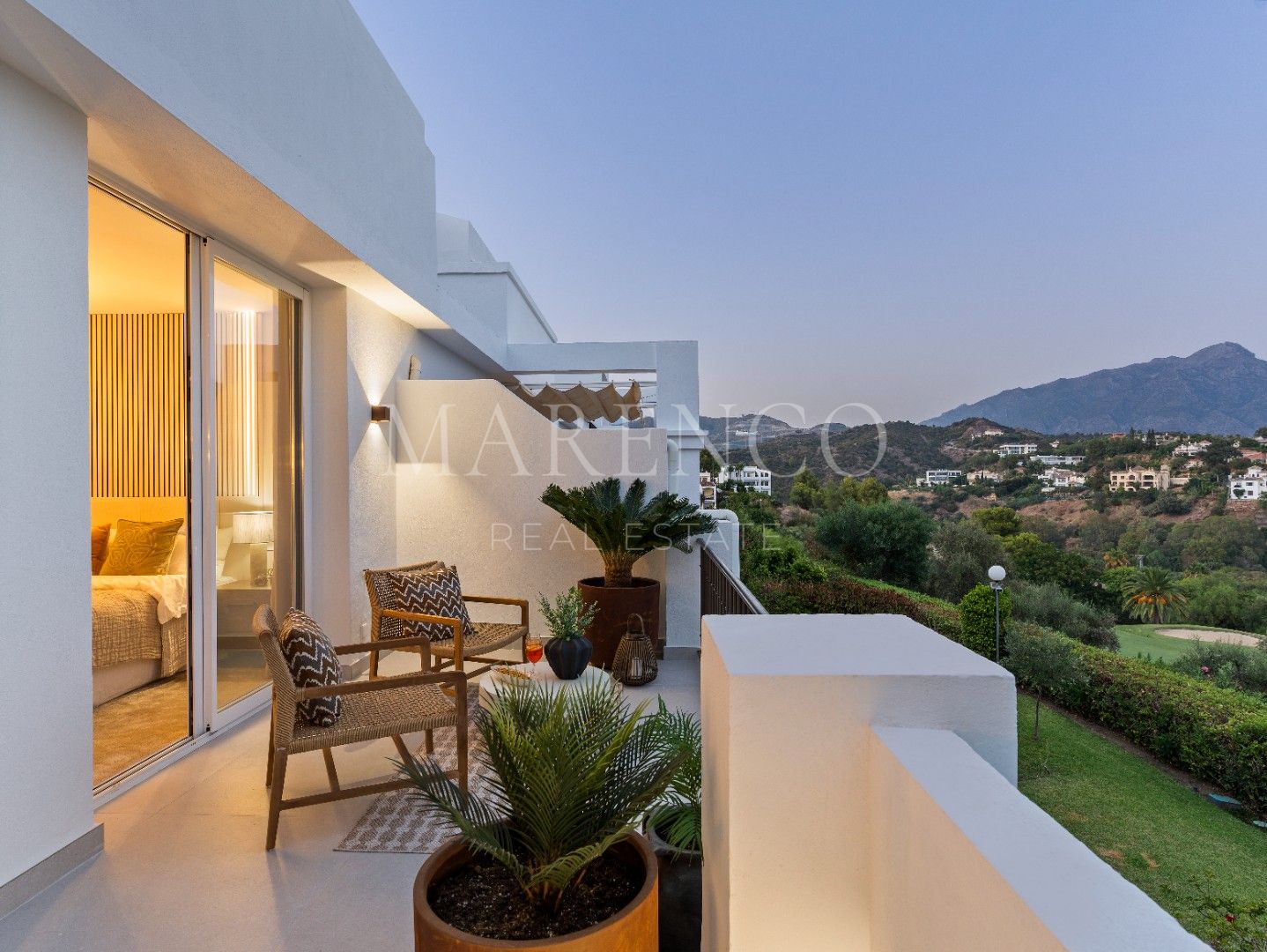 Cette propriété, orientation sud-est, a les installations suivantes: première ligne de golf, balcon, solarium, terrasse couverte, vue campagne, vue montagne, excellent état, cheminée, vue sur le golf, barbecue et vue panoramique.