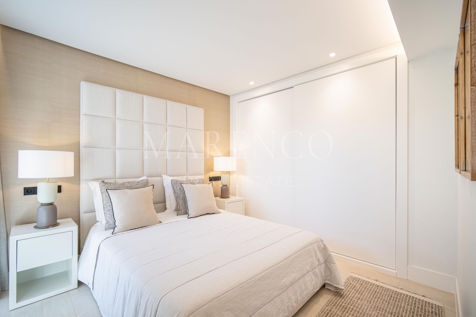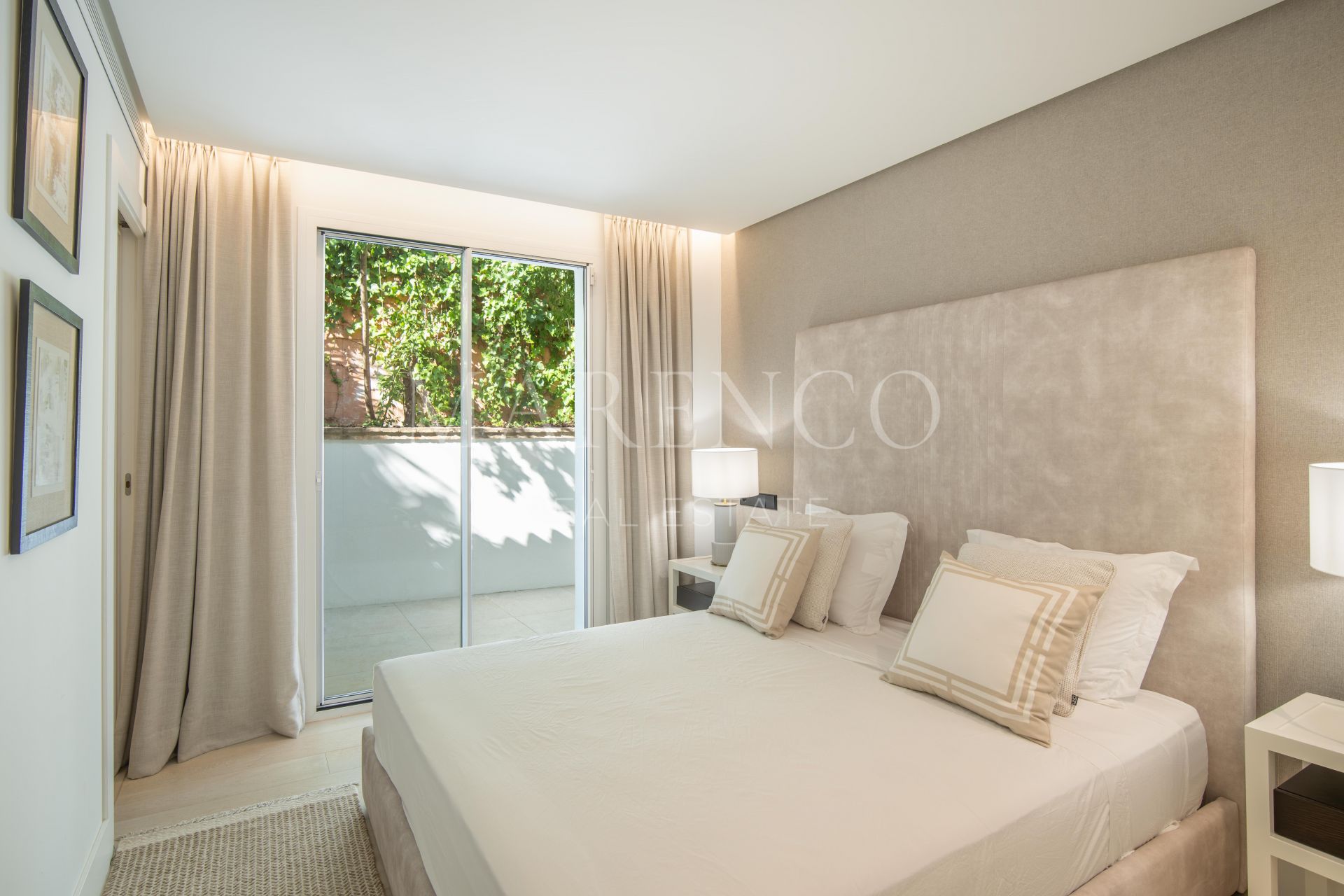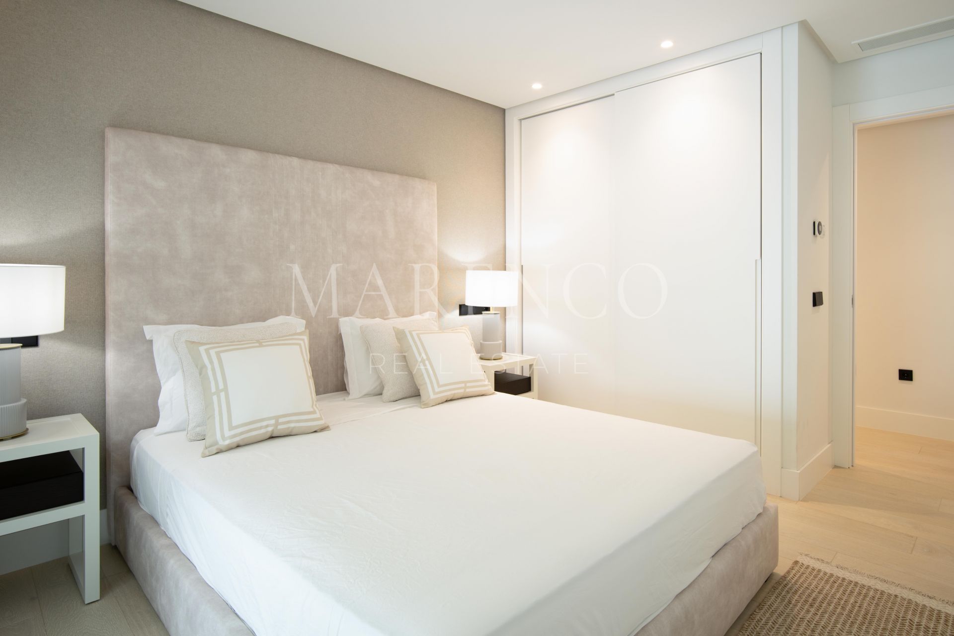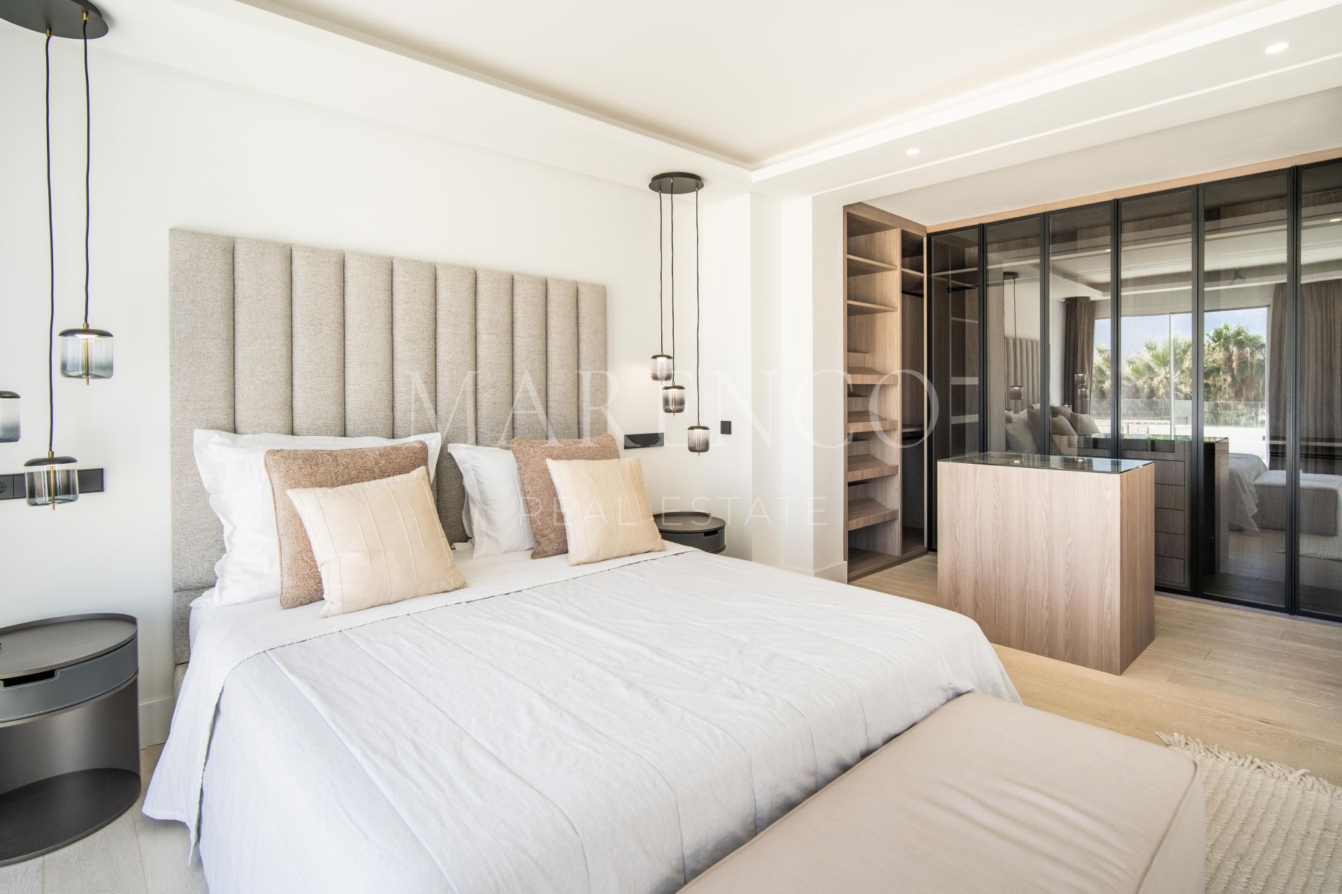 À l’étage, la villa dévoile ses prestations les plus exclusives. Deux suites supplémentaires occupent cet espace, dont la chambre principale avec accès direct à une terrasse privée offrant une vue pittoresque sur La Concha. Un grand solarium complète la maison, parfait pour profiter du soleil toute la journée tout en admirant la vue dégagée sur le parcours de Las Brisas. À l’extérieur, un jardin luxuriant entoure une vaste piscine privée, complété par un porche couvert idéal pour les repas en plein air. La propriété dispose également d’un sauna finlandais flambant neuf avec accès direct au jardin et à la piscine, conçu pour des moments de détente absolue.