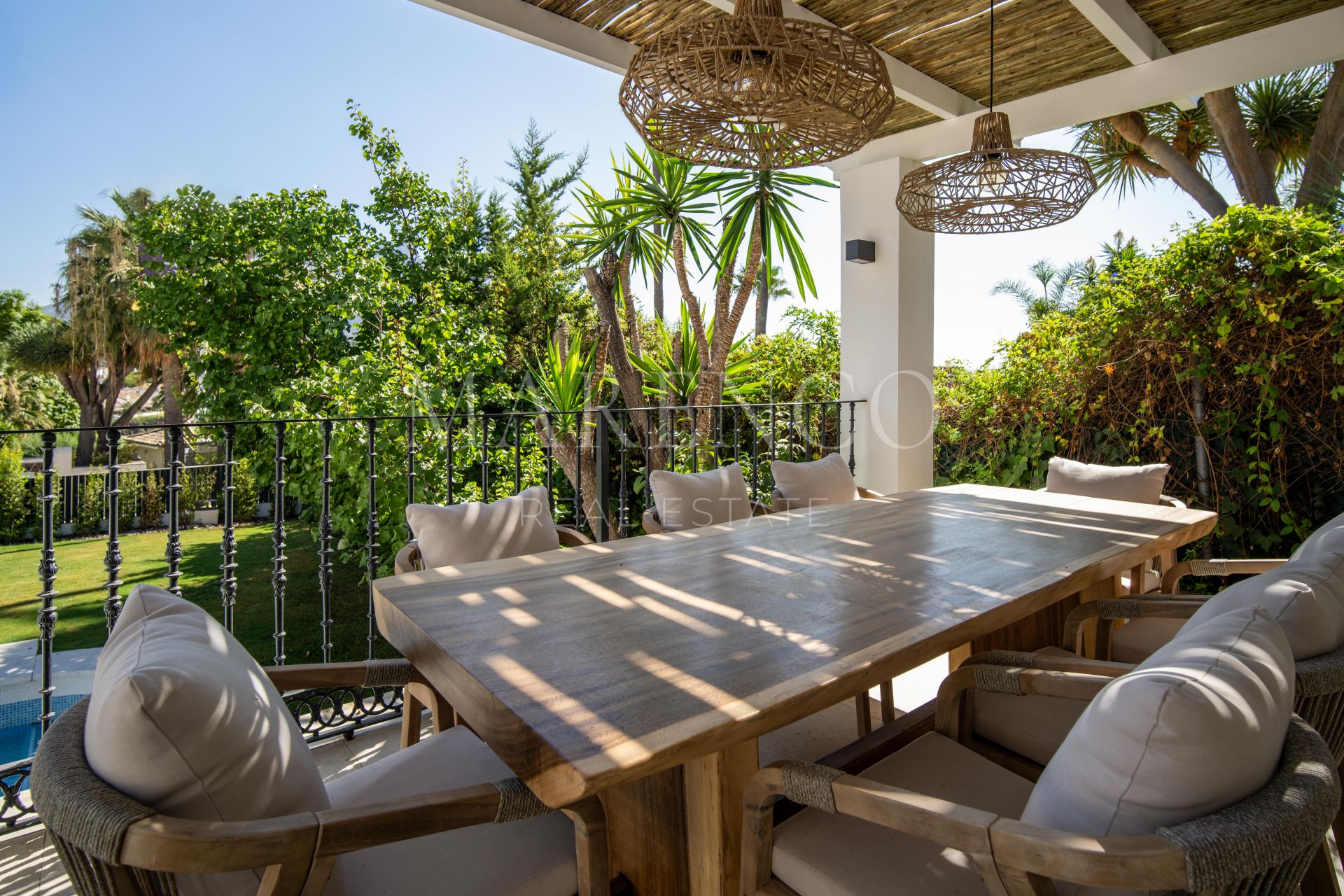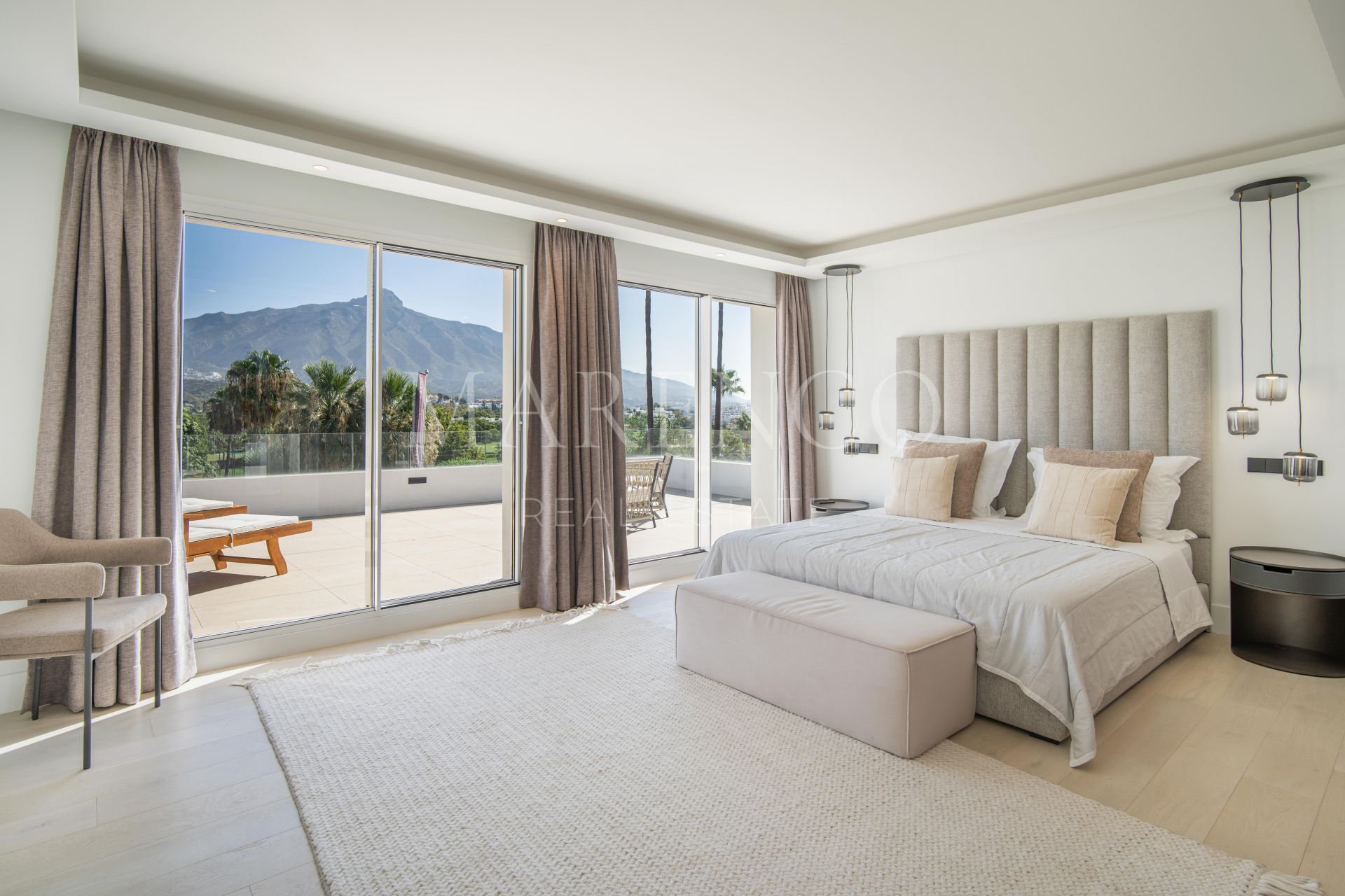 Située dans l’une des zones les plus prisées de la Vallée du Golf, cette villa impressionnante à Las Brisas, Nueva Andalucía allie élégance contemporaine et tranquillité dans un cadre verdoyant et privé. Des vastes terrasses aux vues directes sur la montagne emblématique de La Concha, chaque espace invite à imaginer un quotidien lumineux, paisible et empreint de confort. Son architecture moderne, ses grandes baies vitrées et ses jardins soigneusement aménagés créent une atmosphère profondément méditerranéenne.