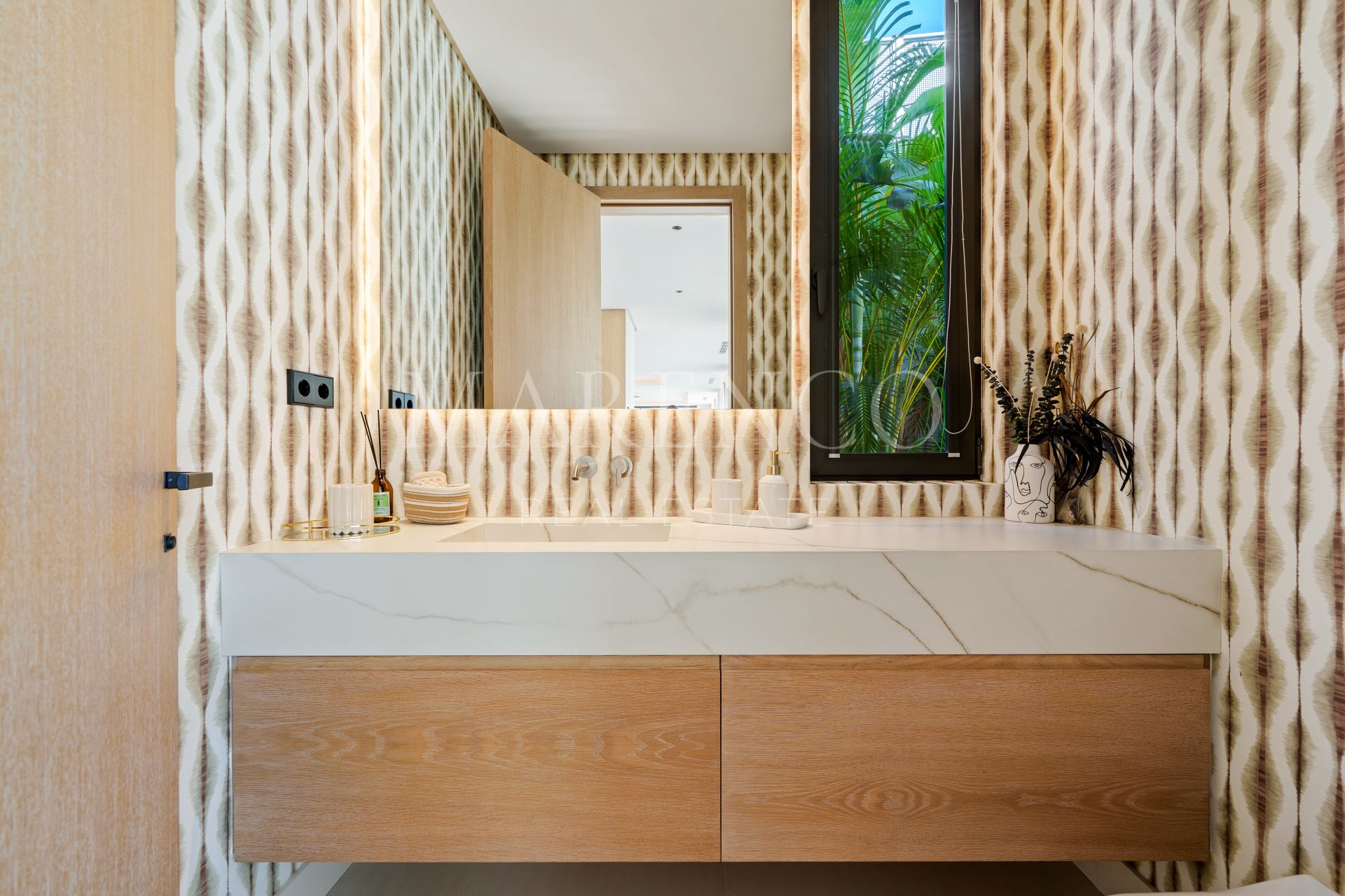 Pensée pour être appréciée toute l’année, cette propriété exclusive à Linda Vista Baja comprend une piscine privée avec terrasse en bois élégante, de vastes espaces extérieurs et un spectaculaire solarium sur le toit, idéal pour savourer les couchers de soleil méditerranéens. Le niveau inférieur abrite un espace bien-être complet avec salle de sport, sauna, hammam et zones de relaxation, accompagné d’un garage privé pour plusieurs véhicules.