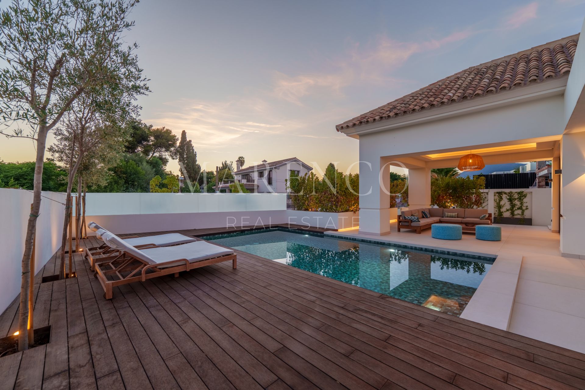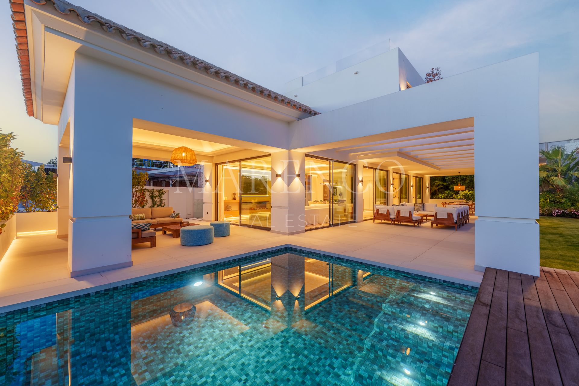 Cette villa offre un style de vie exclusif en bord de mer à San Pedro de Alcántara. Imaginez commencer votre journée à quelques pas de la plage, dans une résidence baignée de lumière, alliant intimité et élégance, où les espaces intérieurs et extérieurs se fondent pour profiter pleinement d’un art de vivre méditerranéen sophistiqué. Un emplacement privilégié à l’ouest de Marbella, proche des meilleurs beach clubs, des parcours de golf et des services haut de gamme.