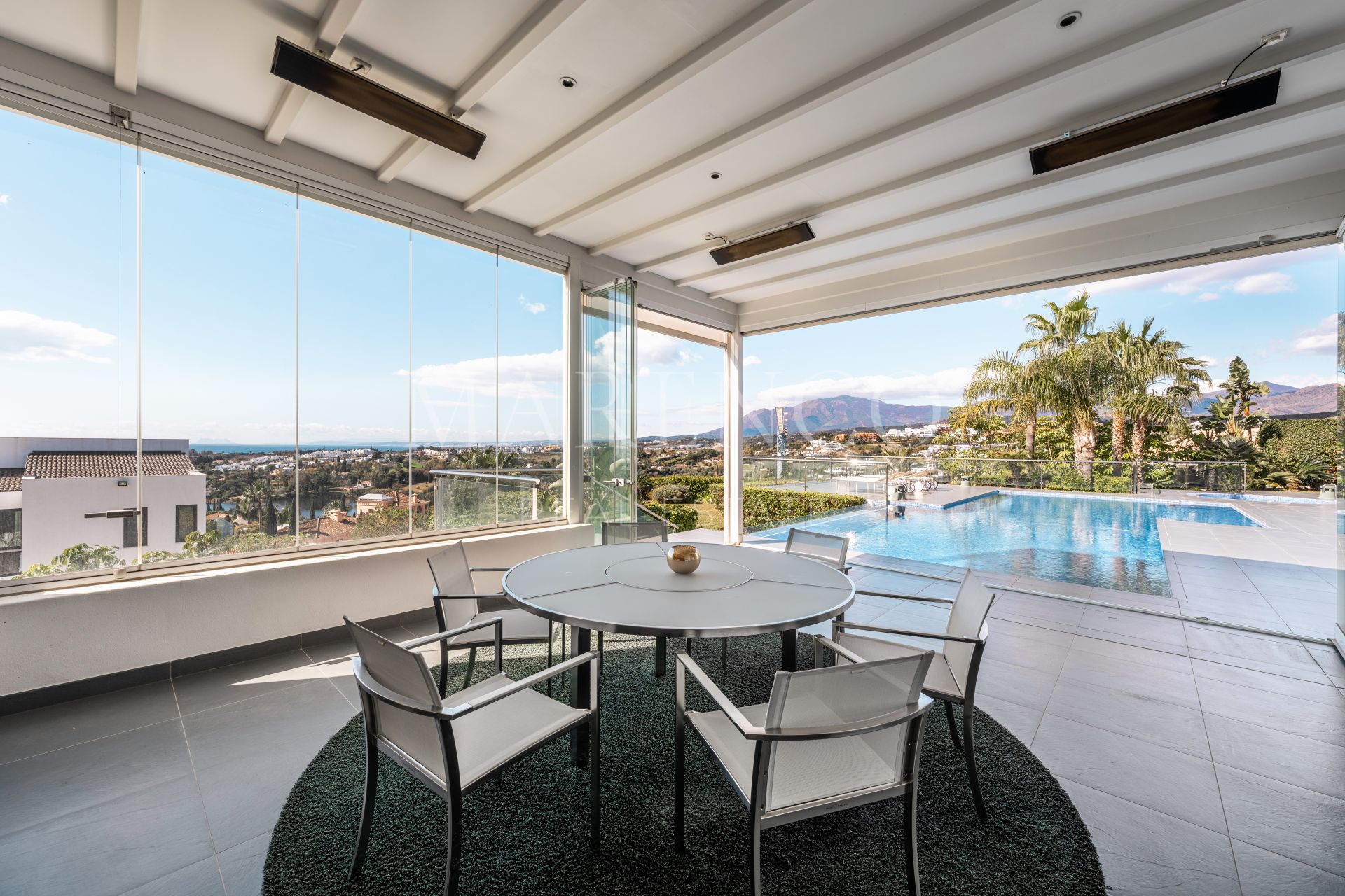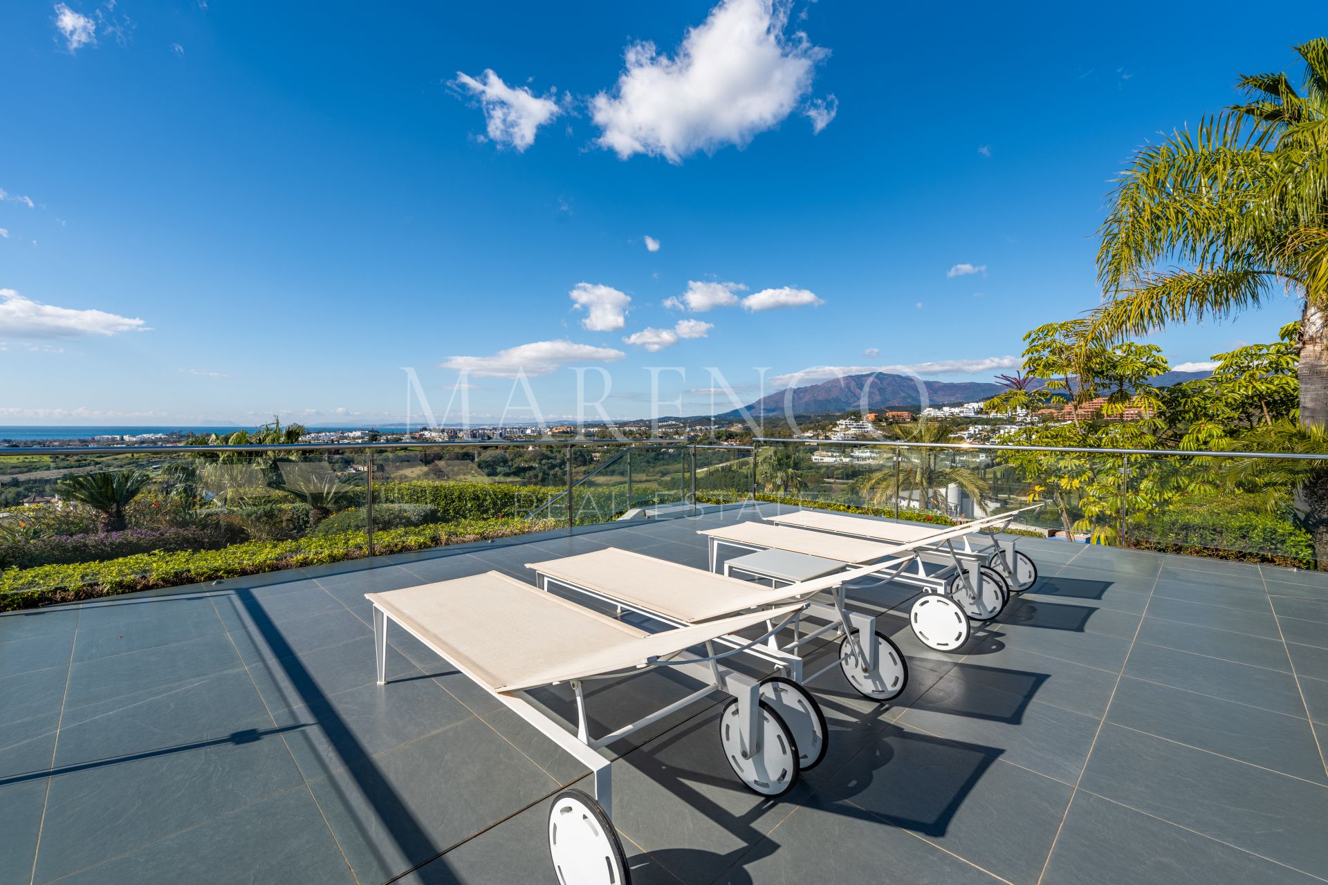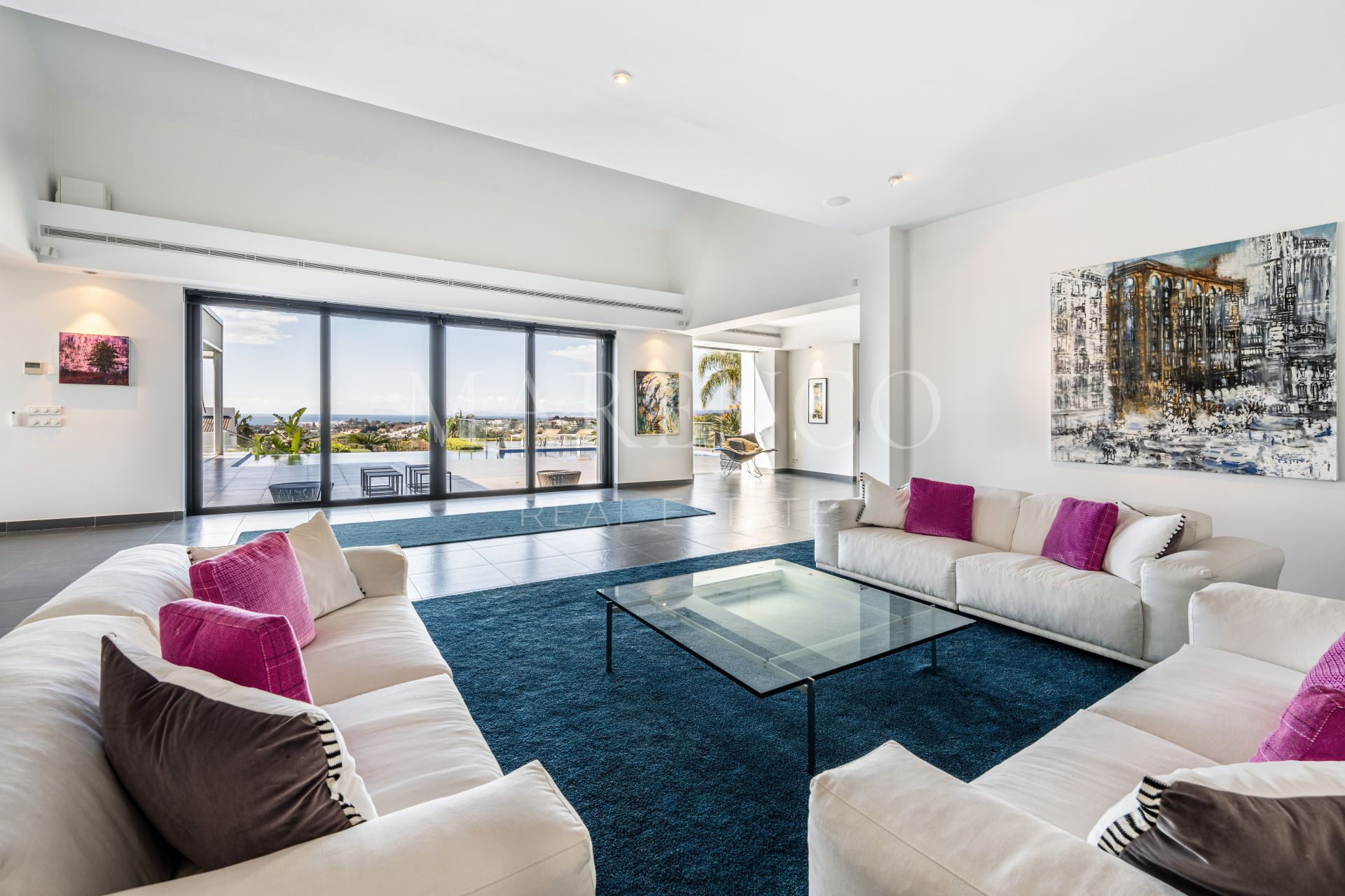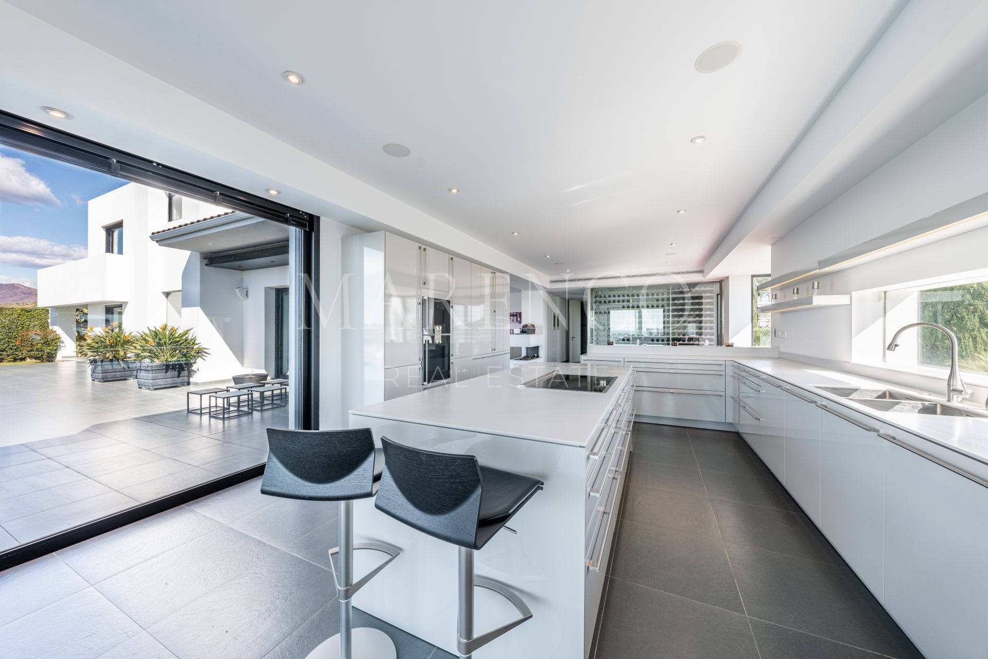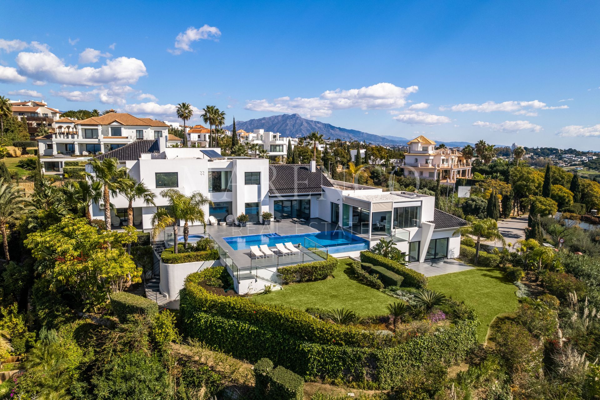 Villa à vendre à Los Flamingos Golf, Benahavis avec 5 Chambres, 5 Salles de bain, construit 2013 et a piscine (privé), garage (privé) et garden (privé). Dimensions: 595m² construit, 2399m² Parcelle et 250m² terrasse.