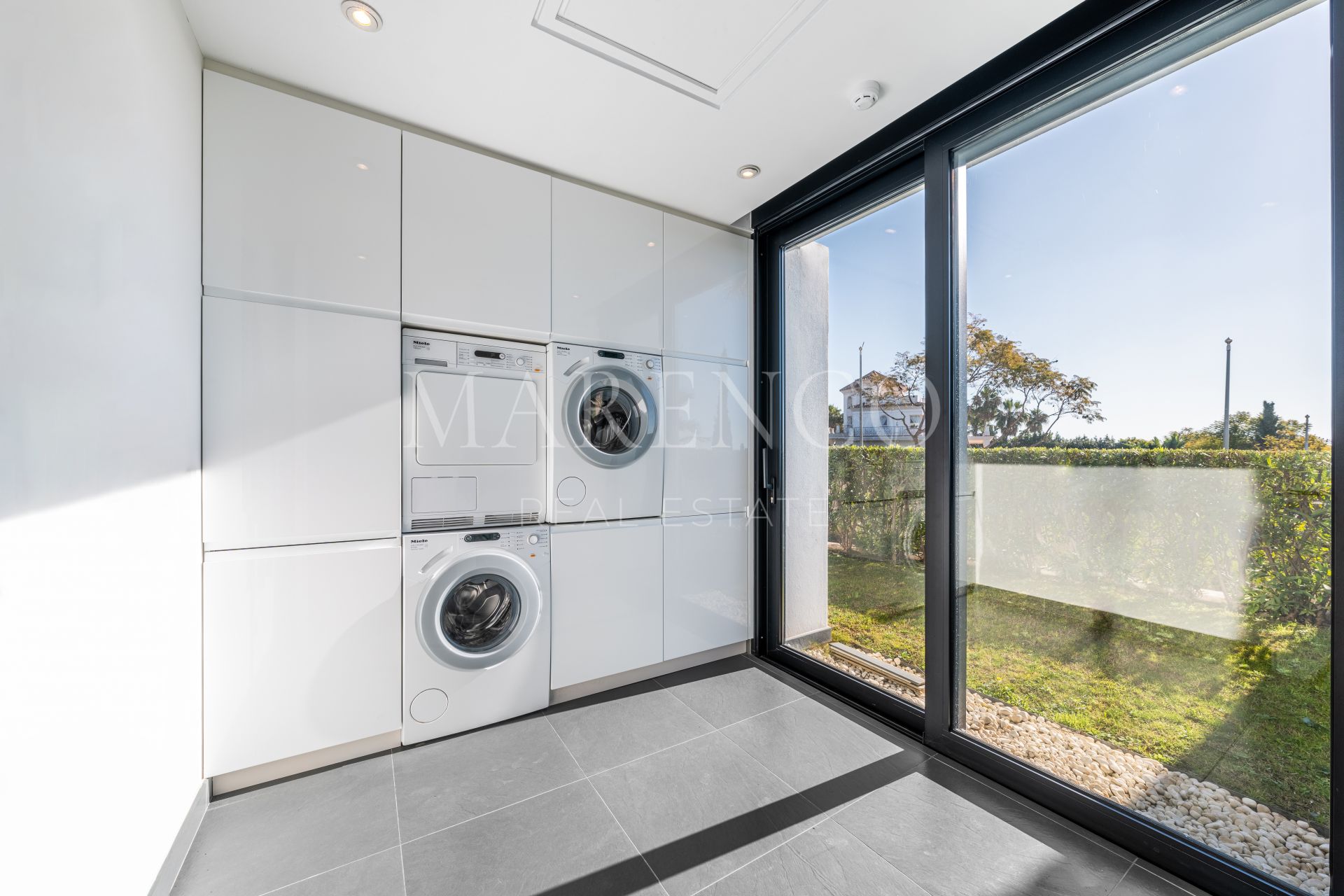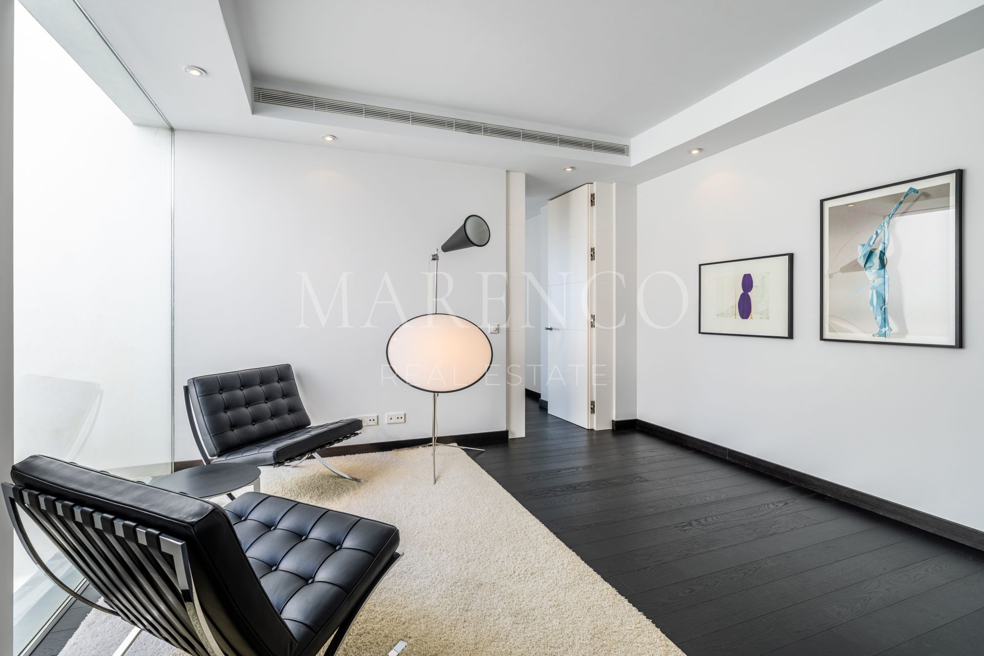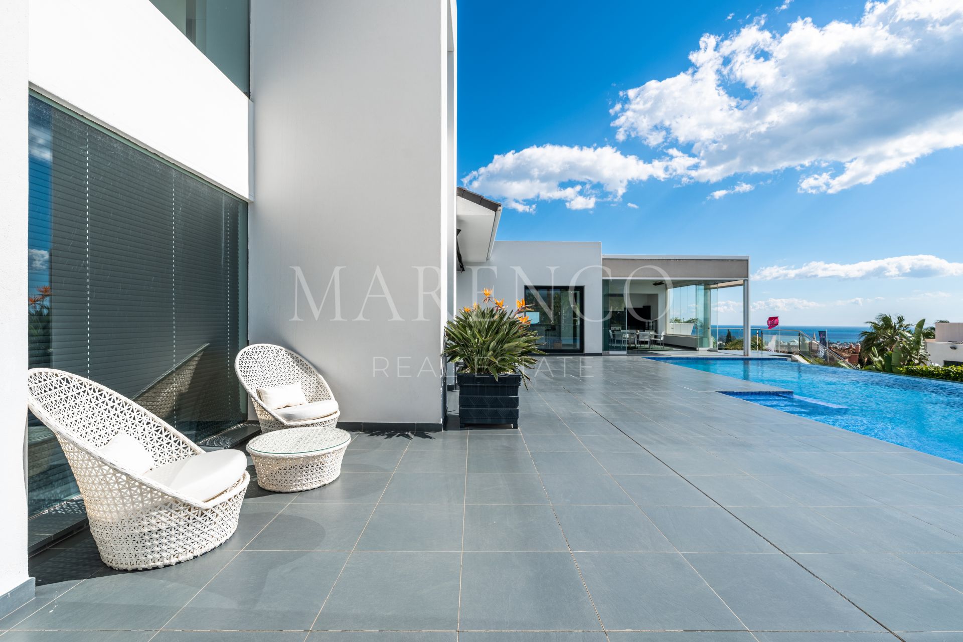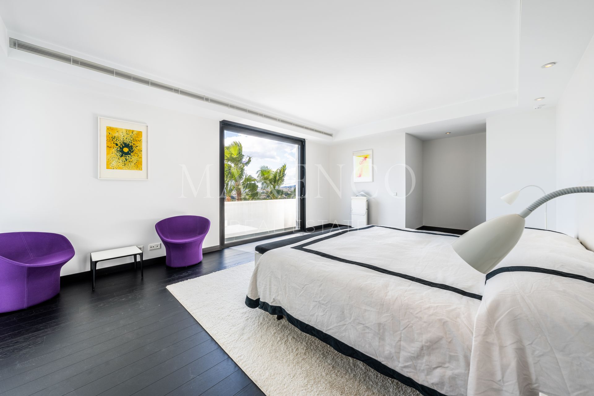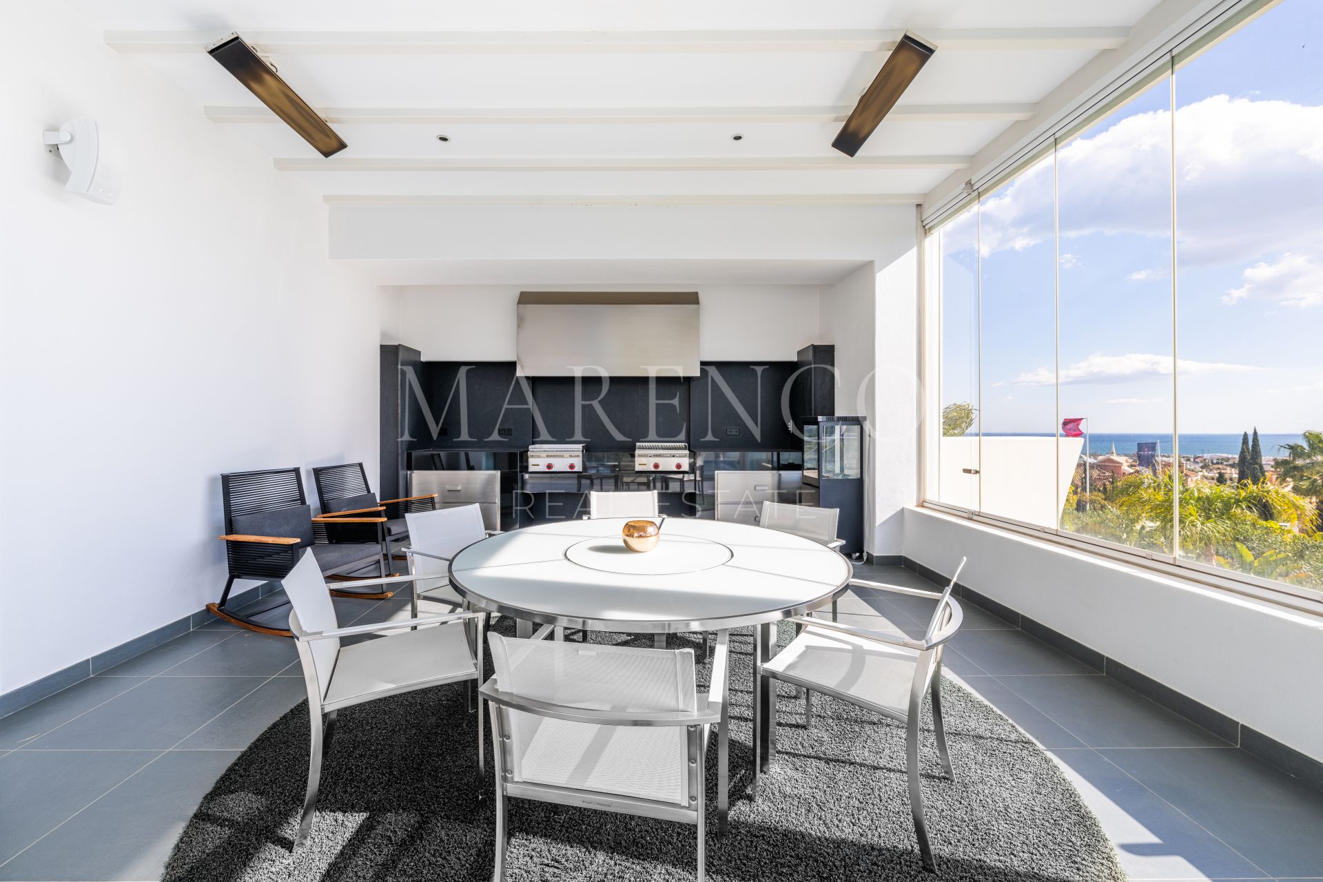 Cette propriété a les installations suivantes: appartement séparé, cave à vin, vue mer, appartement d'invités, jacuzzi, piscine climatisée, chauffage par le sol (partout), buanderie, alarme, double vitrage, volets électriques, placards, résidence fermée, excellent état, barbecue, service de sécurité 24h et vue panoramique.