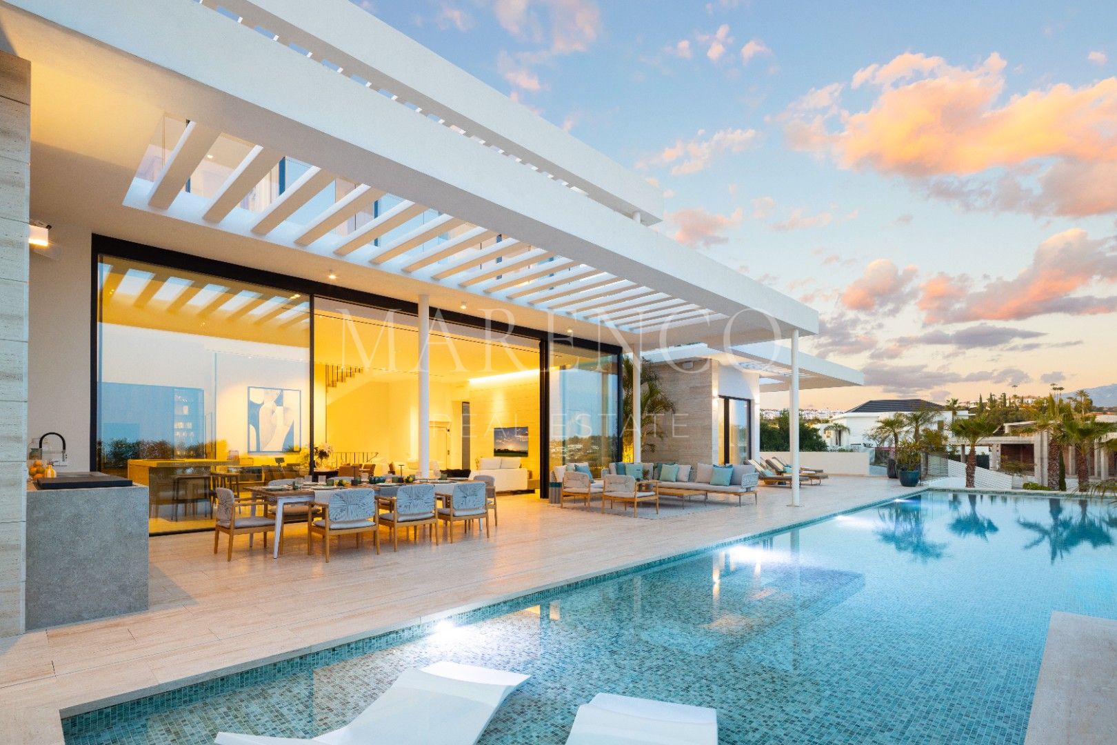 Érigée sur un terrain surélevé, cette propriété offre des vues panoramiques et fait partie d’une collection limitée de quatre villas de luxe. Avec son design géométrique épuré et ses vastes terrasses — partiellement couvertes pour en profiter toute l’année —, cette villa est conçue pour un art de vivre en plein air élégant.