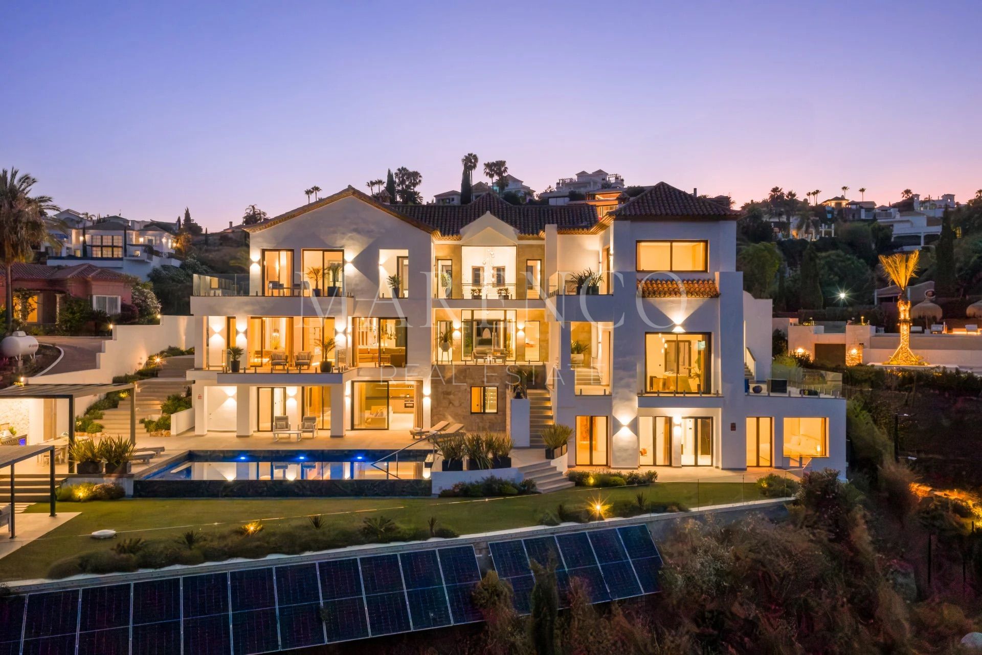 L’élégance intemporelle des toitures traditionnelles se marie harmonieusement avec des intérieurs contemporains dans cette spectaculaire villa à Los Flamingos, Benahavís, conçue pour valoriser la lumière, l’espace et l’intimité. Les plafonds à double hauteur et les baies vitrées du sol au plafond baignent les espaces de vie de lumière naturelle, créant une atmosphère calme et raffinée au sein de l’une des résidences les plus exclusives de la Costa del Sol, entourée de parcours de golf et de nature.