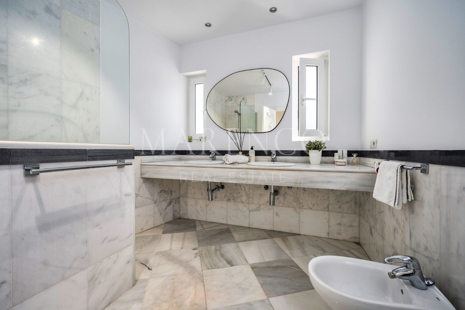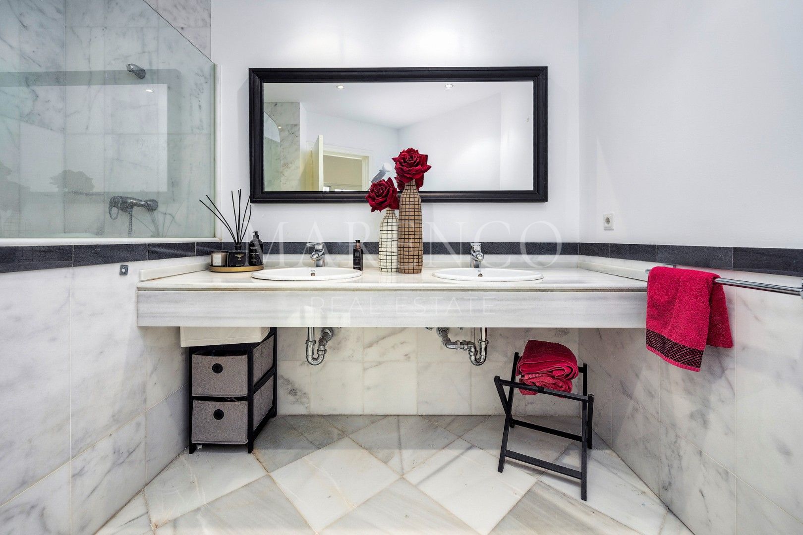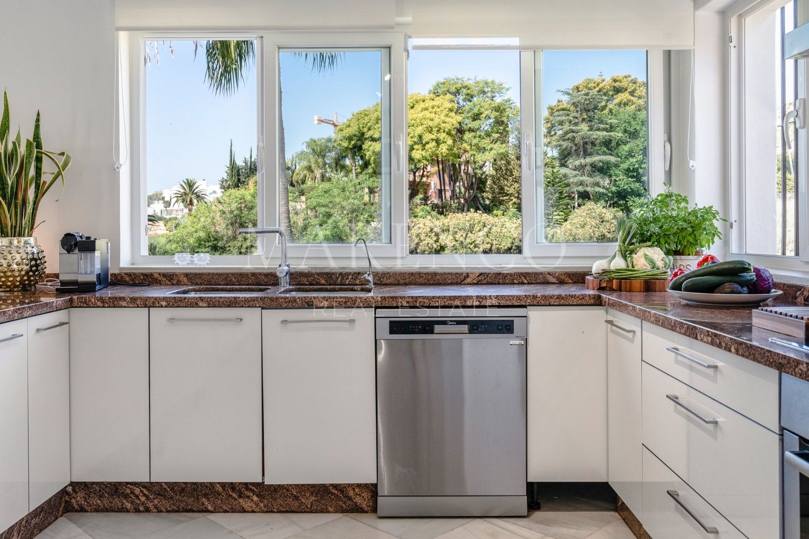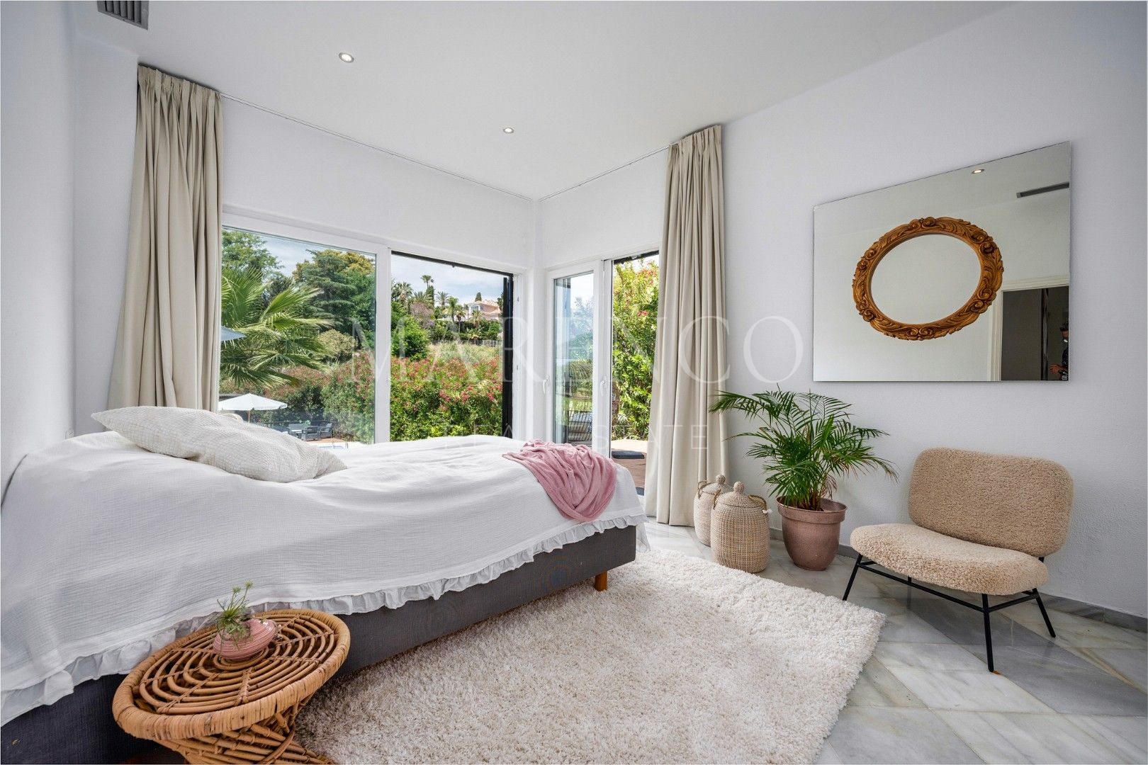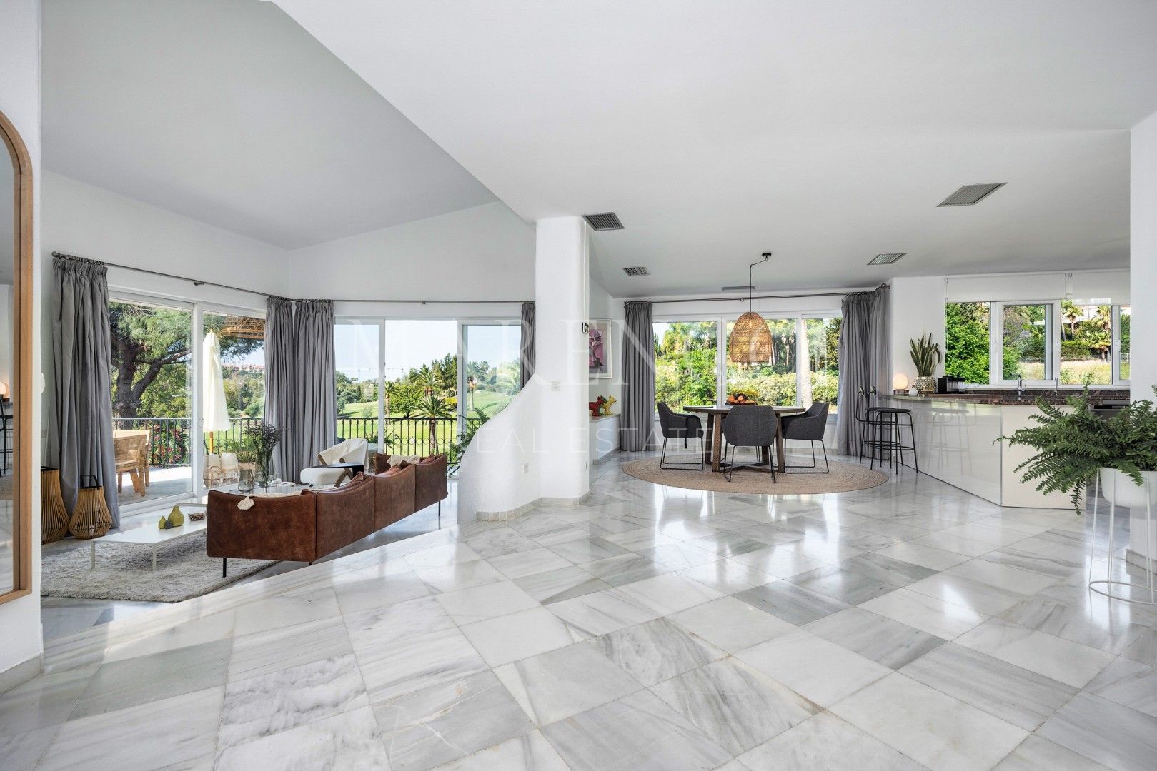 Cette propriété, orientation sud-ouest, a les installations suivantes: services de proximité, transport proche, À proximité des commerces, climatisation, près du port, proche des écoles, parc pour enfants proche, vue sur le golf, plancher en marbre, proche de la mer/plage, golf à proximité, terrasse découverte, portes en verre, terrasse couverte et excellent état.