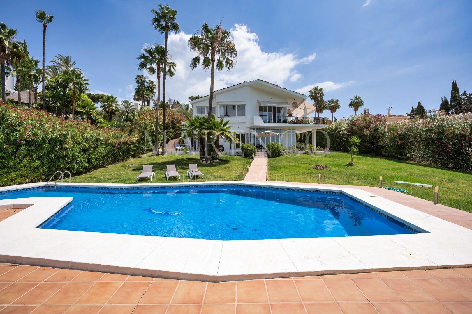 Villa à vendre à Los Naranjos, Nueva Andalucia avec 4 Chambres, 3 Salles de bain, construit 1982 et a piscine (privé), garage (privé) et garden (privé). Dimensions: 318m² construit, 1884m² Parcelle et 37m² terrasse.