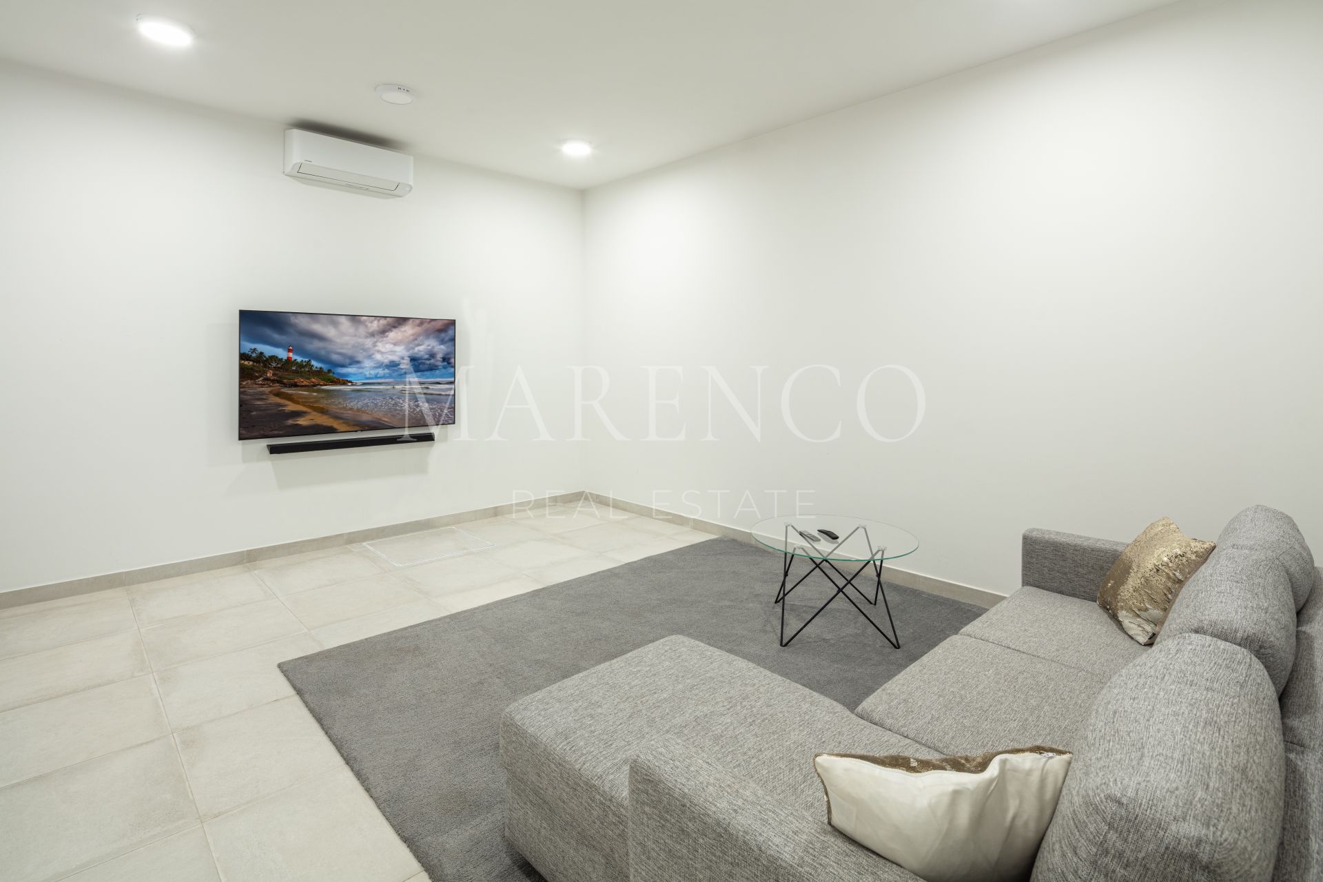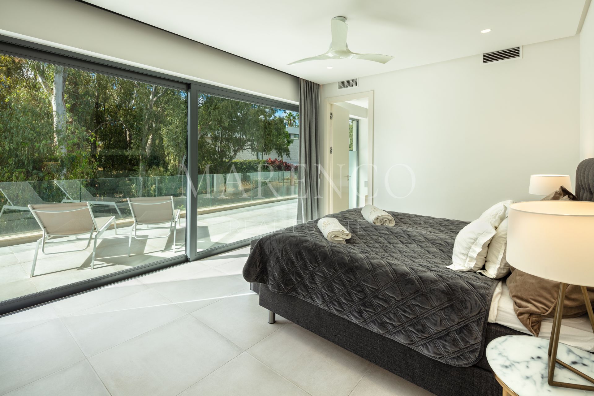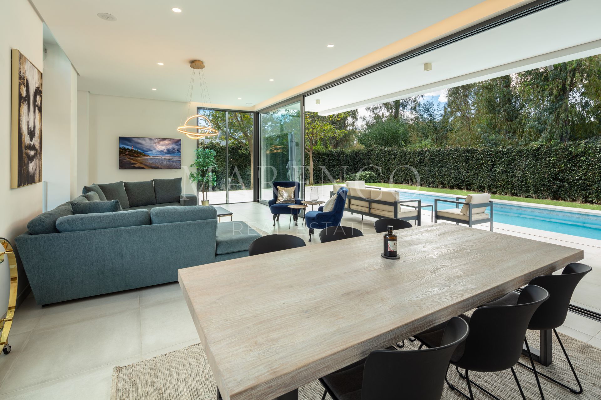 Villa à vendre à Monte Biarritz, Estepona Est avec 5 Chambres, 4 Salles de bain, 1 toilet et a piscine (privé), garage (privé) et garden (privé). Dimensions: 296m² construit, 609m² Parcelle, 296m² interior et 159m² terrasse.