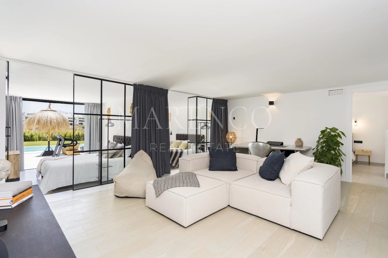 Construite en 2005, Villa Karma a récemment été entièrement rénovée selon les plus hauts standards de luxe. Elle incarne un superbe mélange de design contemporain et de charme andalou intemporel. La propriété est entourée d’un jardin tropical méticuleusement aménagé, avec une végétation luxuriante et des plantes éclatantes, créant un véritable havre de paix. Les espaces extérieurs ont été totalement modernisés avec de nouvelles terrasses en porcelaine italienne, offrant des lieux élégants et fonctionnels pour se détendre ou dîner en plein air.