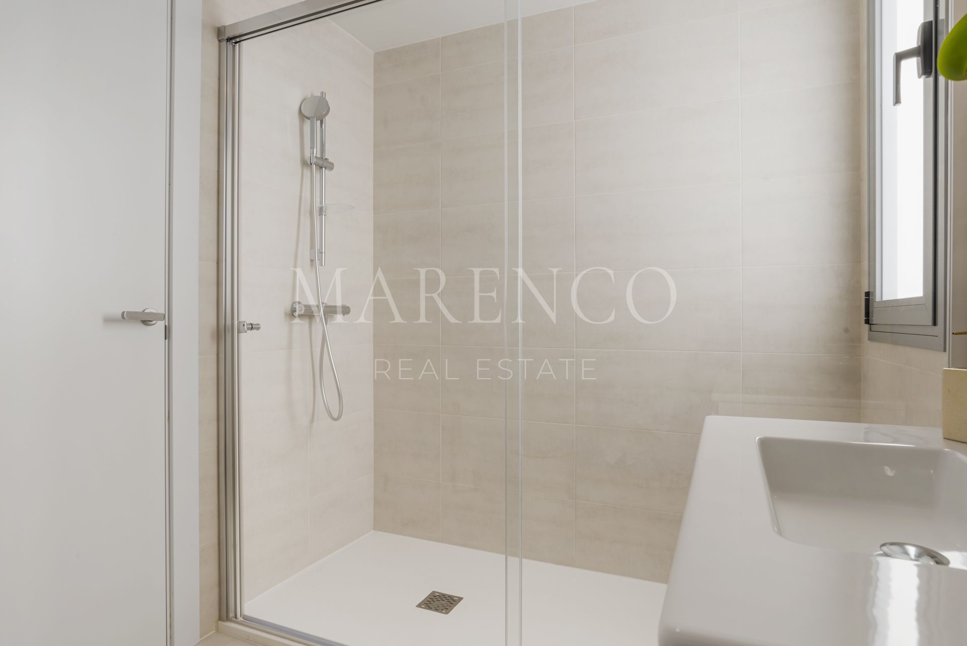 Avec une superficie construite de 104 m² et une grande terrasse de 37 m², cette propriété de luxe offre des espaces lumineux et bien distribués. Le salon-salle à manger spacieux et accueillant se relie à une cuisine ouverte entièrement équipée et à une buanderie pratique. La chambre principale dispose d’une salle de bain attenante et de grands placards intégrés, tandis que la chambre d’amis bénéficie d’une salle de bain indépendante. Depuis le salon et la chambre principale, on accède directement à la terrasse partiellement couverte, idéale pour dîner en plein air ou se détendre avec une vue dégagée.