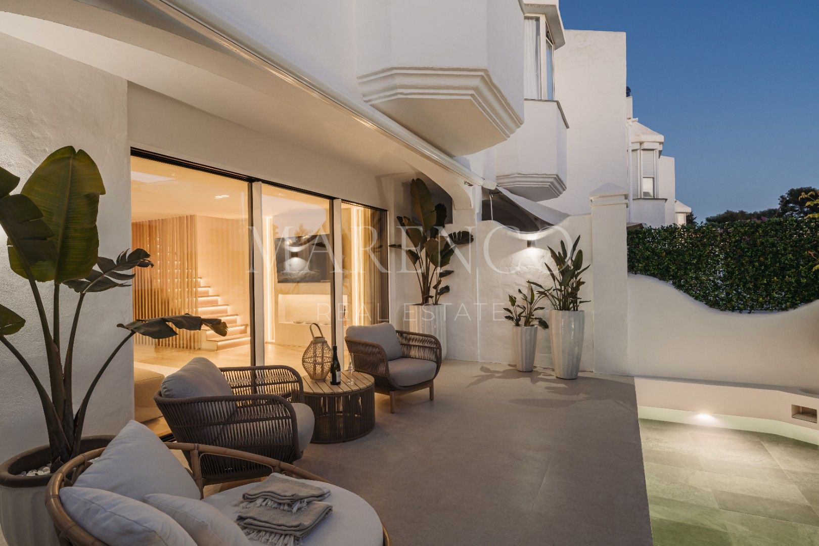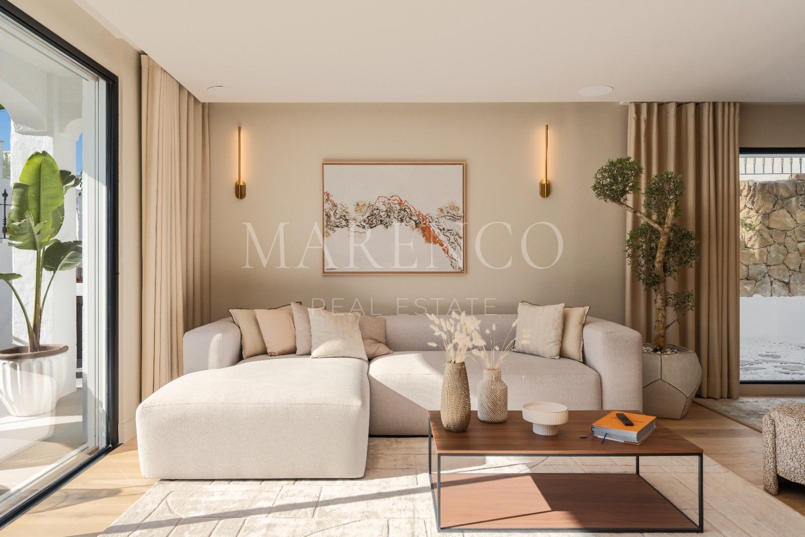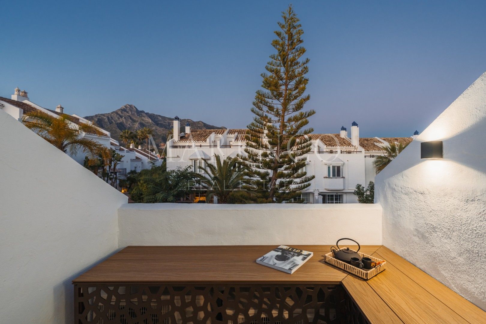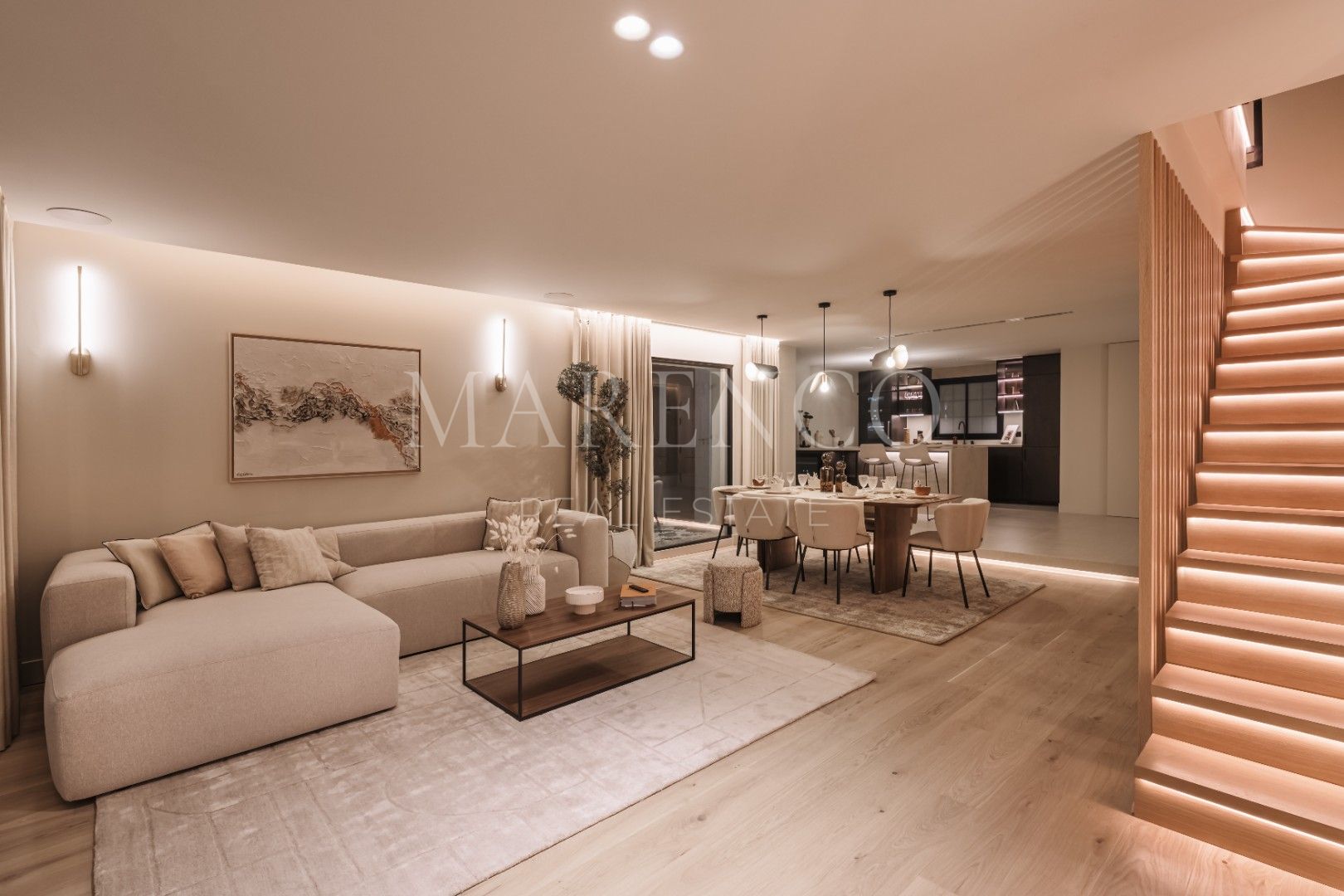 Maison Vanguard is een luxueuze, recent gerenoveerde townhouse in Altos de Puente Romano, waar eigentijds design en exclusiviteit naadloos samenkomen. Met een bebouwde oppervlakte van 352 m² beschikt het over vier ruime slaapkamers en vier en een halve badkamers, waaronder een prachtige master suite met een inloopkast, een luxe badkamer en een privéterras met adembenemend uitzicht op de Middellandse Zee.