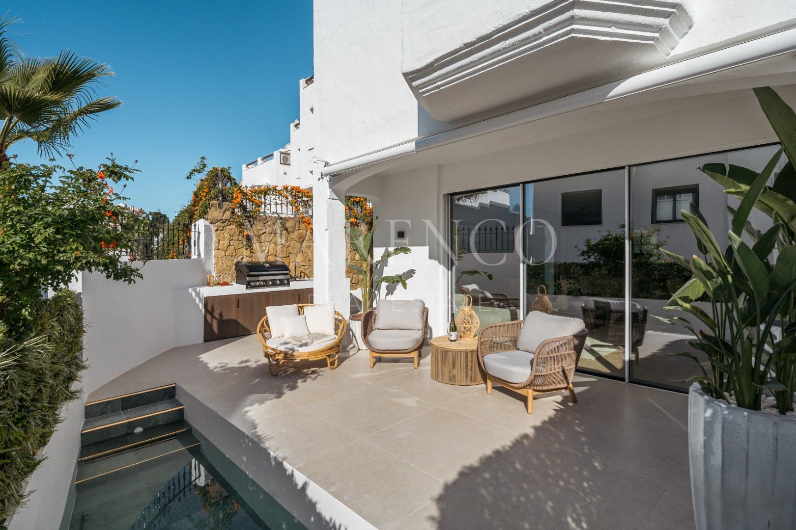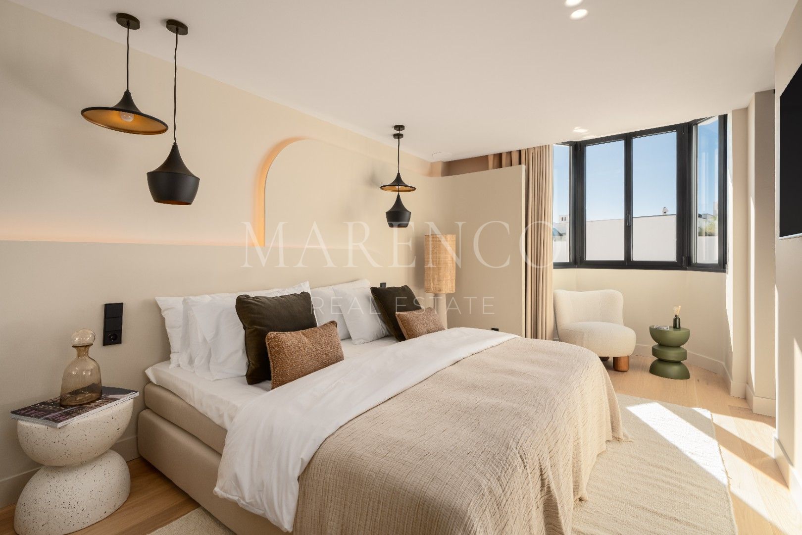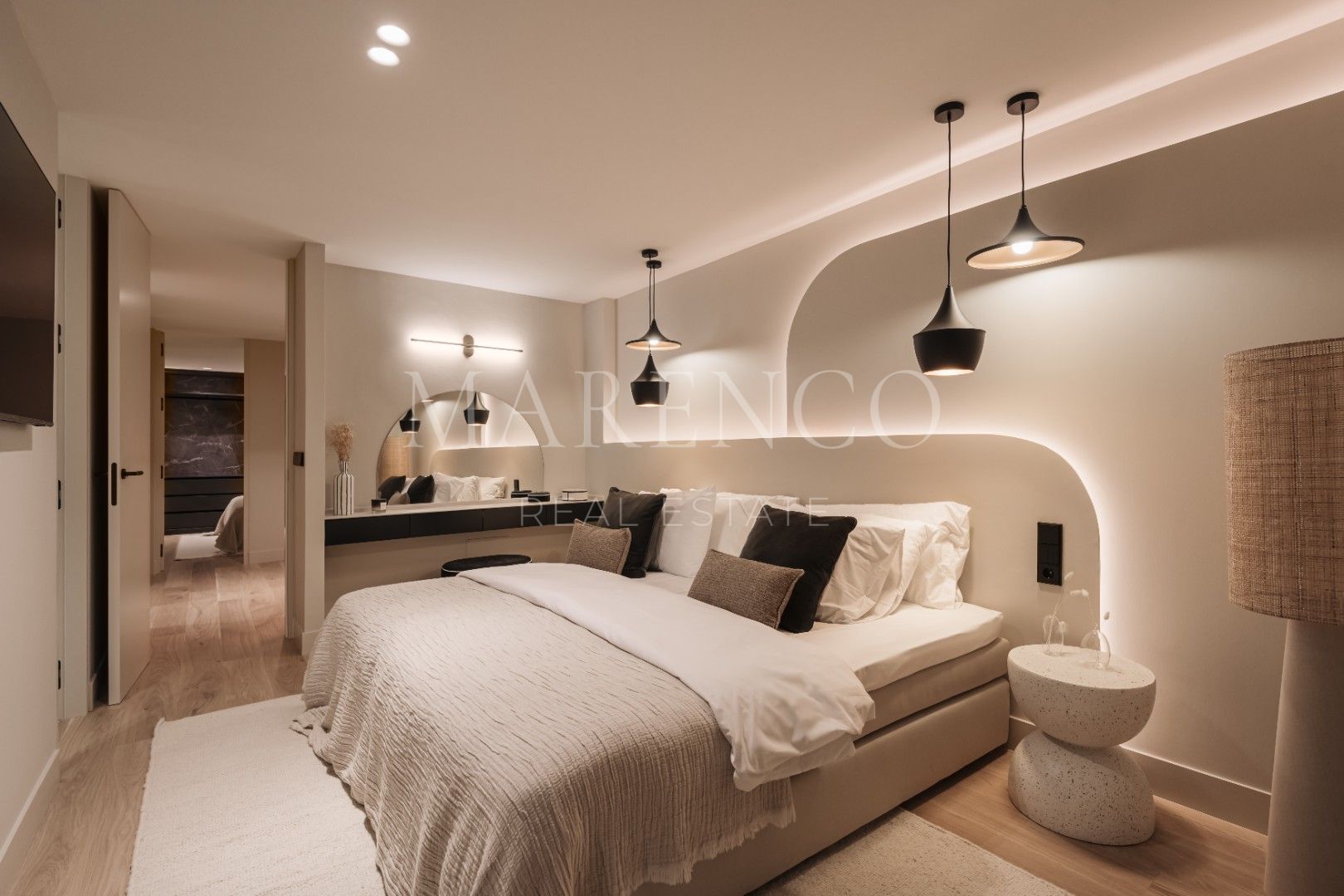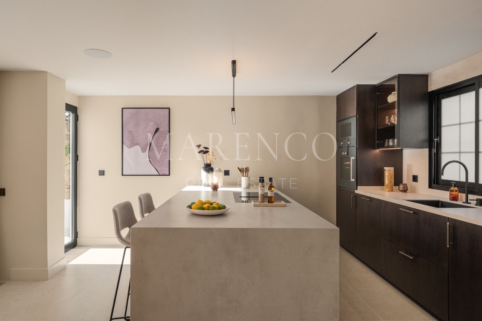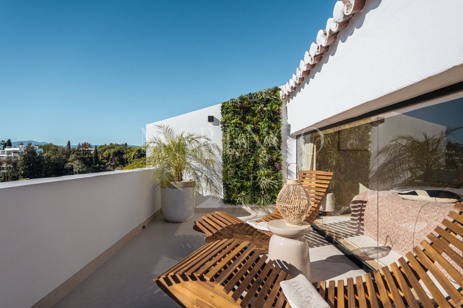 Maison Vanguard is een luxueuze, recent gerenoveerde townhouse in Altos de Puente Romano, waar eigentijds design en exclusiviteit naadloos samenkomen. Met een bebouwde oppervlakte van 352 m² beschikt het over vier ruime slaapkamers en vier en een halve badkamers, waaronder een prachtige master suite met een inloopkast, een luxe badkamer en een privéterras met adembenemend uitzicht op de Middellandse Zee.