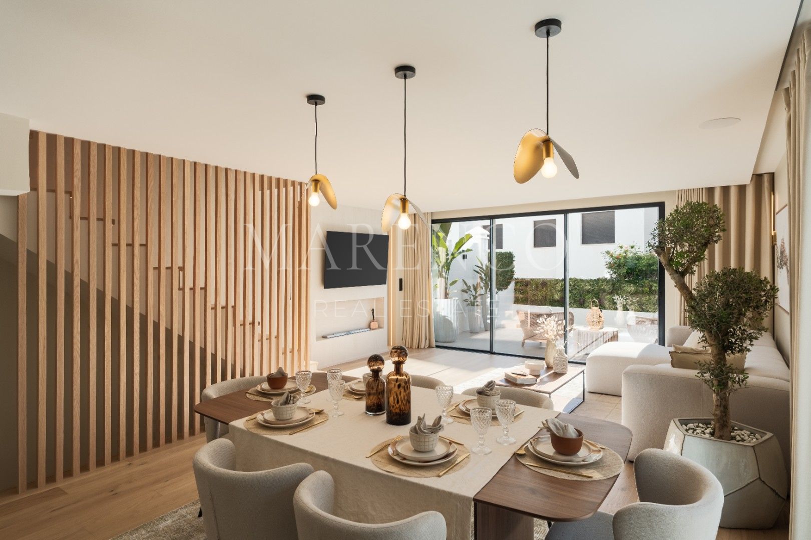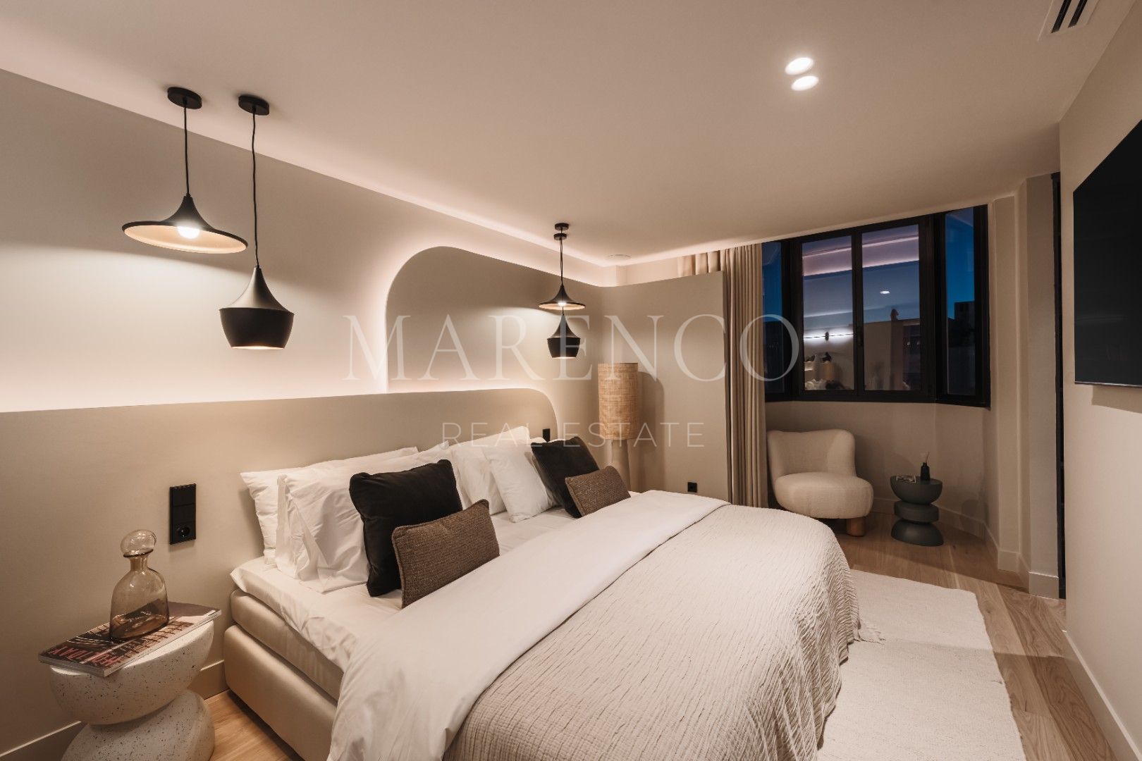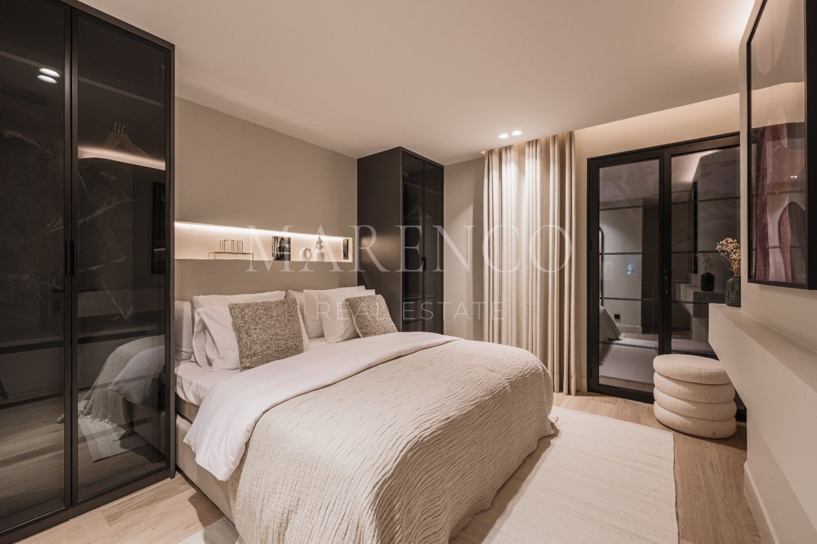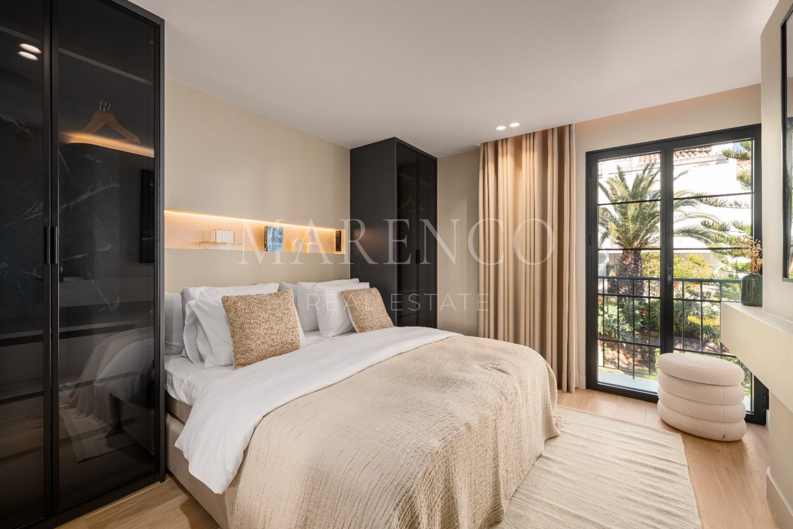 Maison Vanguard is een luxueuze, recent gerenoveerde townhouse in Altos de Puente Romano, waar eigentijds design en exclusiviteit naadloos samenkomen. Met een bebouwde oppervlakte van 352 m² beschikt het over vier ruime slaapkamers en vier en een halve badkamers, waaronder een prachtige master suite met een inloopkast, een luxe badkamer en een privéterras met adembenemend uitzicht op de Middellandse Zee.