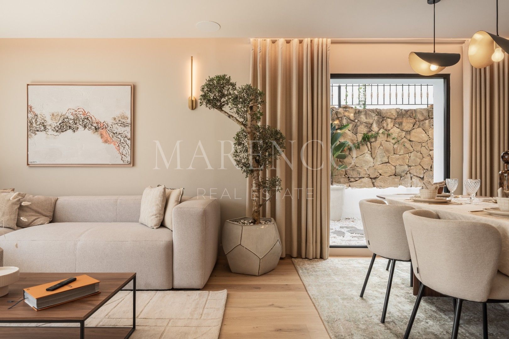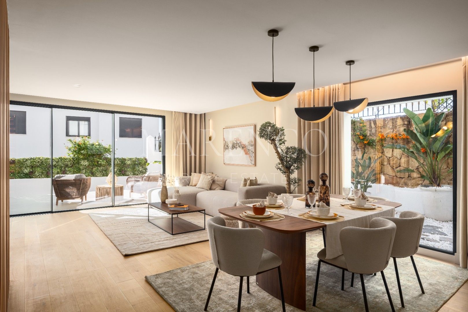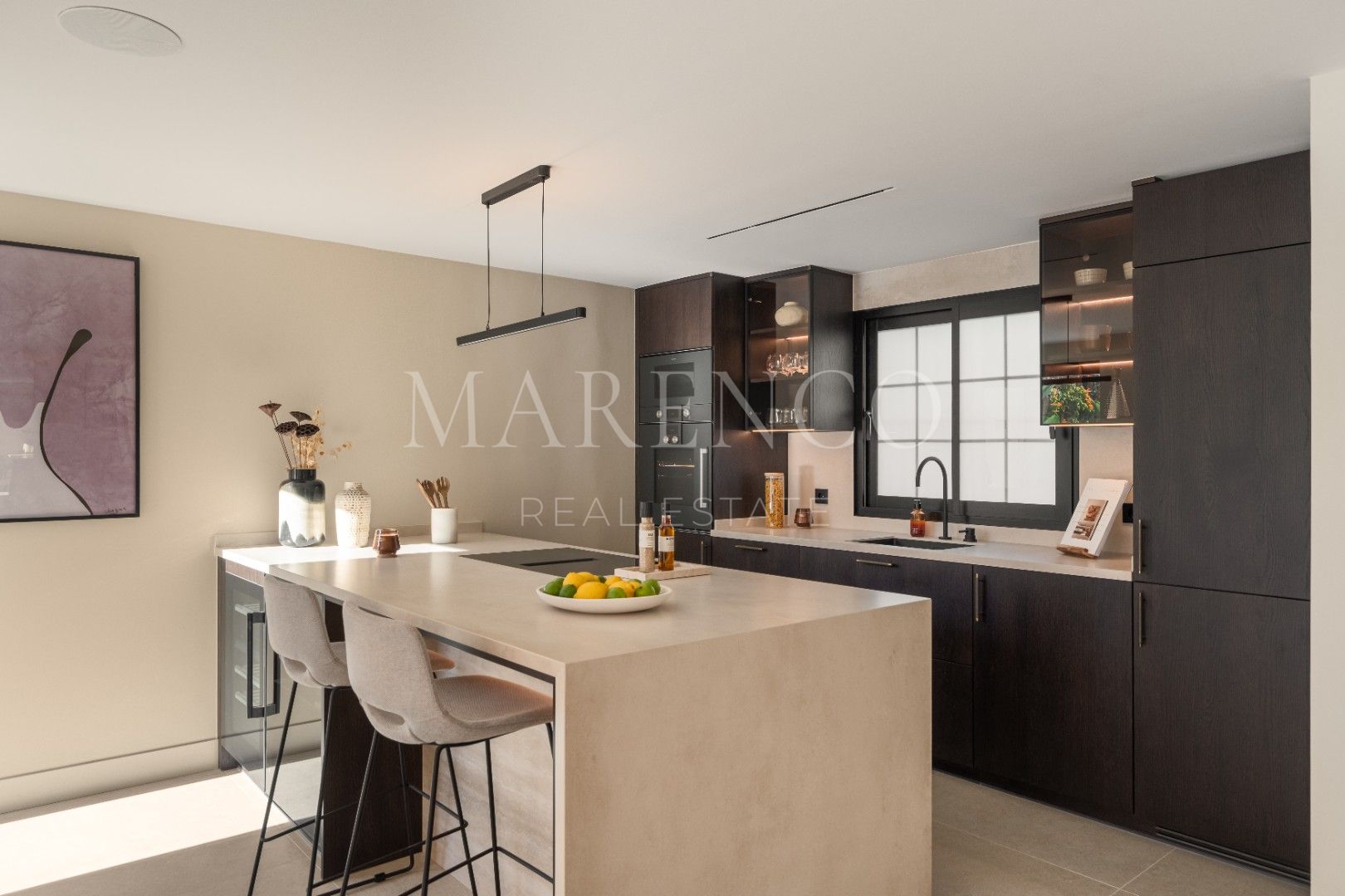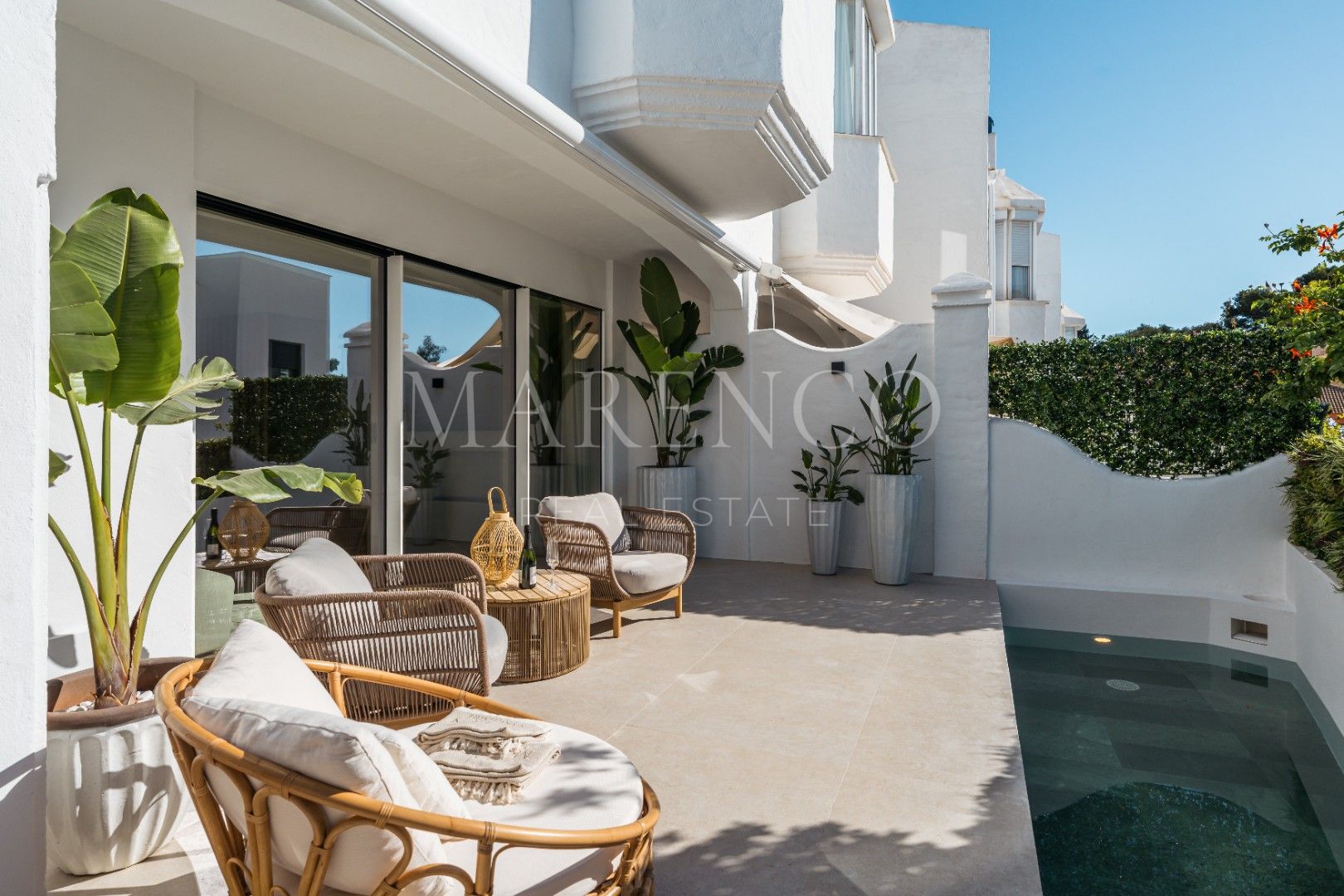 Maison Vanguard is een luxueuze, recent gerenoveerde townhouse in Altos de Puente Romano, waar eigentijds design en exclusiviteit naadloos samenkomen. Met een bebouwde oppervlakte van 352 m² beschikt het over vier ruime slaapkamers en vier en een halve badkamers, waaronder een prachtige master suite met een inloopkast, een luxe badkamer en een privéterras met adembenemend uitzicht op de Middellandse Zee.