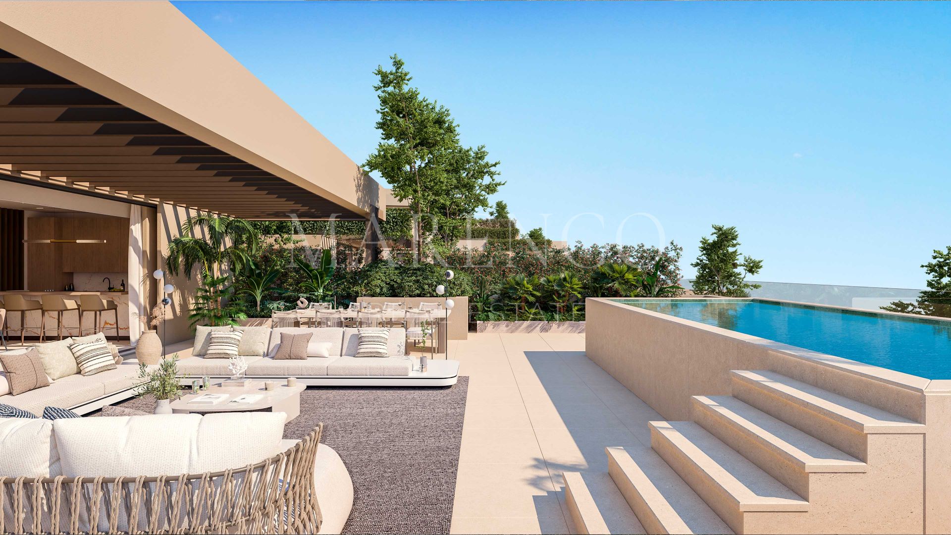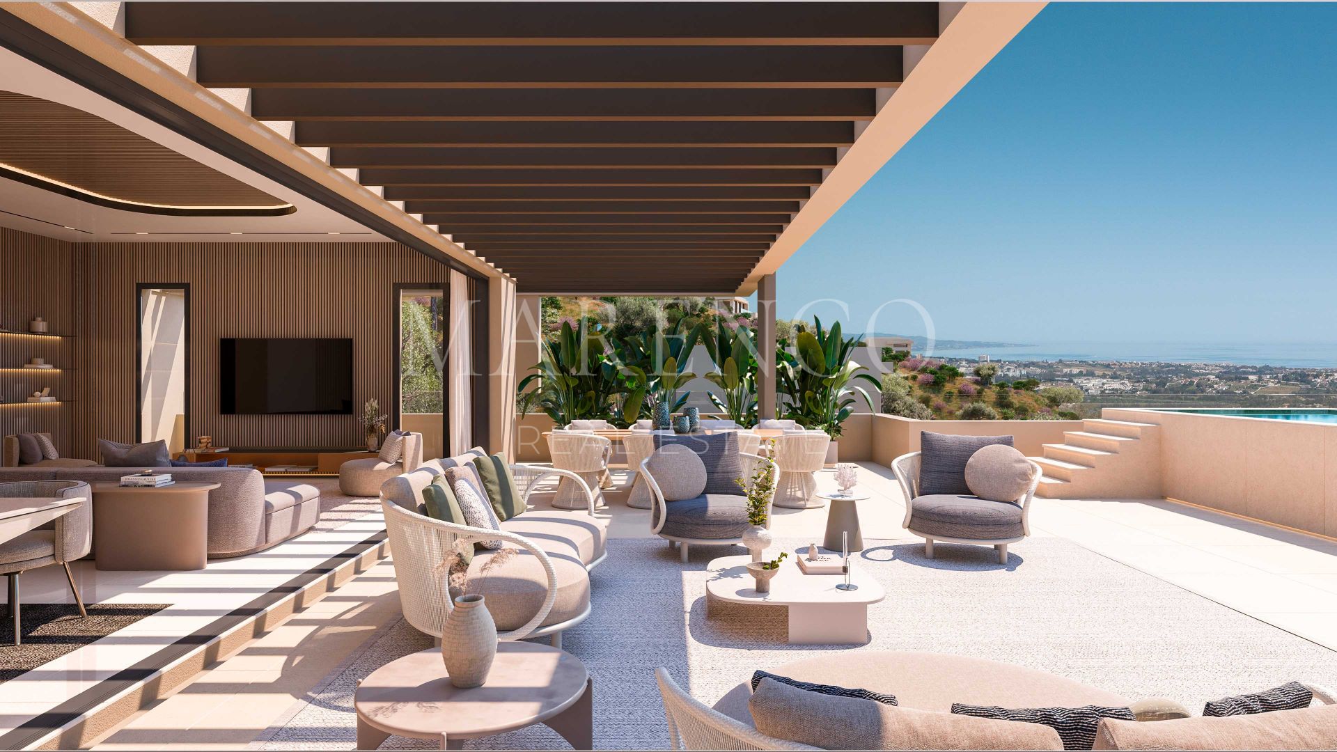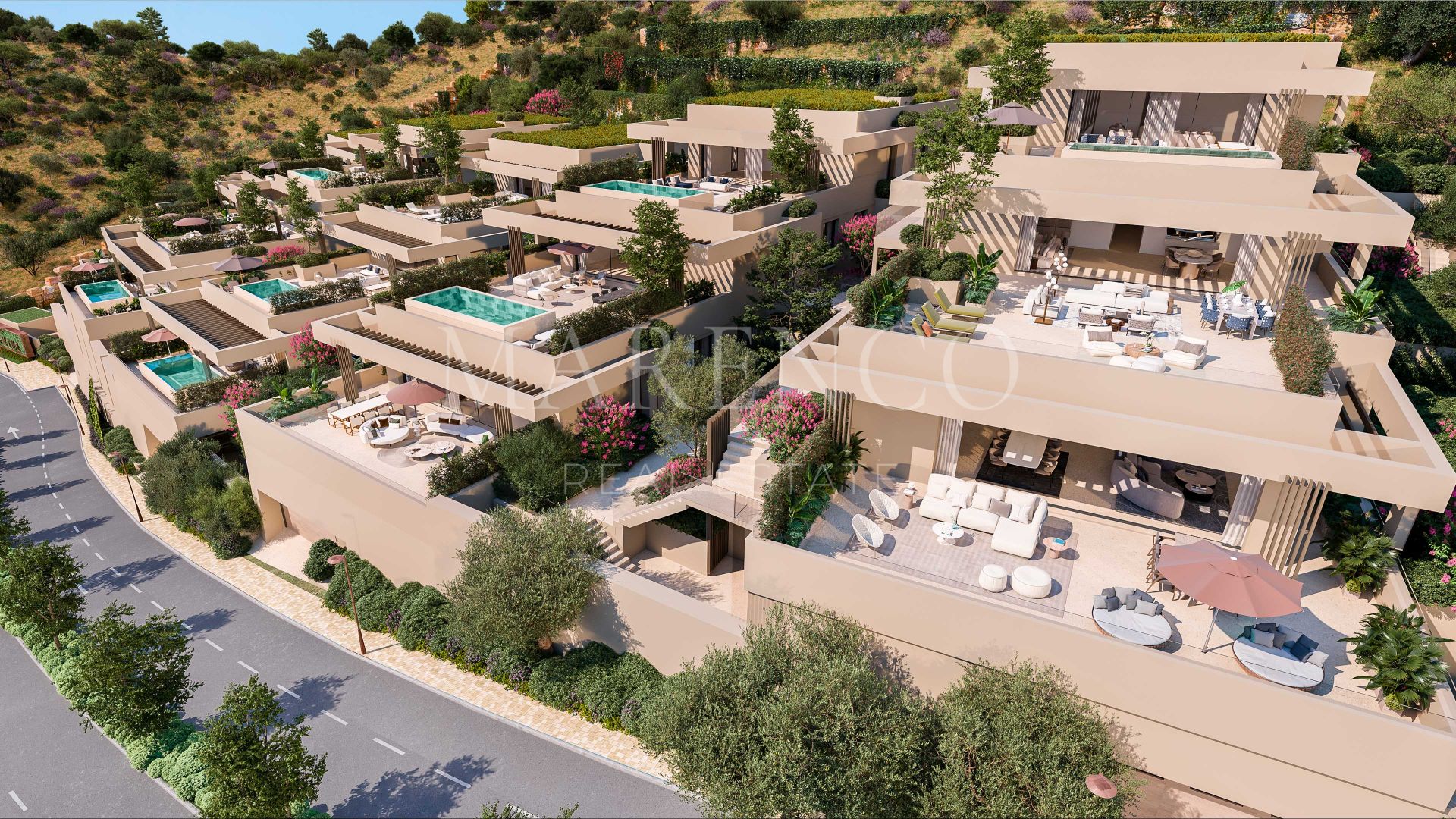 Gelegen in een bevoorrechte omgeving nabij Marbella, markeren de Sky Villas een nieuw hoogtepunt in Finca de Jasmine. Deze innovatieve collectie woningen combineert de ruimtelijkheid en privacy van een villa met het gemak en de veiligheid van een exclusief wooncomplex. Ontworpen om maximale privacy te garanderen en adembenemende uitzichten op zee vast te leggen, beschikt elke woning over royale terrassen en lichte, open binnenruimtes. Of je nu op zoek bent naar een serene toevluchtsoord of een verfijnde setting om gasten te ontvangen, de Sky Villas bieden een ongeëvenaarde ervaring van moderne luxe.